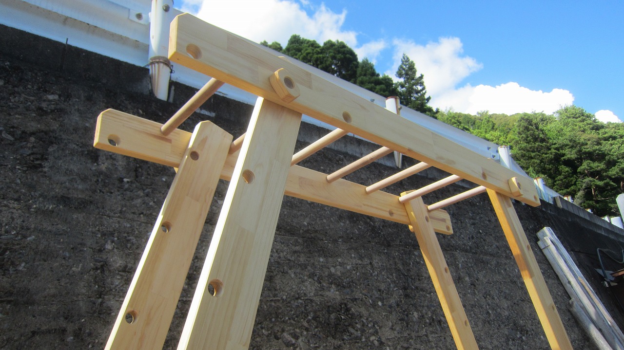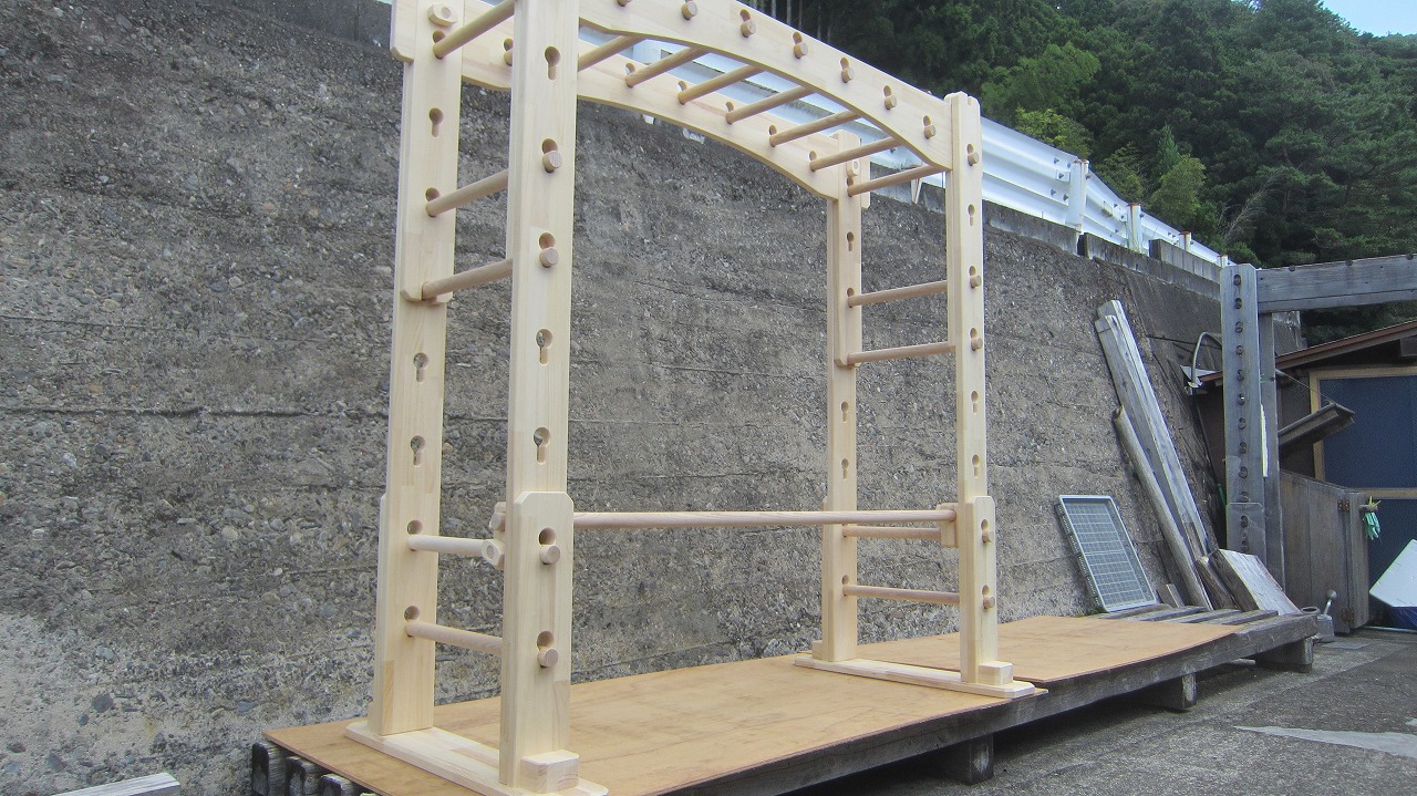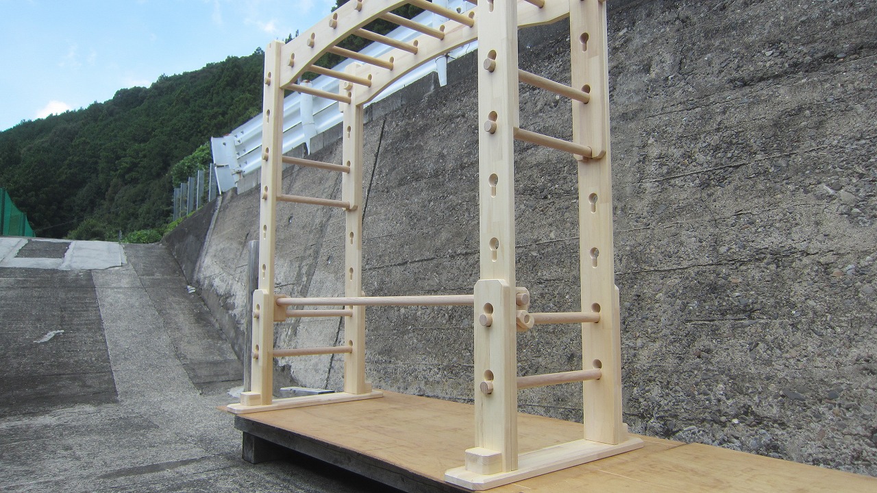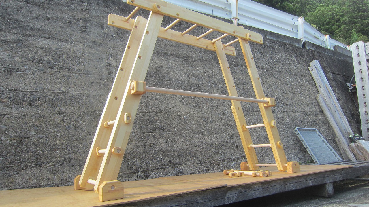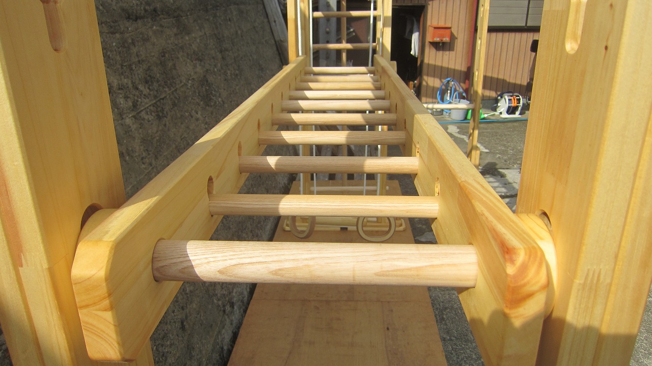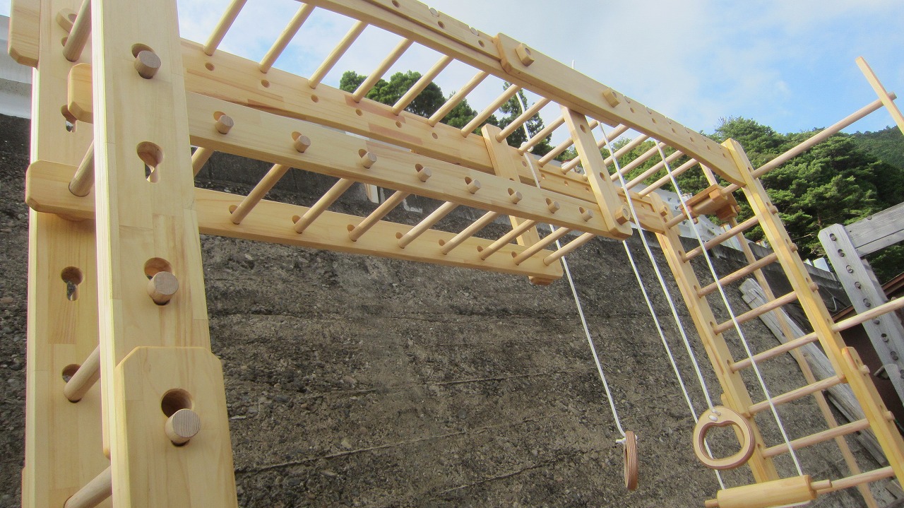 本田様のうんていを初めて知ったのは一年以上前です。さまざまな商品を調べましたが、ネジに至るまで木材が使われている自然のぬくもりを感じるデザイン、そして本田様の温かく人柄の伝わるブログに惹かれ、購入を決めました。