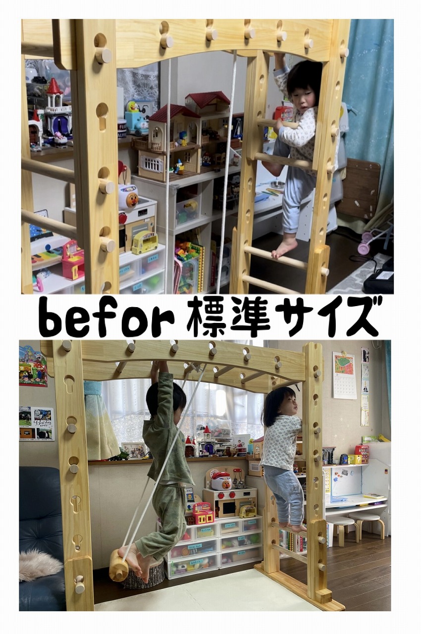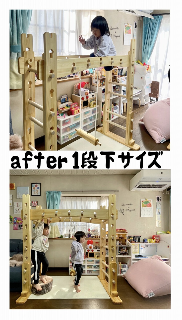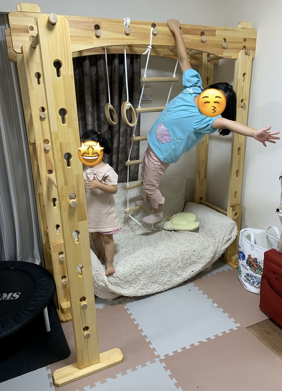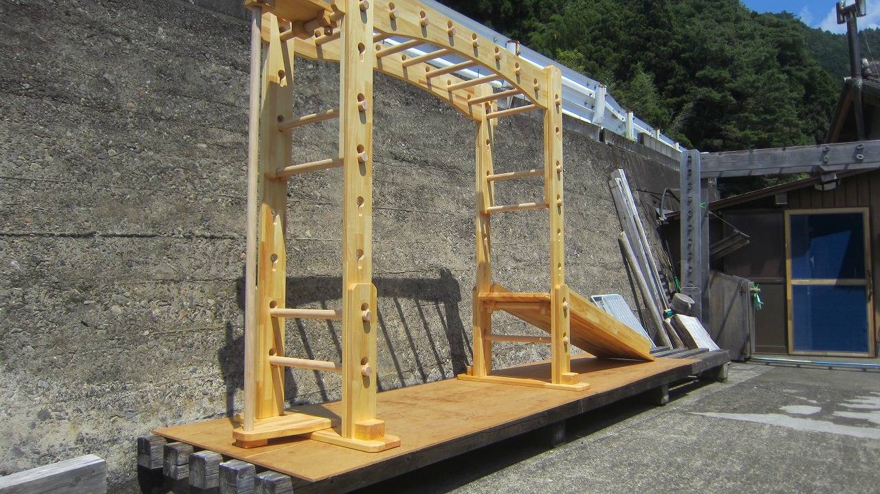 本田様のうんていを初めて知ったのは一年以上前です。さまざまな商品を調べましたが、ネジに至るまで木材が使われている自然のぬくもりを感じるデザイン、そして本田様の温かく人柄の伝わるブログに惹かれ、購入を決めました。