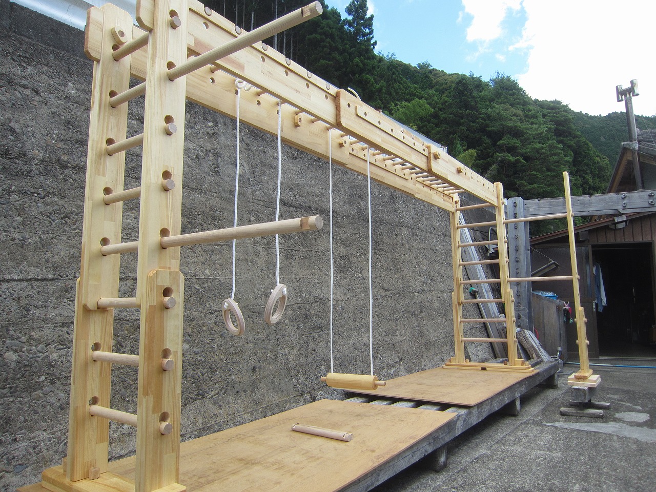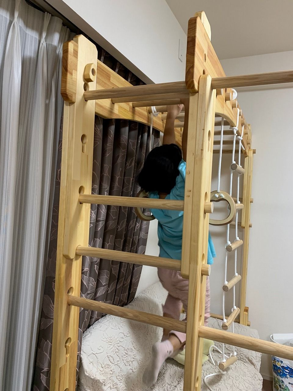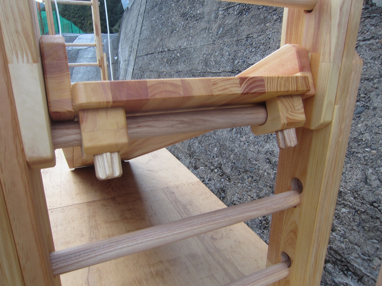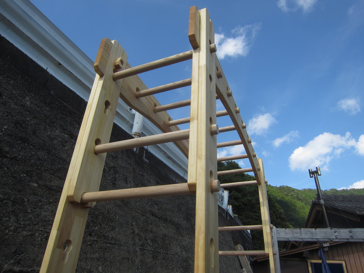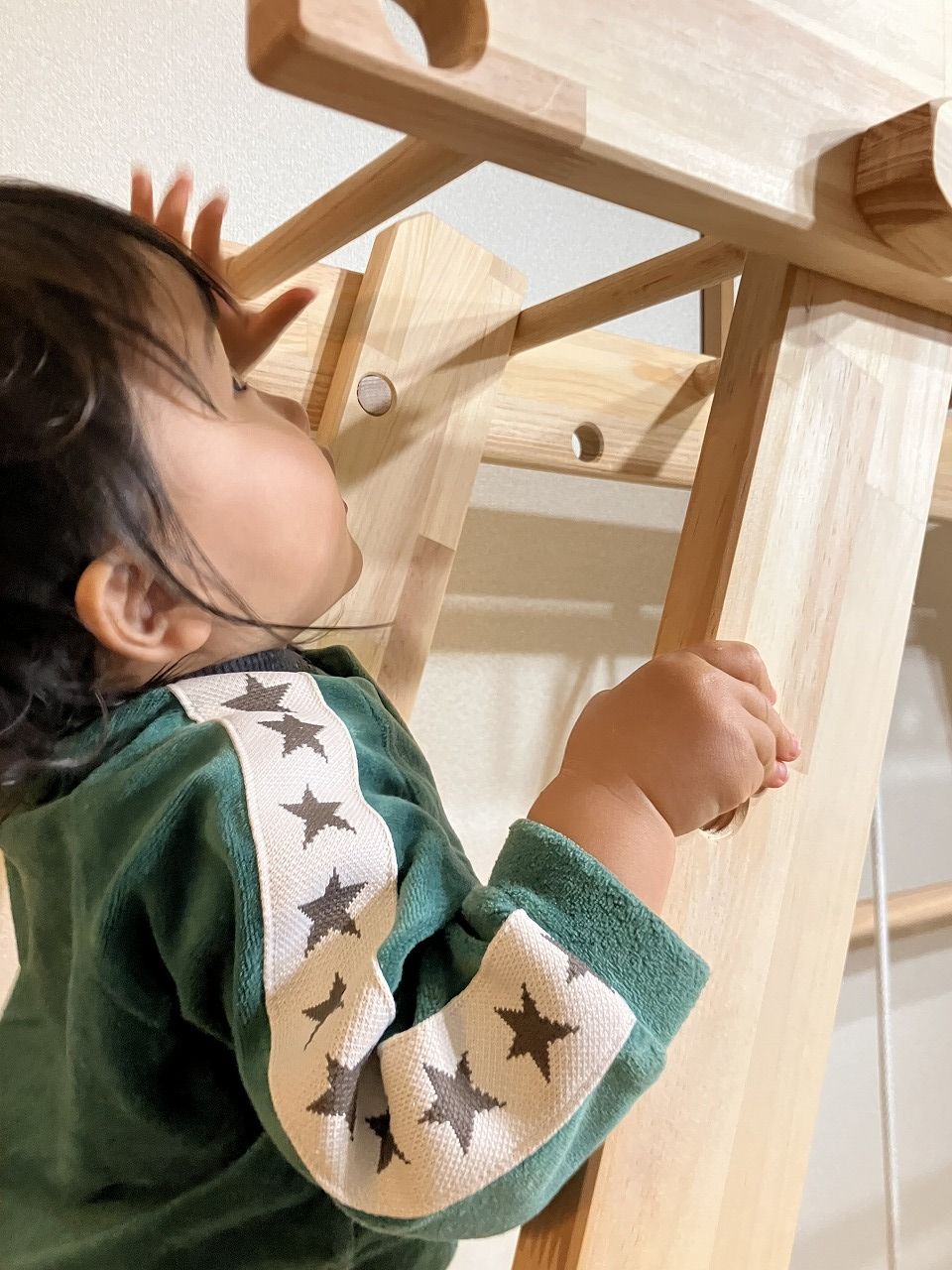 本田様のうんていを初めて知ったのは一年以上前です。さまざまな商品を調べましたが、ネジに至るまで木材が使われている自然のぬくもりを感じるデザイン、そして本田様の温かく人柄の伝わるブログに惹かれ、購入を決めました。