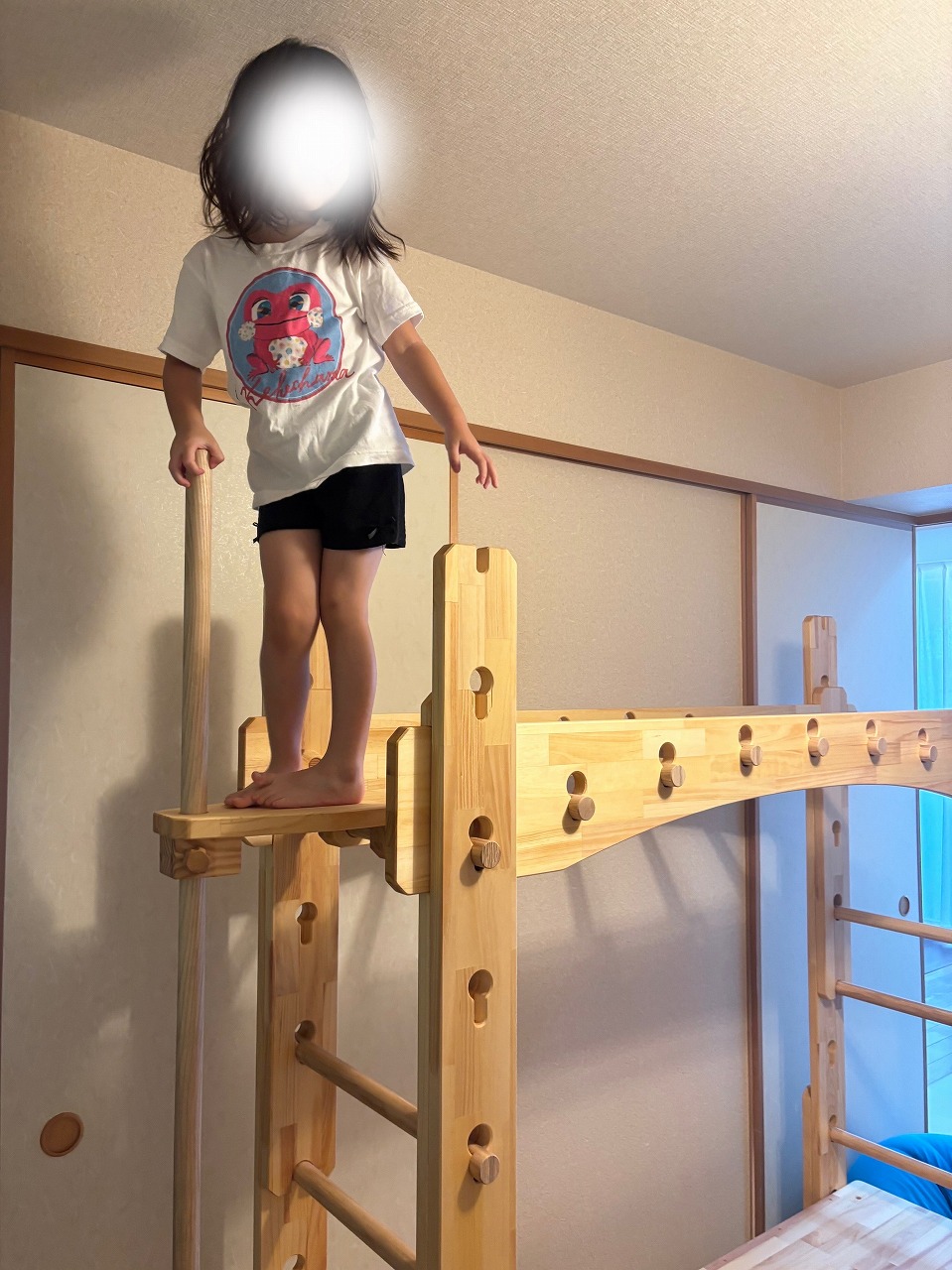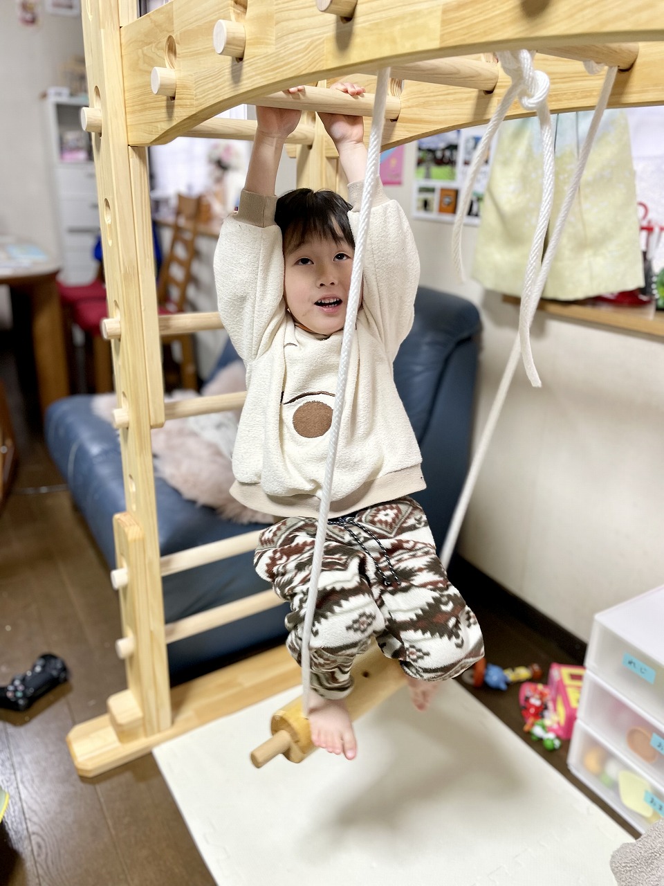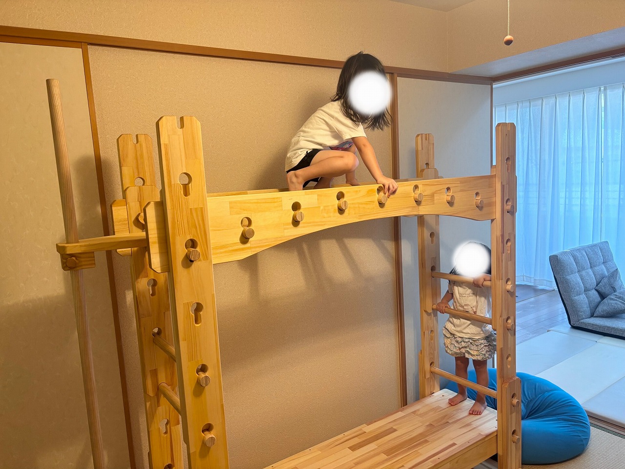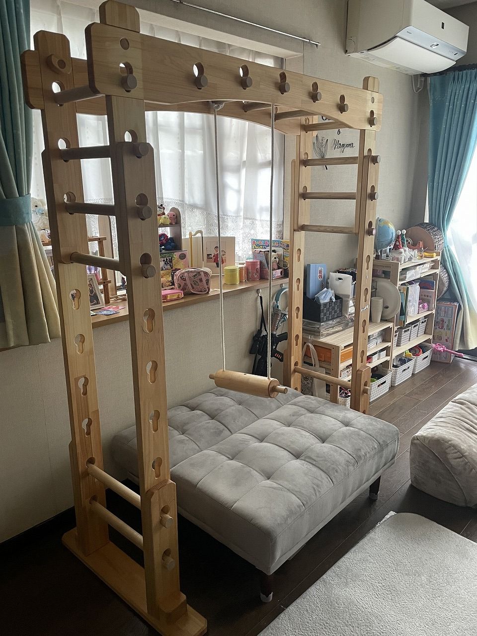 本田様のうんていを初めて知ったのは一年以上前です。さまざまな商品を調べましたが、ネジに至るまで木材が使われている自然のぬくもりを感じるデザイン、そして本田様の温かく人柄の伝わるブログに惹かれ、購入を決めました。