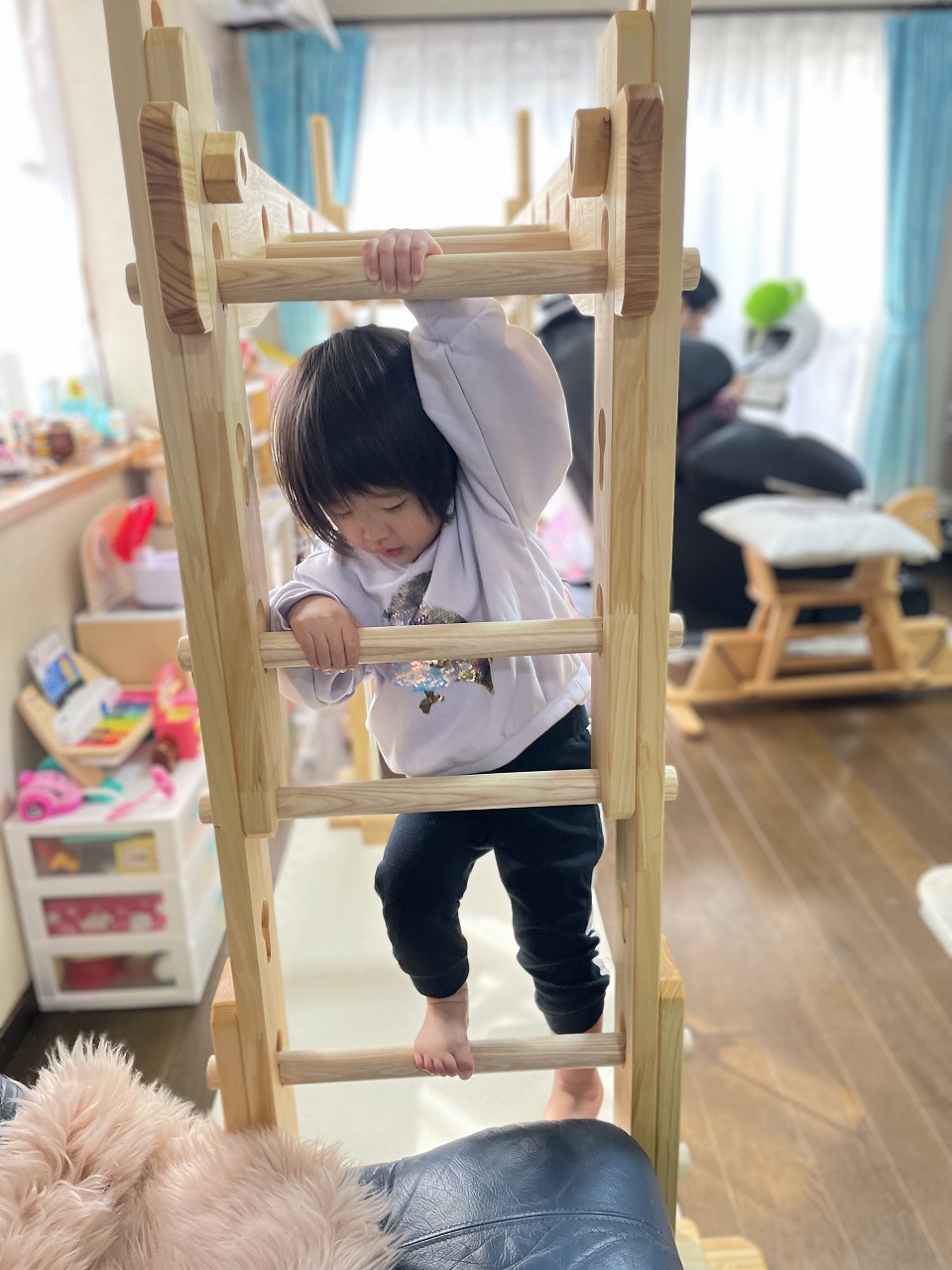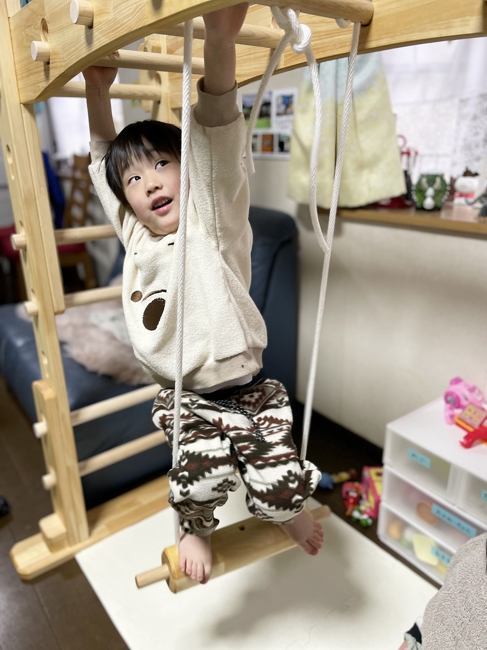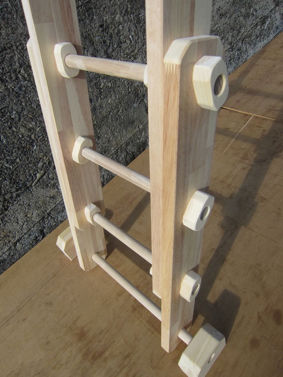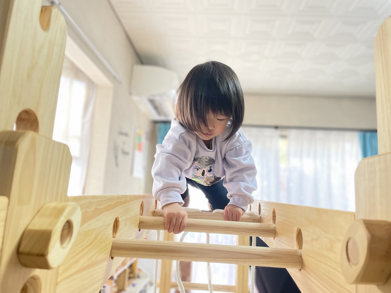 本田様のうんていを初めて知ったのは一年以上前です。さまざまな商品を調べましたが、ネジに至るまで木材が使われている自然のぬくもりを感じるデザイン、そして本田様の温かく人柄の伝わるブログに惹かれ、購入を決めました。