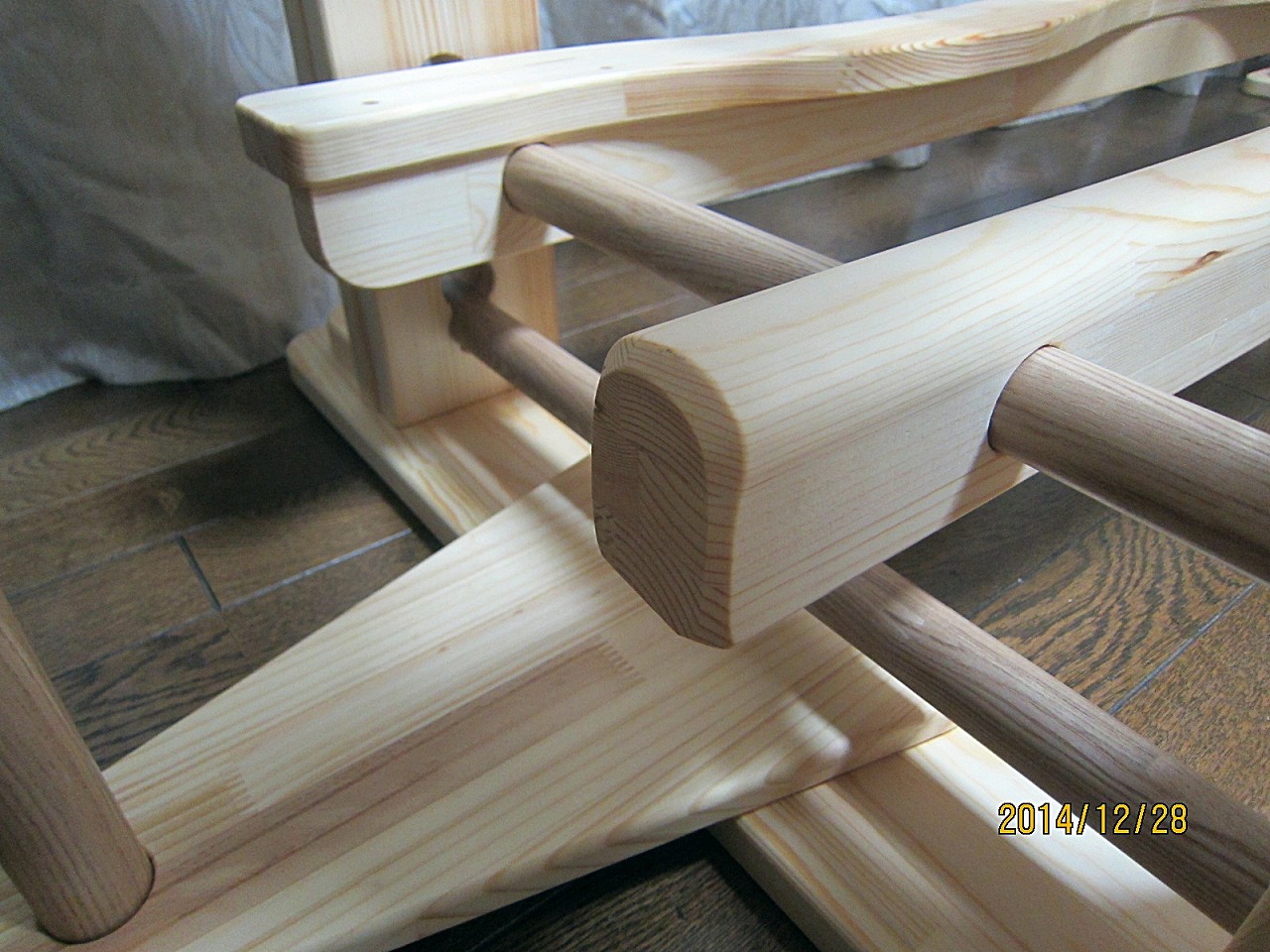 ブランコ同様、パイン材を3枚接ぎ合わせ、削り出しています。