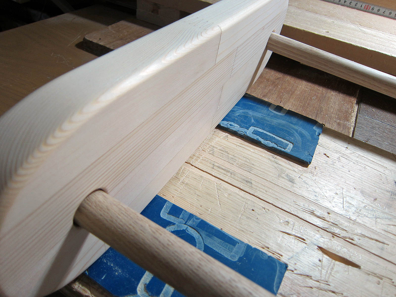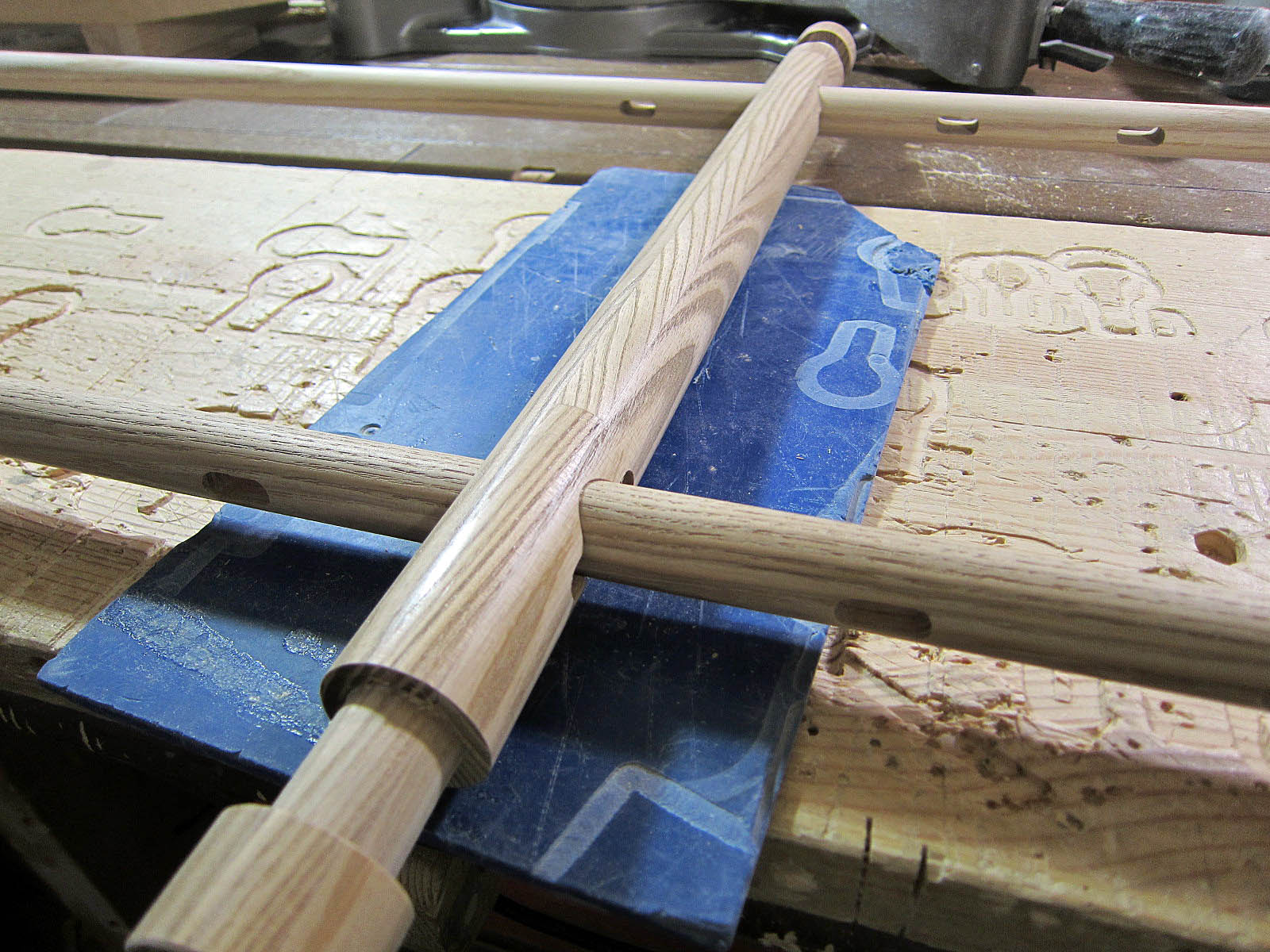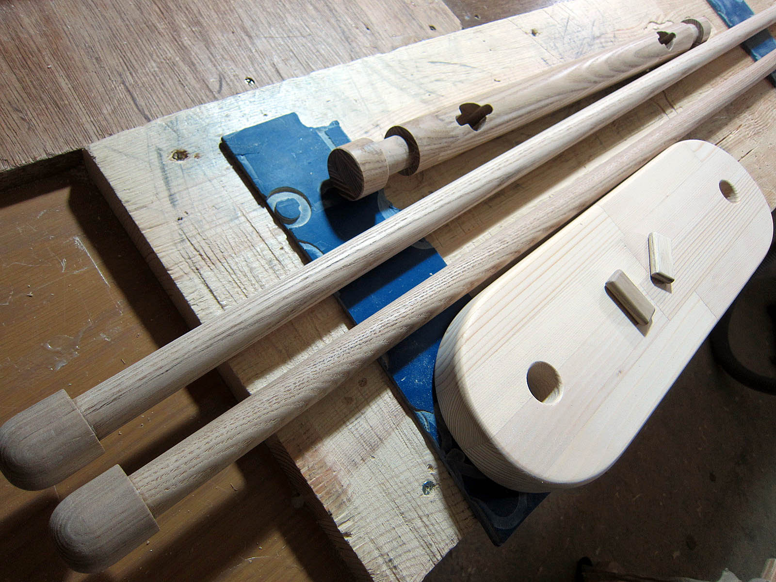 左から、ブランコを固定する32mm丸棒1本。鎖代わりの20mm丸棒2本。座り板とスペーサー2個。