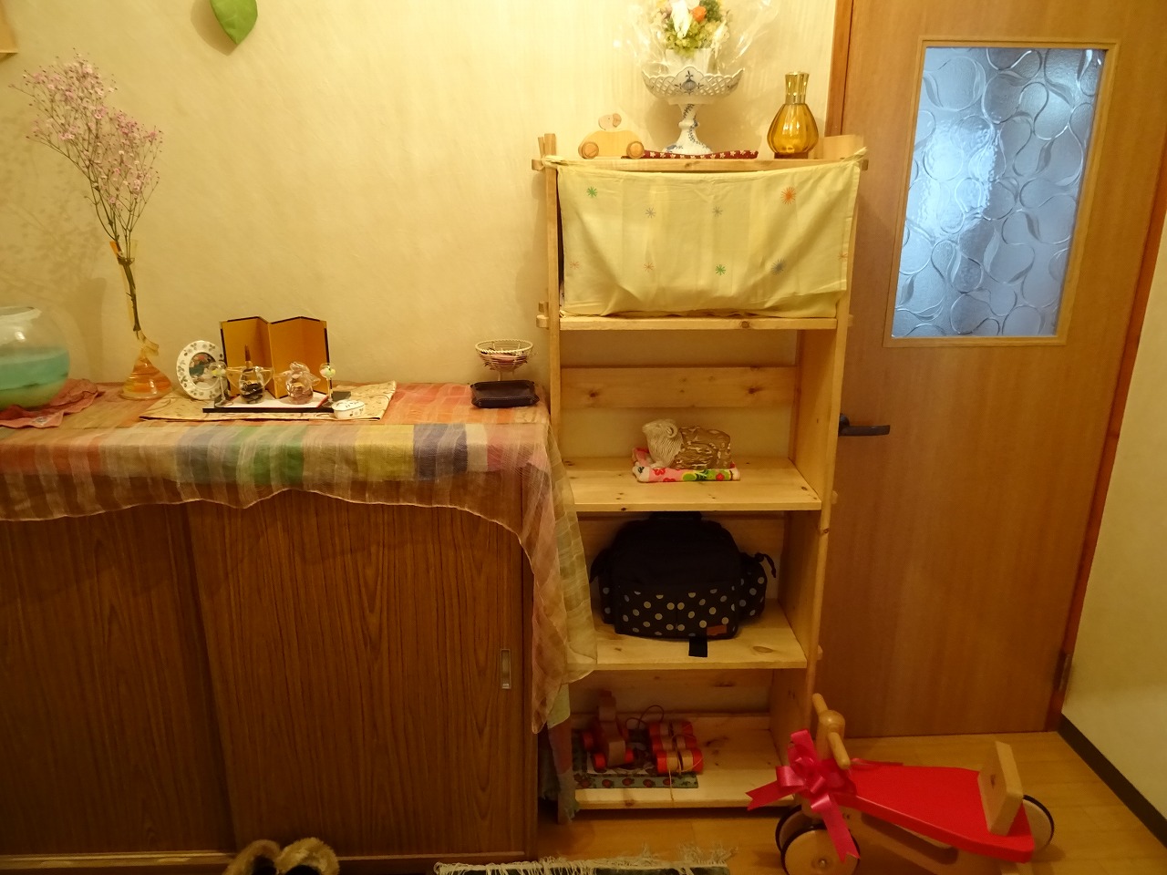このシェルフのおかげで昔式のアパートの玄関がちょっと素敵になりました(^_-)-☆