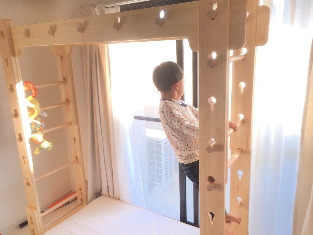 組立てました。3歳の息子はまだ怖がっておりますが、徐々に高いとこまで登ろうとしてます。