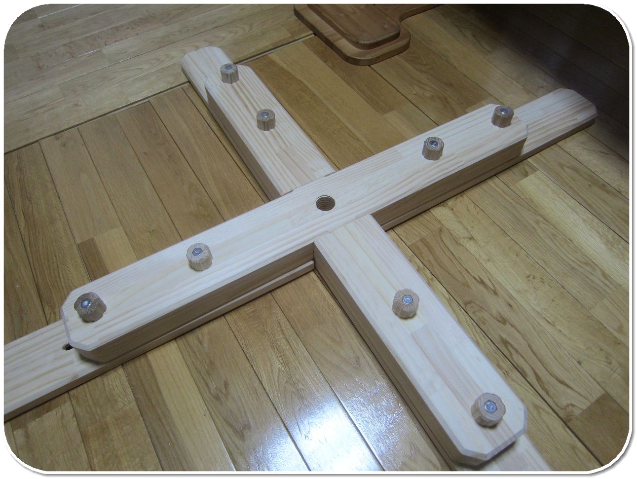 欠き込み部分の矢印が同方向になるように土台を組み合わせます。
