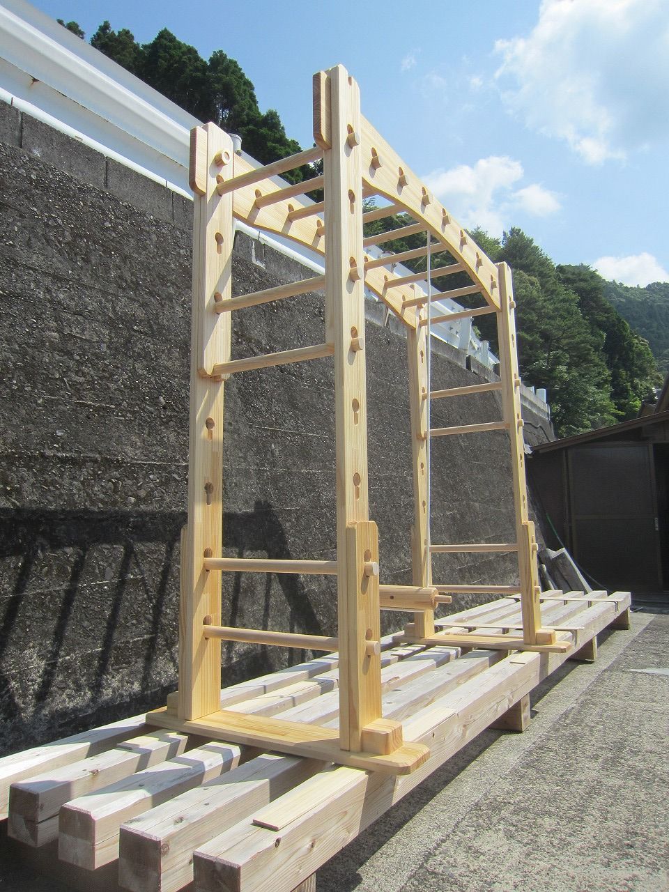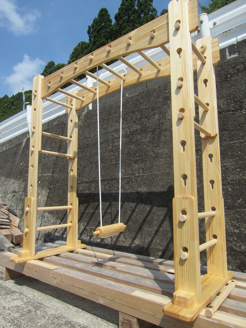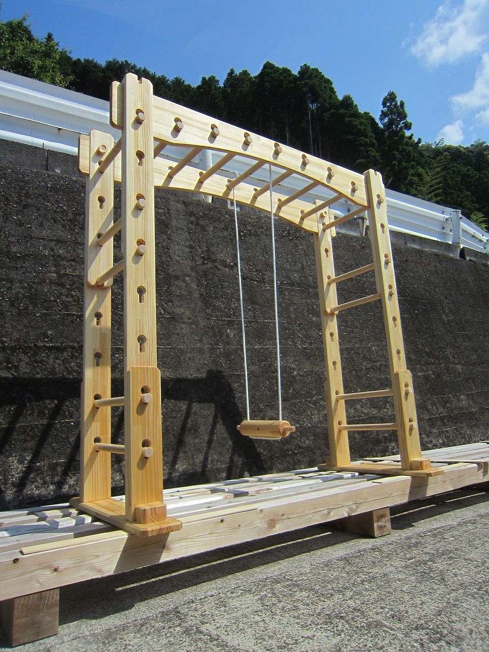 10日に発送済みの丸太ロープブランコ付きオーダーうんていクラシックです。