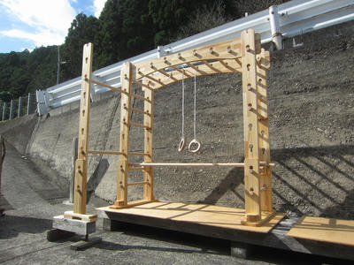 つり輪、平行棒、鉄棒機能を装備し、蜜蝋WAXで仕上げています。