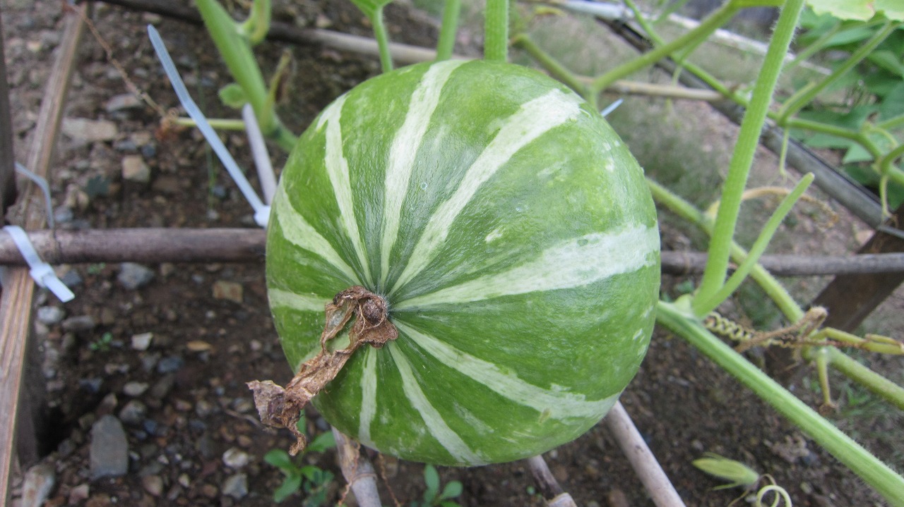 初めてのカボチャ栽培。ピンポン玉大になると枯れてしまいなかなか成長しないカボチャ。