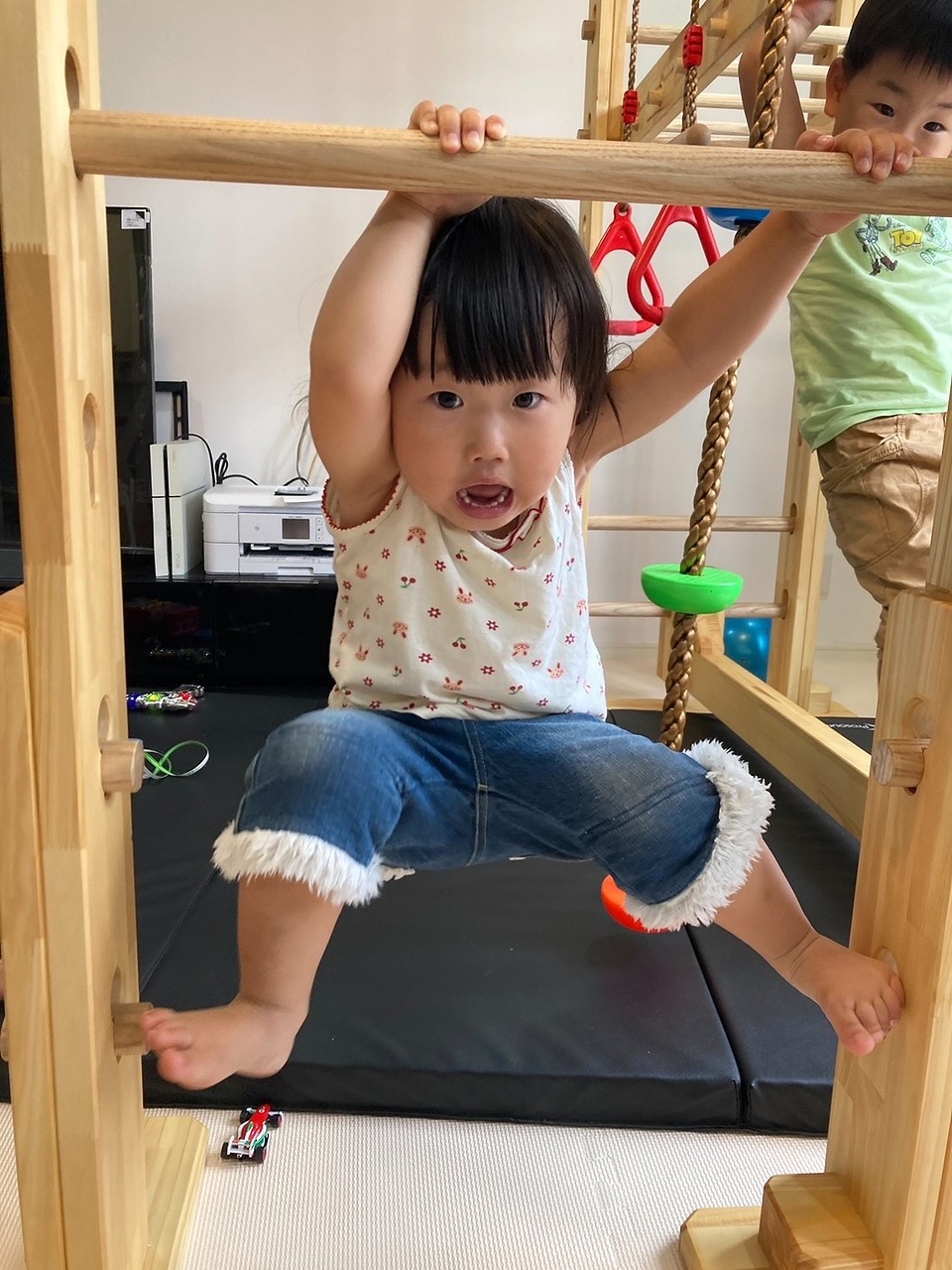 3歳のお姉ちゃんの方は、この鉄棒のおかげで逆上がりができるようになりました!本人もとても嬉しいみたいで何回も披露してくれます♪