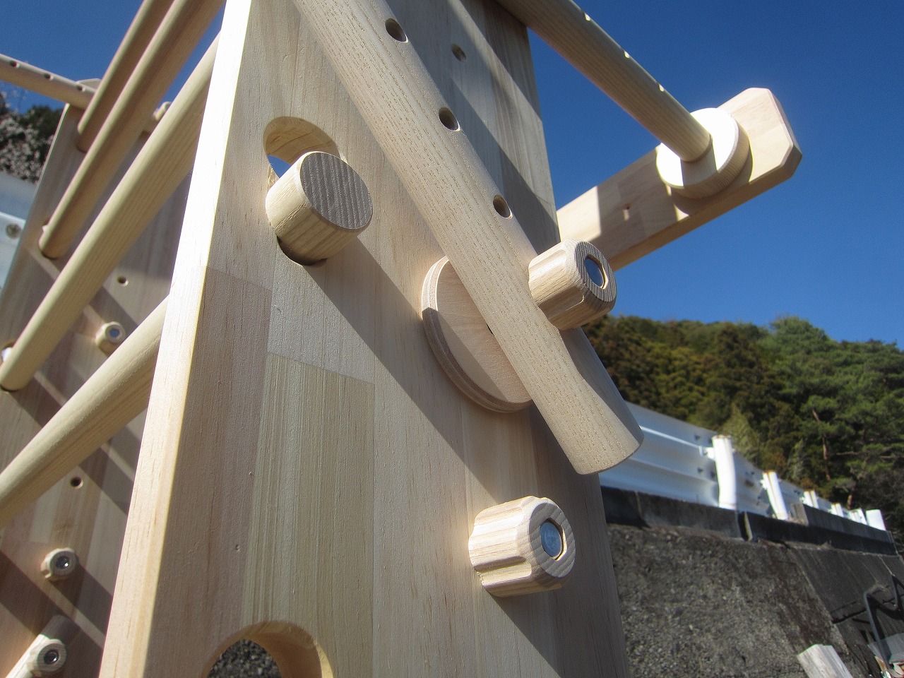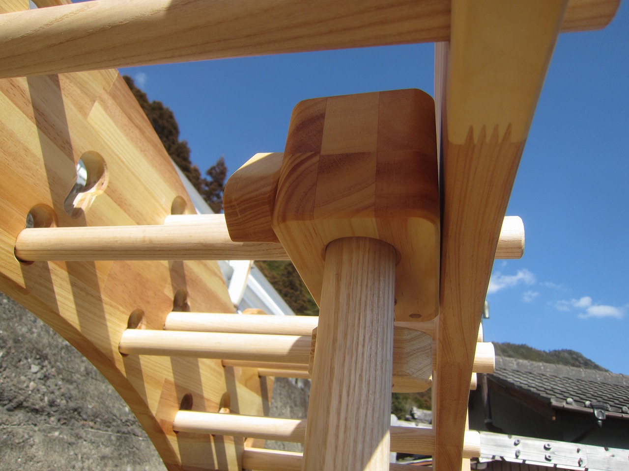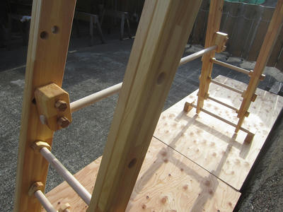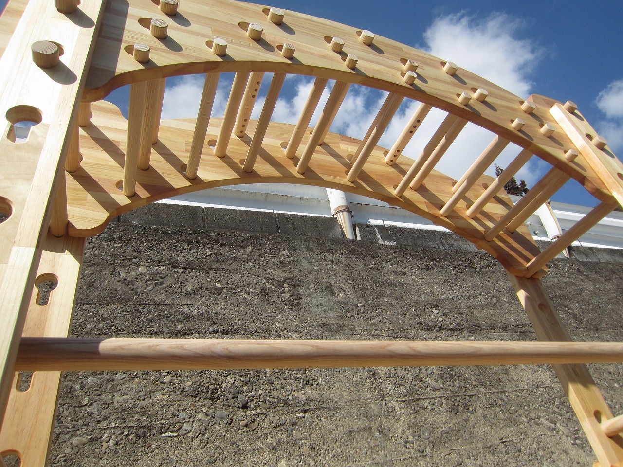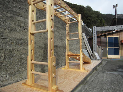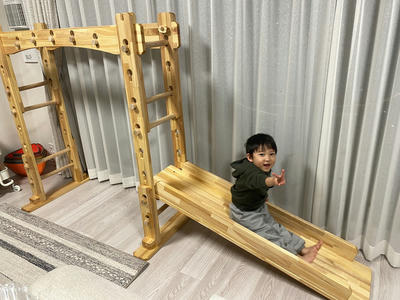 本田様のうんていを初めて知ったのは一年以上前です。さまざまな商品を調べましたが、ネジに至るまで木材が使われている自然のぬくもりを感じるデザイン、そして本田様の温かく人柄の伝わるブログに惹かれ、購入を決めました。