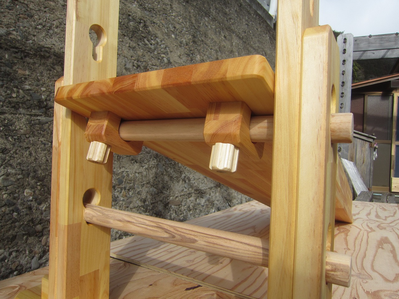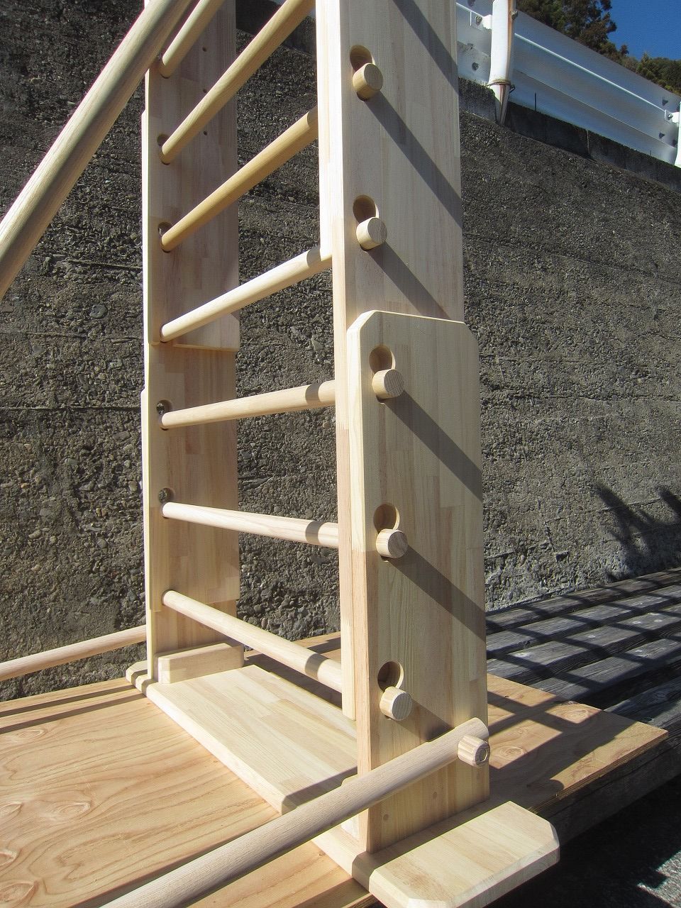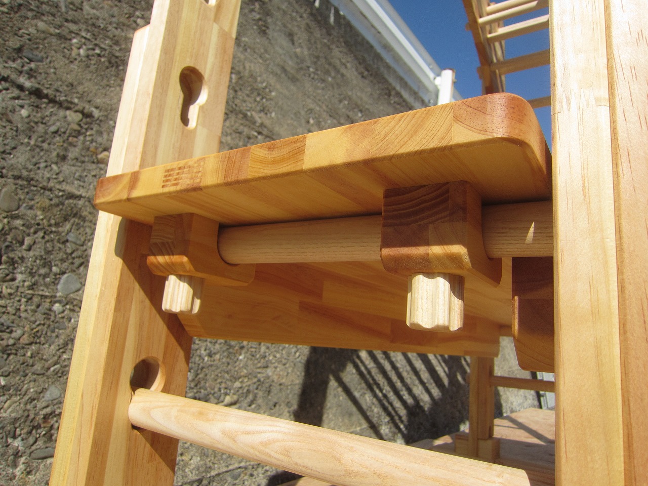 本田様のうんていを初めて知ったのは一年以上前です。さまざまな商品を調べましたが、ネジに至るまで木材が使われている自然のぬくもりを感じるデザイン、そして本田様の温かく人柄の伝わるブログに惹かれ、購入を決めました。