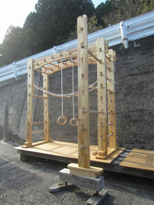 先日発送済みの鉄棒機能、つり輪、ロープラダーを装備した、蜜蝋仕上げのオーダーうんていクラシックです。