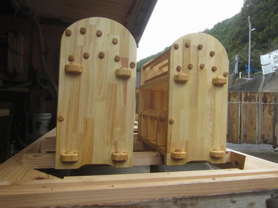 ①隠れる部分に記した番号(アルファベット)の向き通りに組み立て、込み栓で固定。