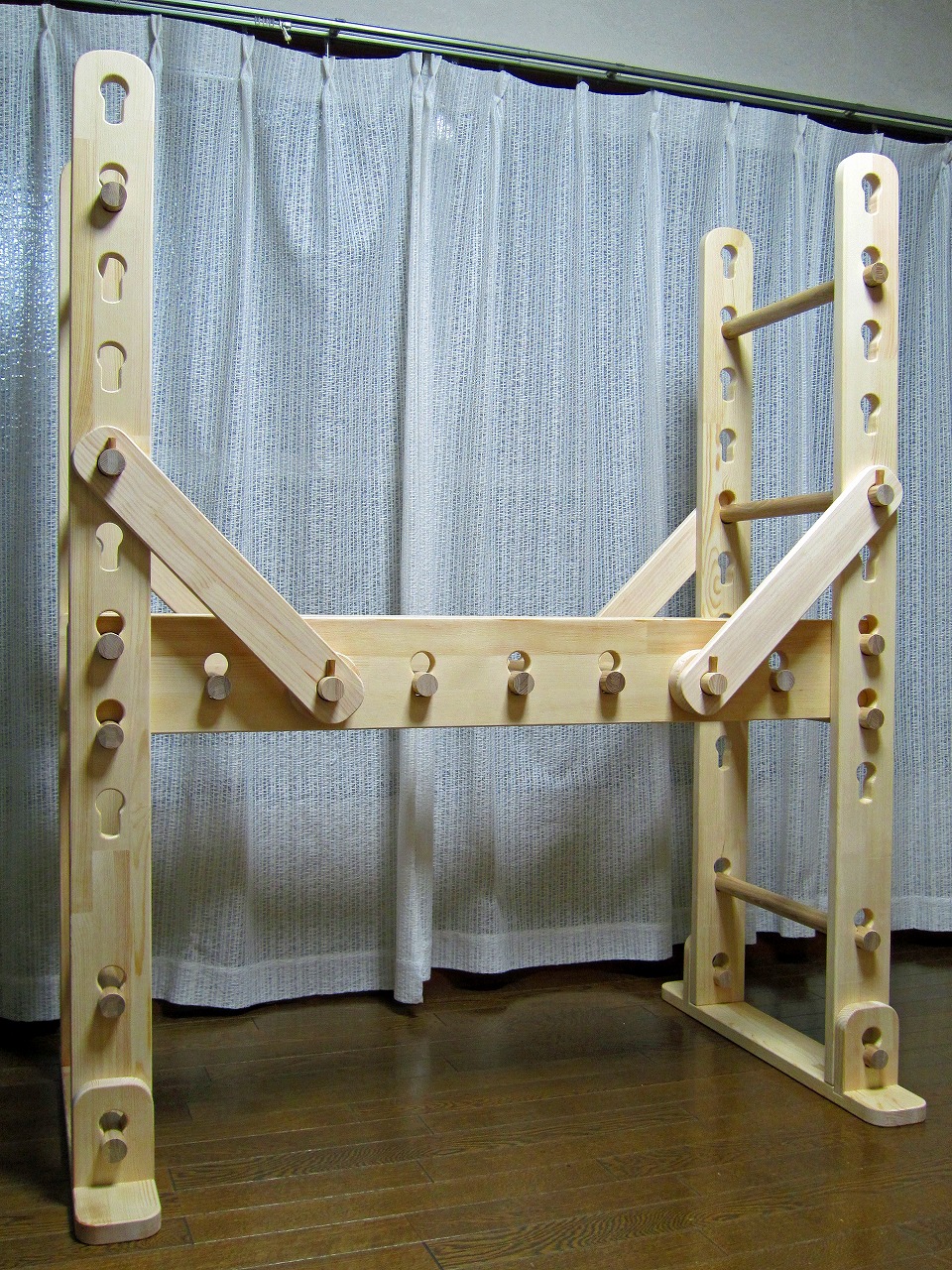 パイン集成材とタモ丸棒を使った、組み立て式室内うんていです。