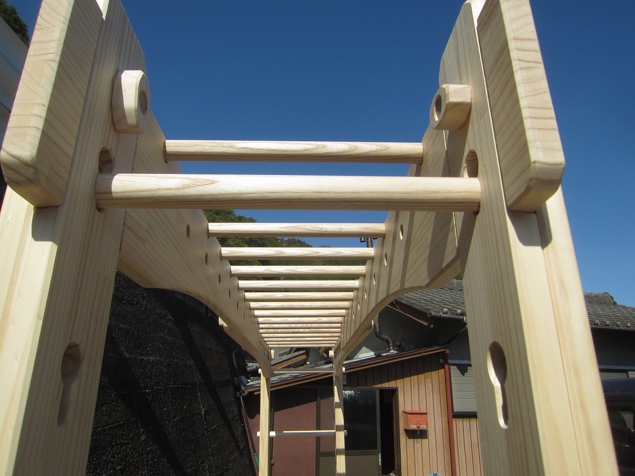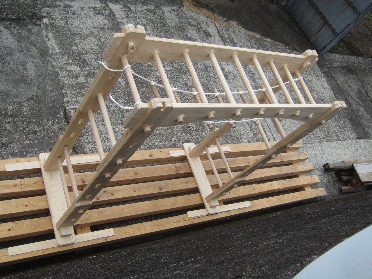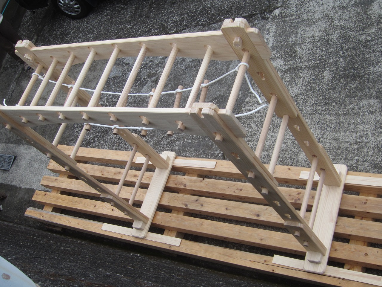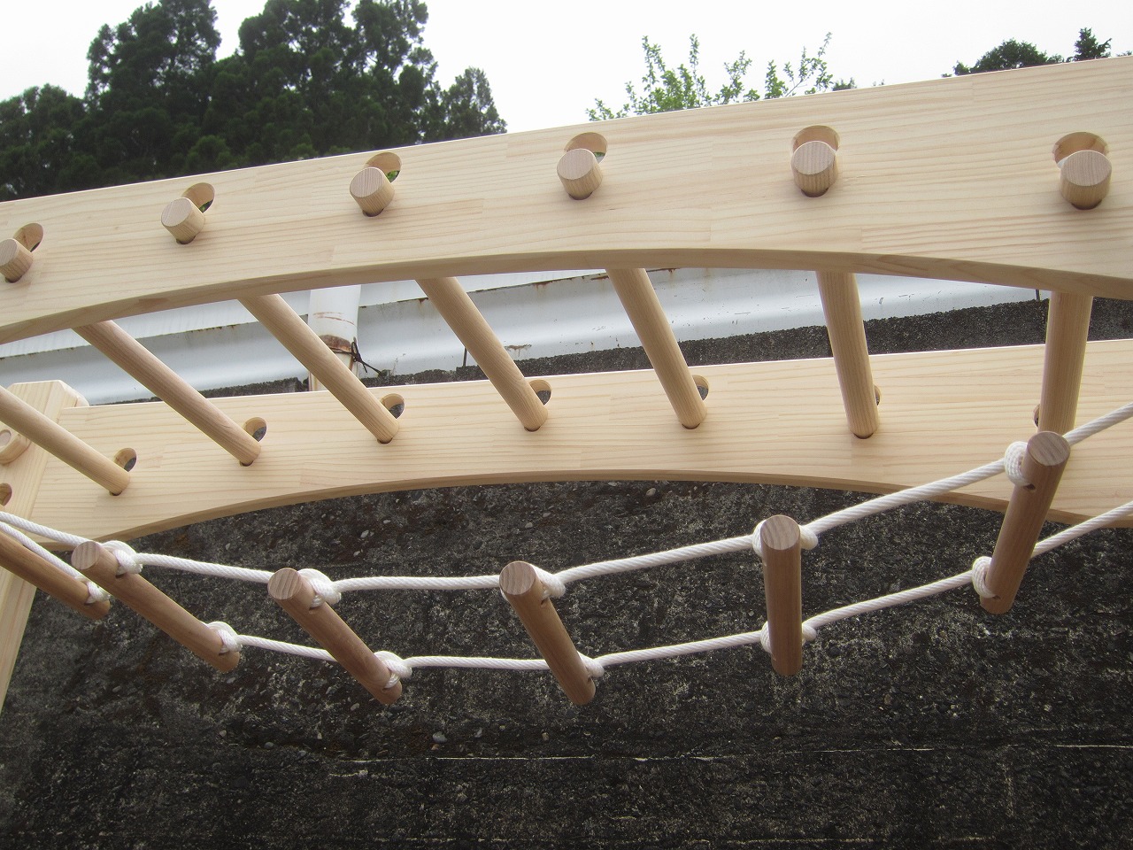 石川県のN.K様からのお便りでした。ありがとうございました。ロープラダーも三半規管養成丸太ロープブランコもうんていの組み方も全く問題ございません。可能とはいえ、女性お一人での組み上げには多少なりとも苦労なさったはずです。お疲れさまでした。子供さんがまだ小さいので、今後何年も何十年も使い続けていただけると嬉しいです。またのお便りを心からお待ちしております。本田