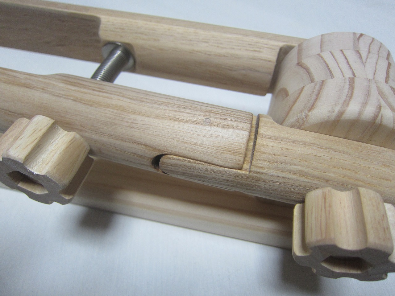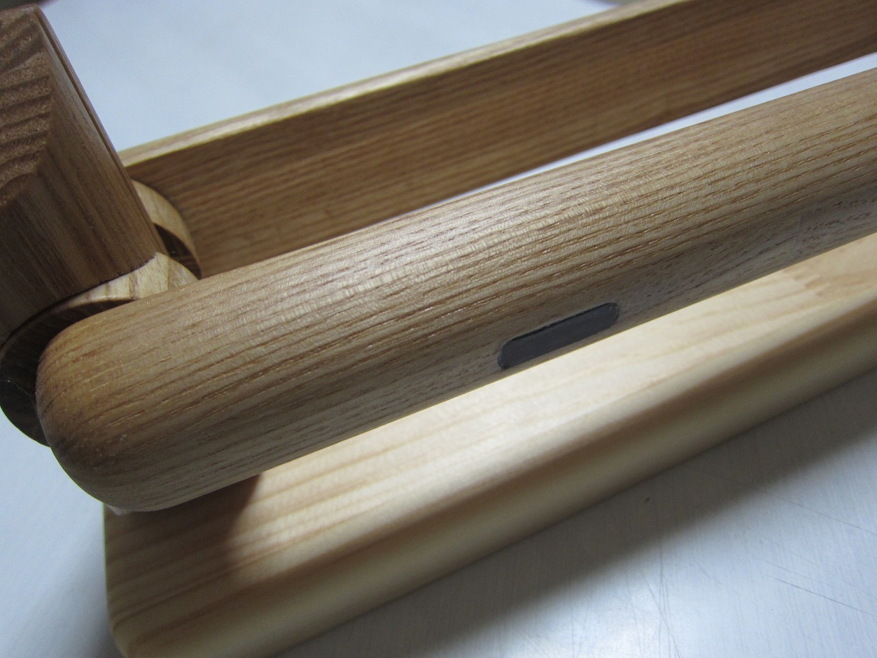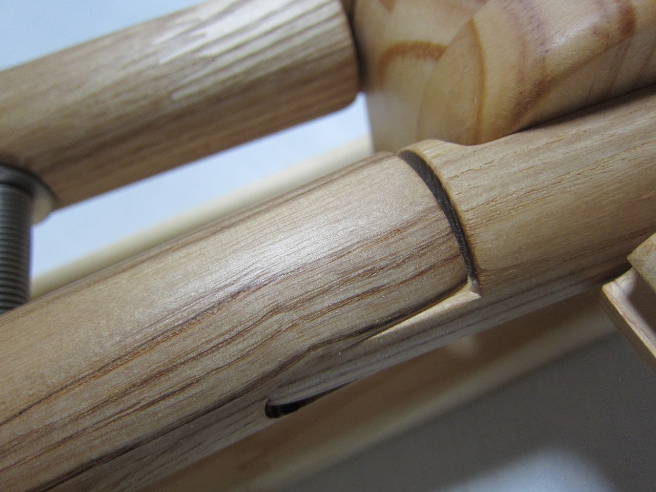 (回答)加工精度は極限まで上げていますが、丸棒は無垢材の性質上、湿度や反りなどできつくなったり緩くなったりしますので、どの位置どの方向にも全く同じ力でいつでも組み込みが出来るわけではありません。よって丸棒の方向を変えるか、一番きつかった物との交換が良い解決策となります。
