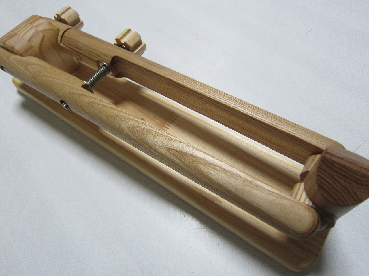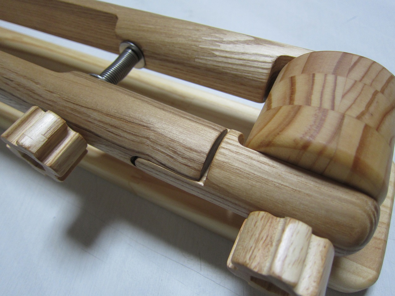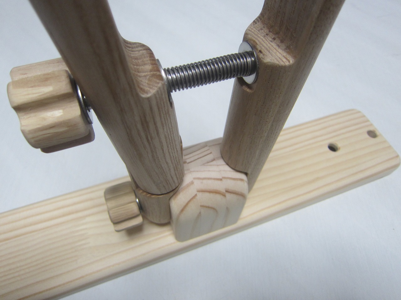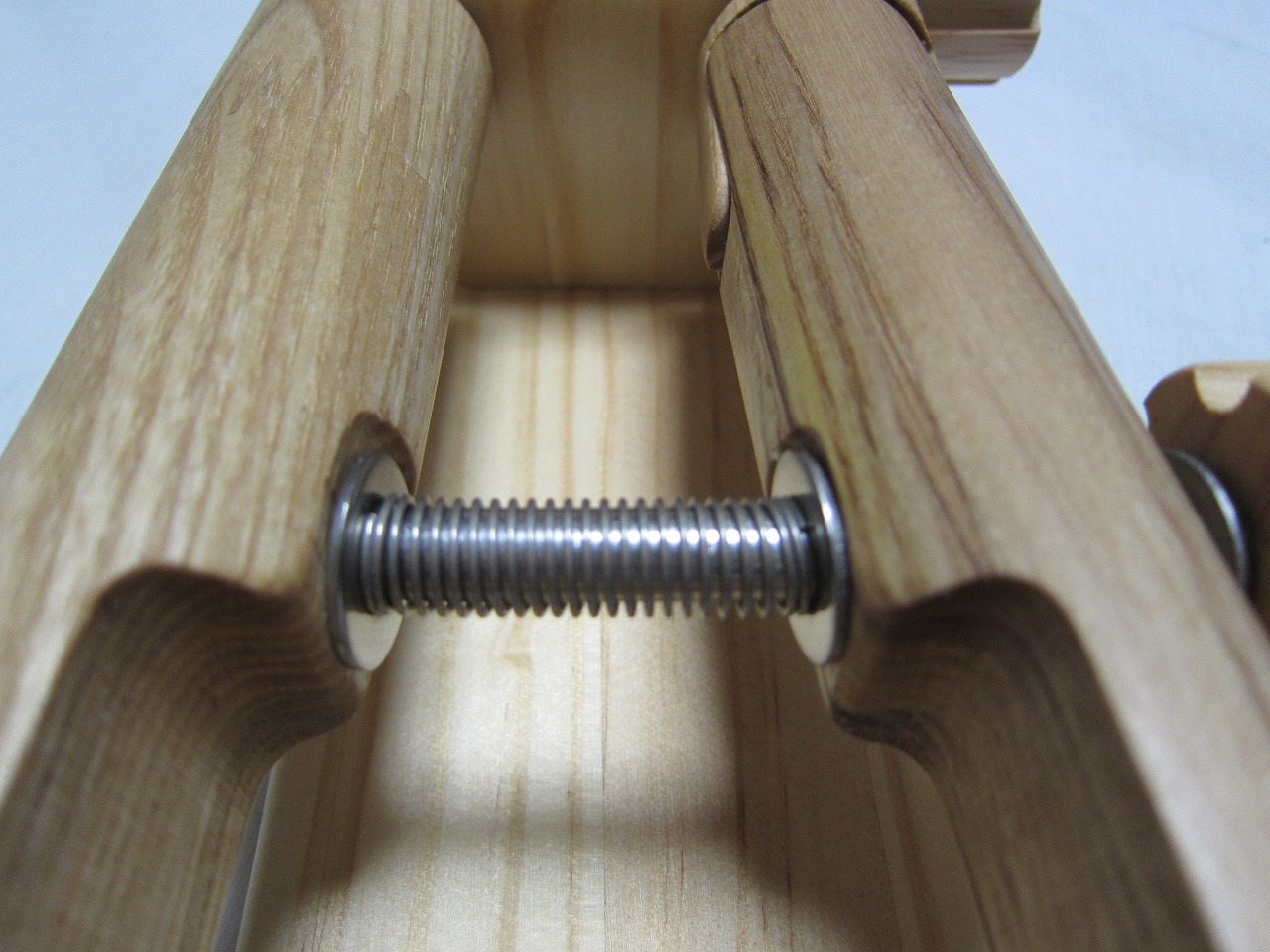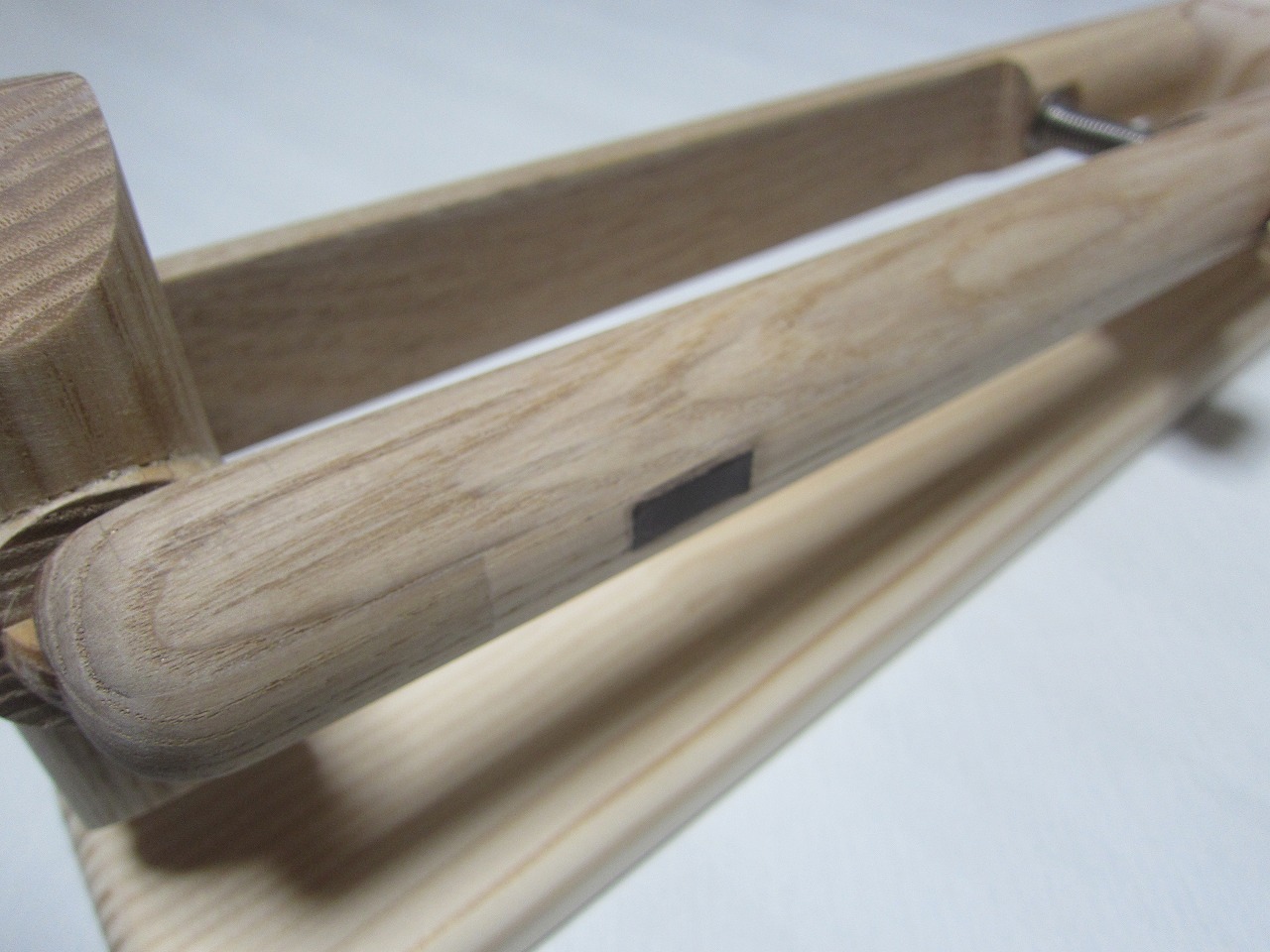 (回答)丸棒はホワイトアッシュという、無垢材のタモ系丸棒を使い、加工精度は極限まで上げていますが、丸棒ごとに密度や反りに僅かな差があり、天候(湿度)や経年劣化での影響できつさは常に変化します。それ故、どの丸棒をどの位置に組み込んでも全く同じきつさに仕上げることは不可能となります。天然木の性質をご理解ください。