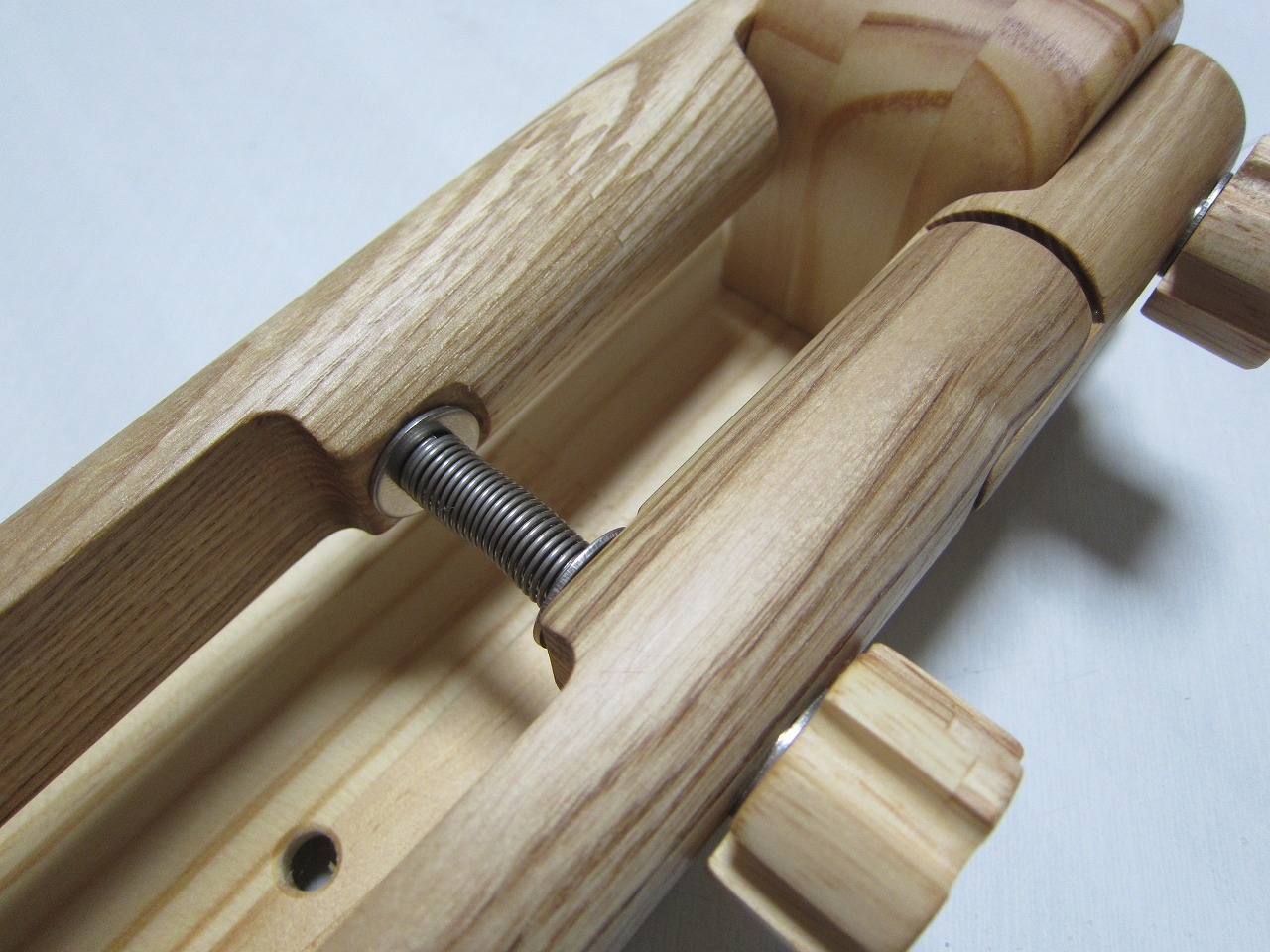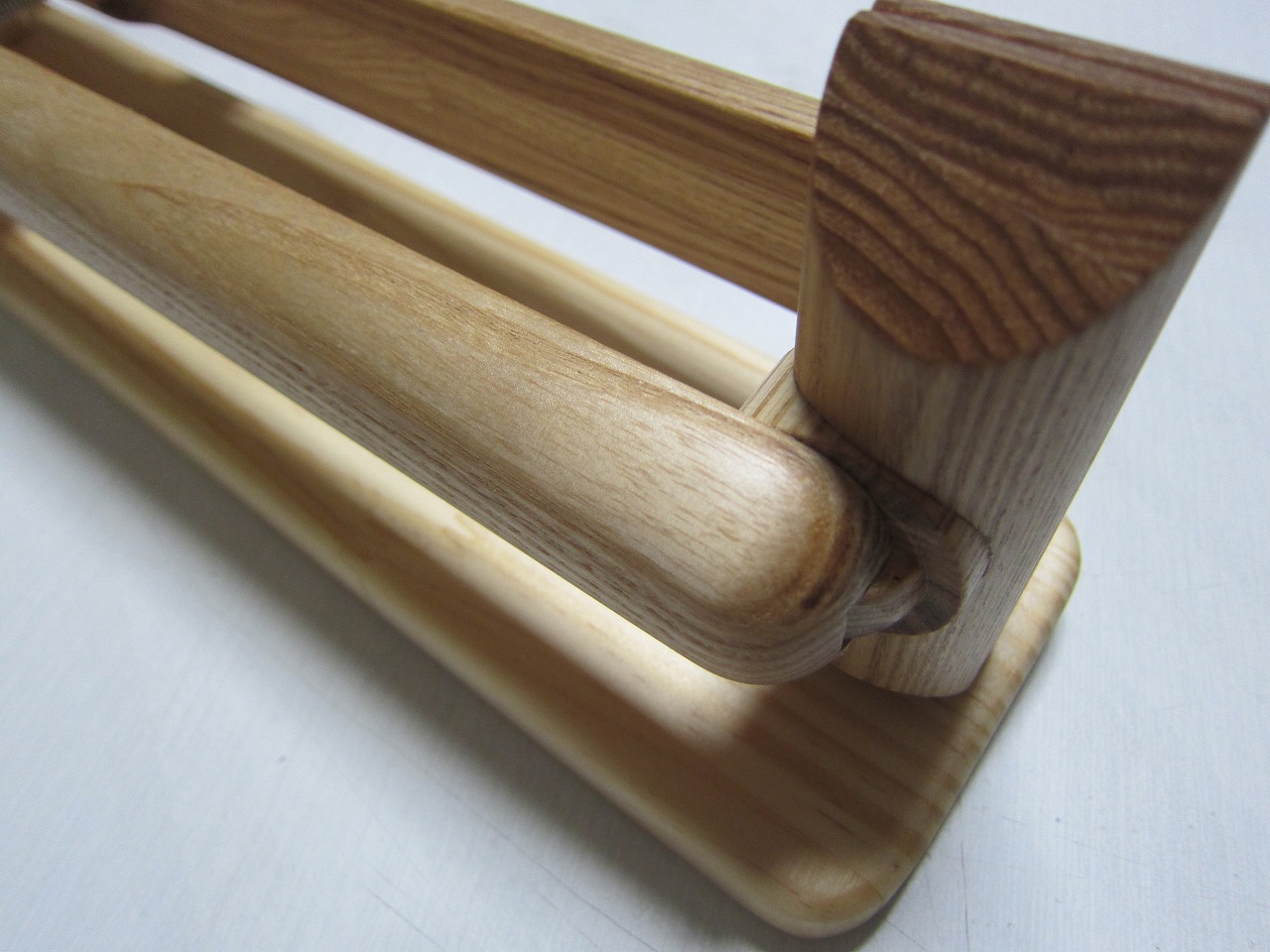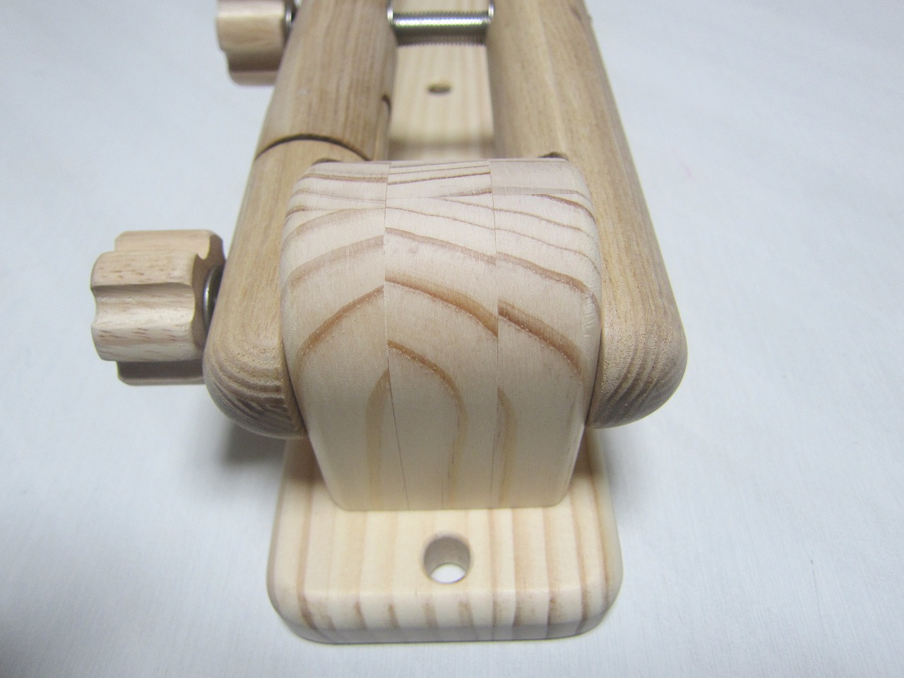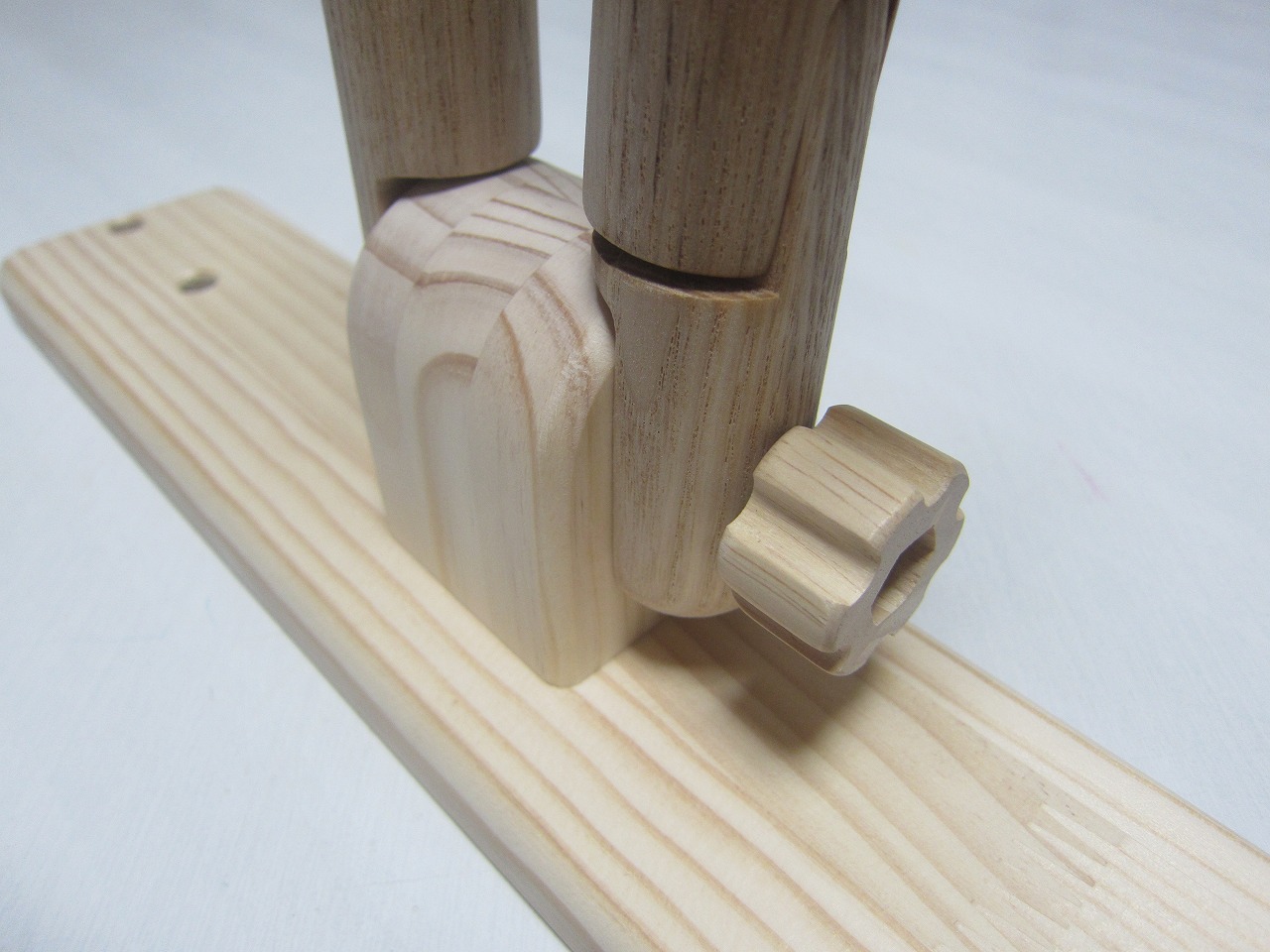 (回答)丸棒はホワイトアッシュという、無垢材のタモ系丸棒を使い、加工精度は極限まで上げていますが、丸棒ごとに密度や反りに僅かな差があり、天候(湿度)や経年劣化での影響できつさは常に変化します。それ故、どの丸棒をどの位置に組み込んでも全く同じきつさに仕上げることは不可能となります。天然木の性質をご理解ください。