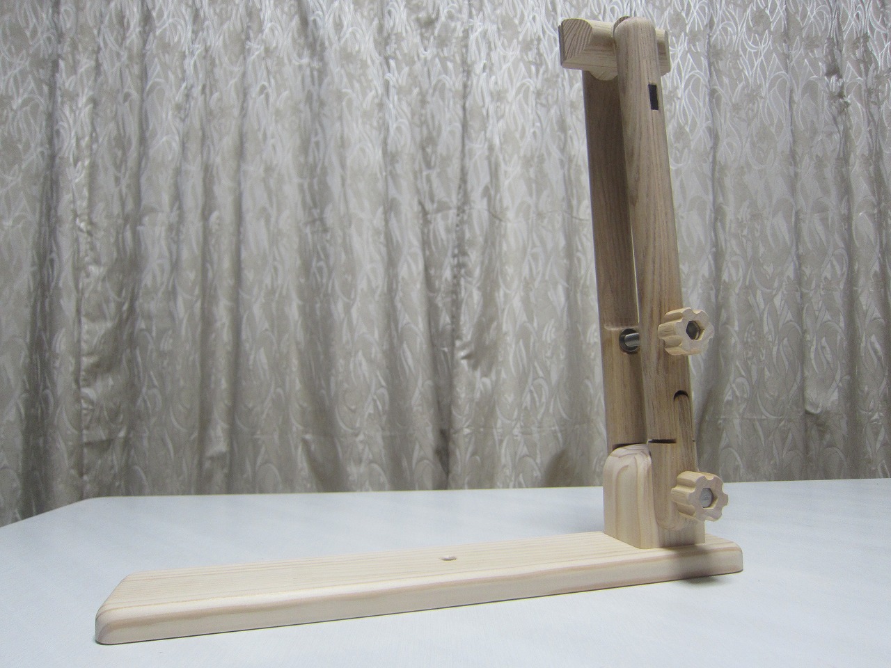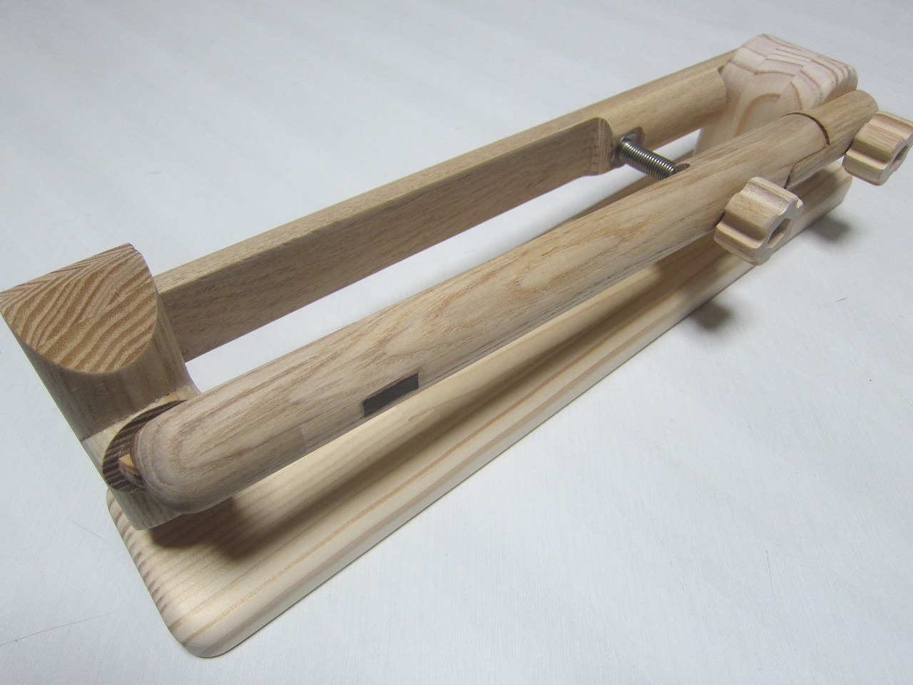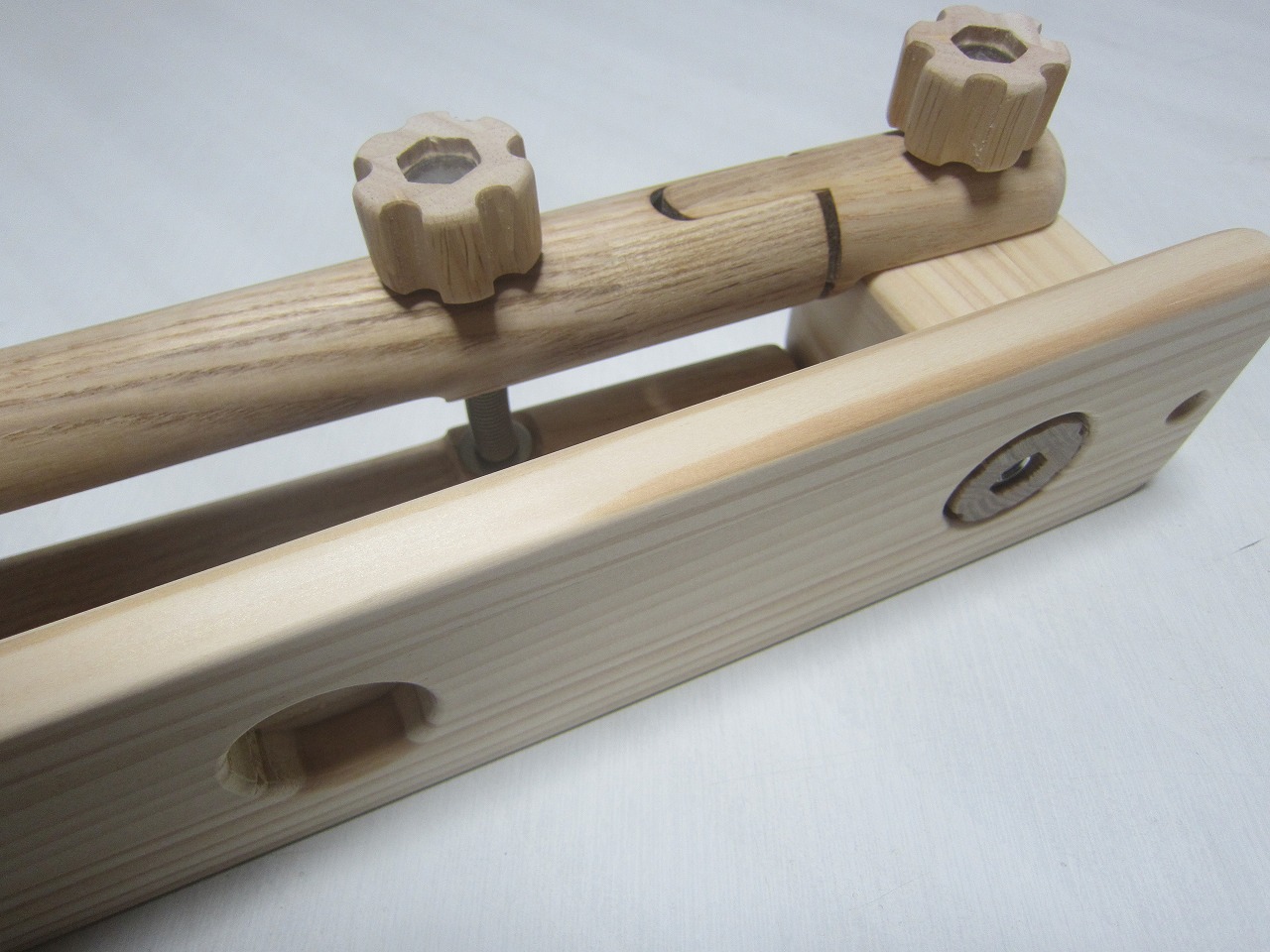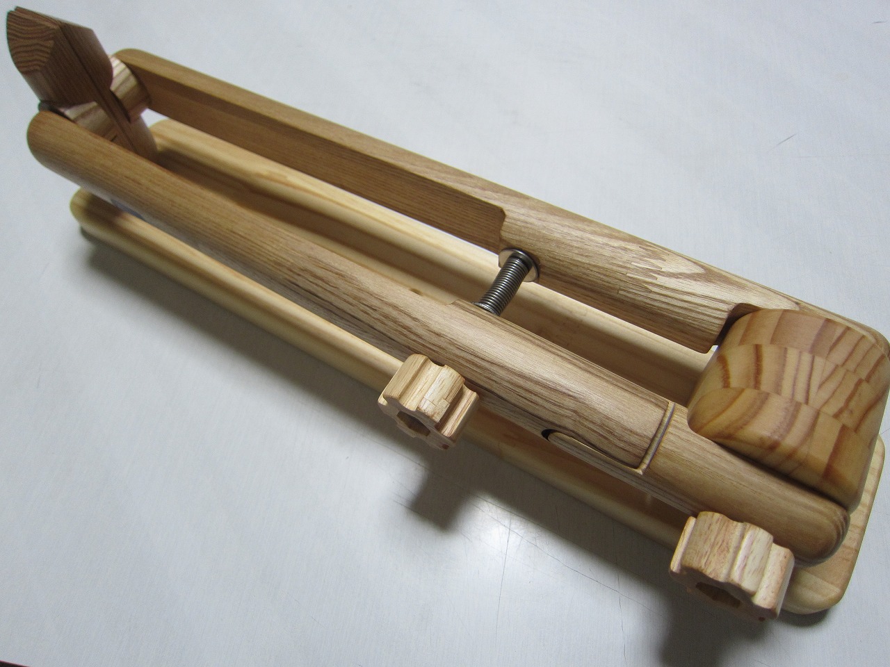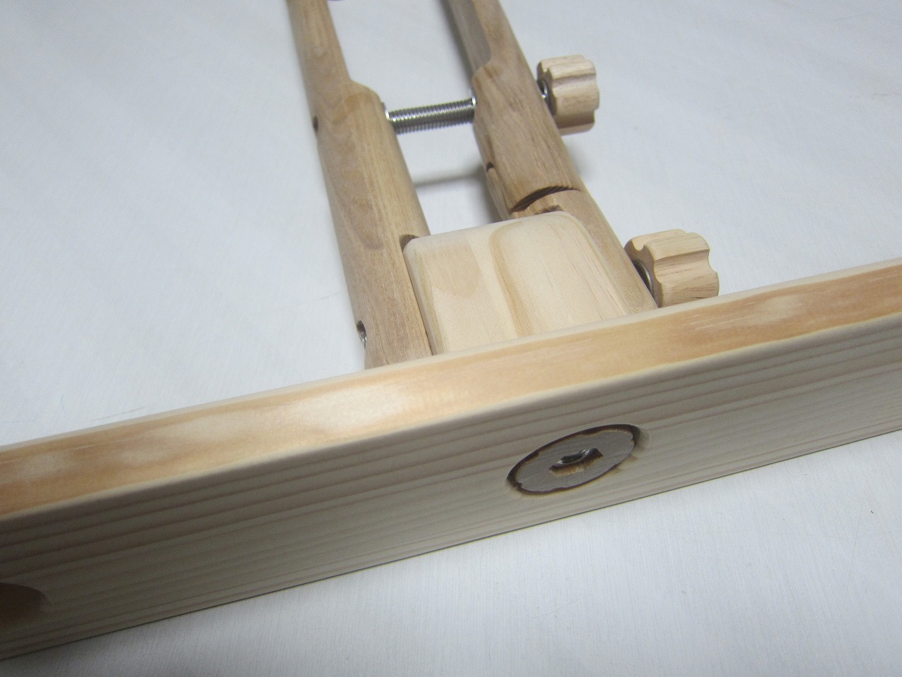 (回答)丸棒はホワイトアッシュという、無垢材のタモ系丸棒を使い、加工精度は極限まで上げていますが、丸棒ごとに密度や反りに僅かな差があり、天候(湿度)や経年劣化での影響できつさは常に変化します。それ故、どの丸棒をどの位置に組み込んでも全く同じきつさに仕上げることは不可能となります。天然木の性質をご理解ください。