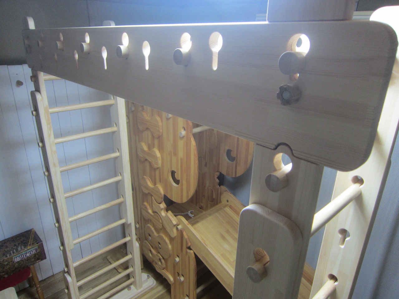(回答)生涯仕様は大人が家庭でうんていを楽しむ目的で作っており、構造も通常のうんていをはるかに凌駕するものですが、1歳から使い始めて老人になるまで全く劣化することなく使い続けられるわけではありませんので、ヒビ割れなどが発生すればその都度修復しながら使っていただくことになります。