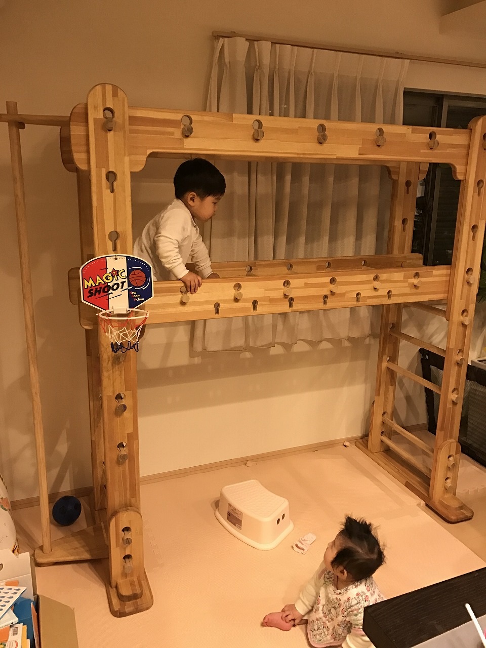 よって、このような遊具を小さな子供に使わせるときは常に親が見張っている必要があるということです。きついようですが、すべて自己責任です。それが不可能であれば、このような家庭用遊具のご購入は止めておいた方がよろしいと思います。