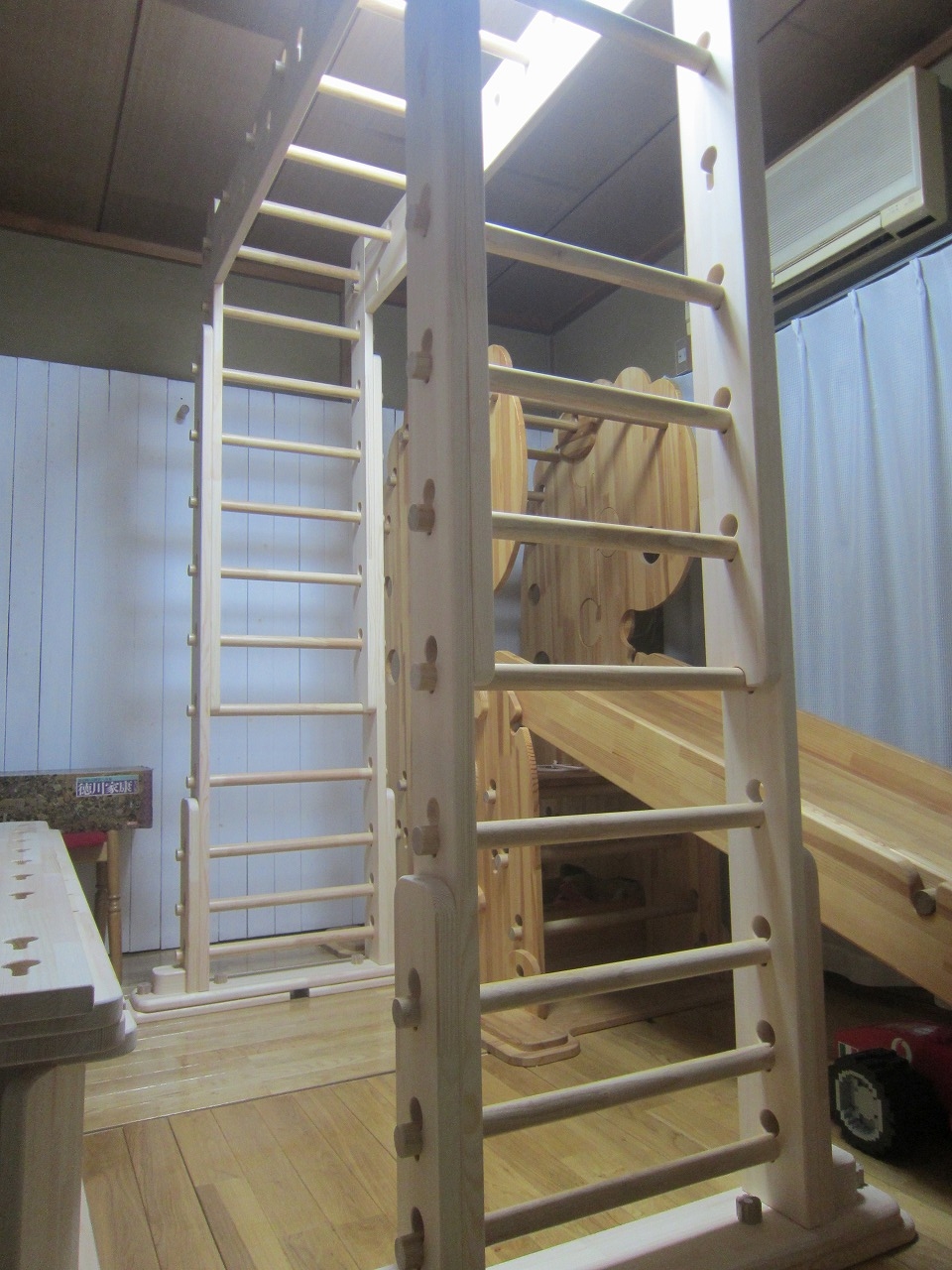 質問 滑り台を幼児用握り棒セット側板に引っかけ、手前に滑れるようにすることは出来ますか?