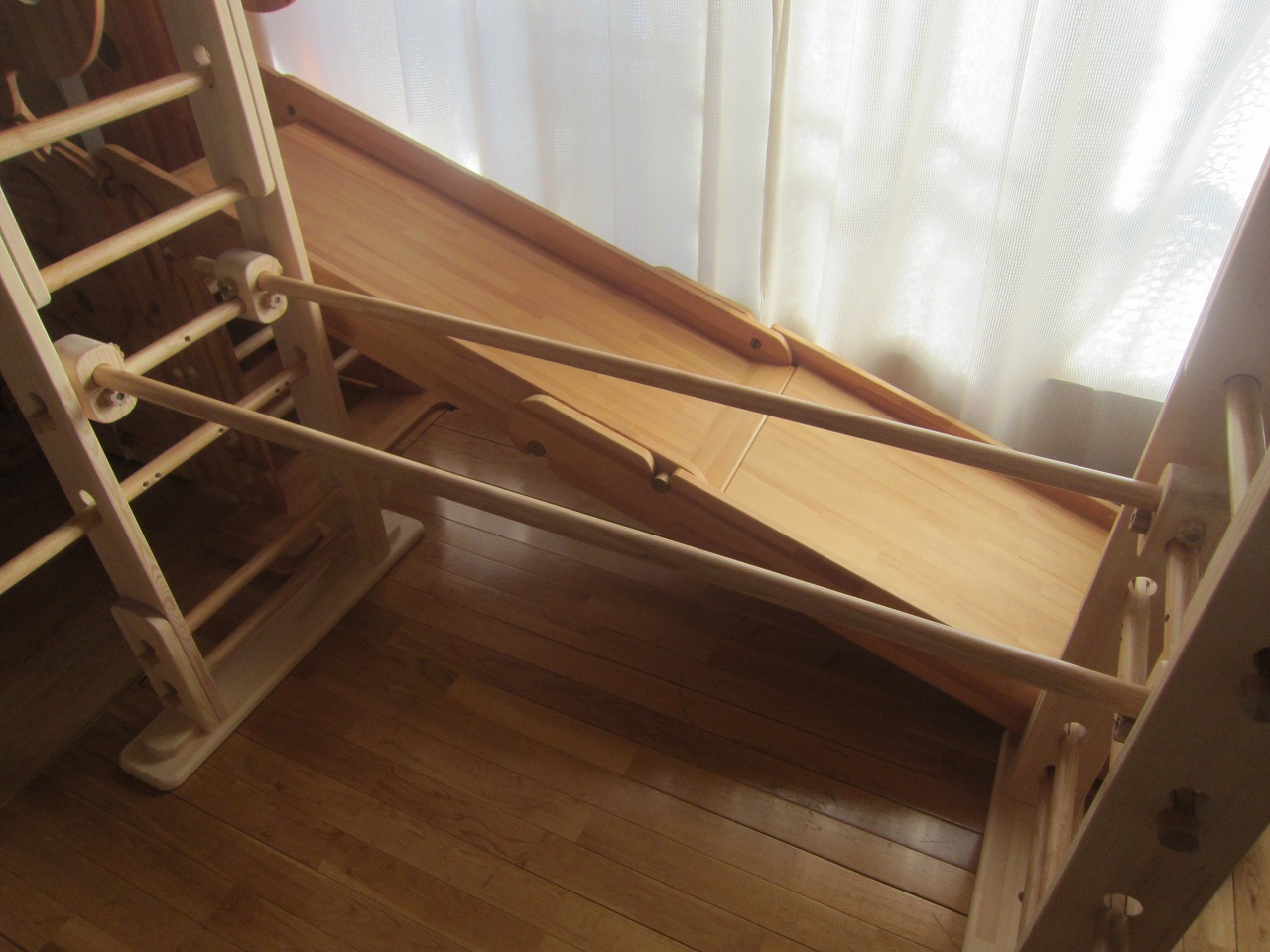 質問 滑り台を幼児用握り棒セット側板に引っかけ、手前に滑れるようにすることは出来ますか?