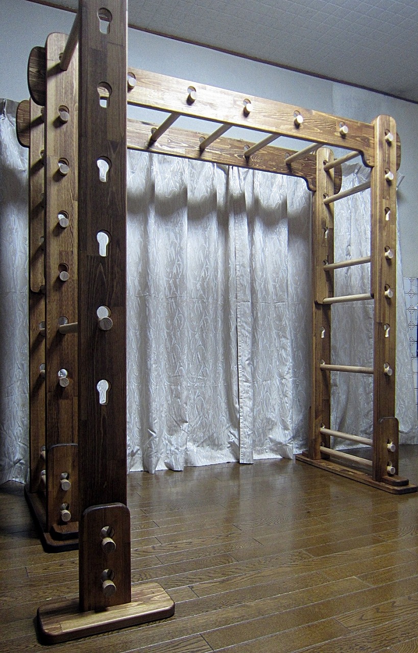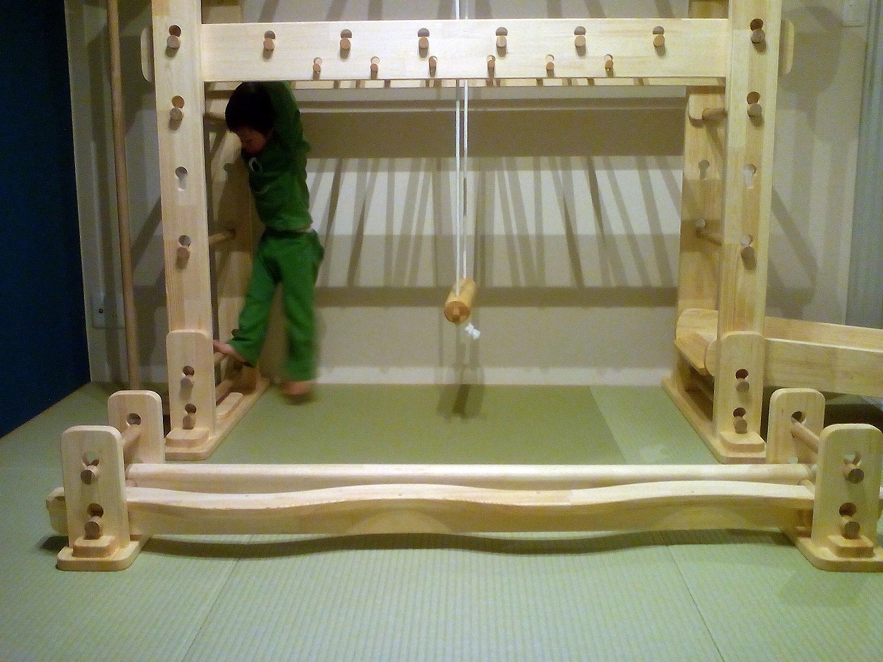 足元側の丸棒には、怪我防止のためにホームセンターで買ってきたゴムのキャップをつけました。