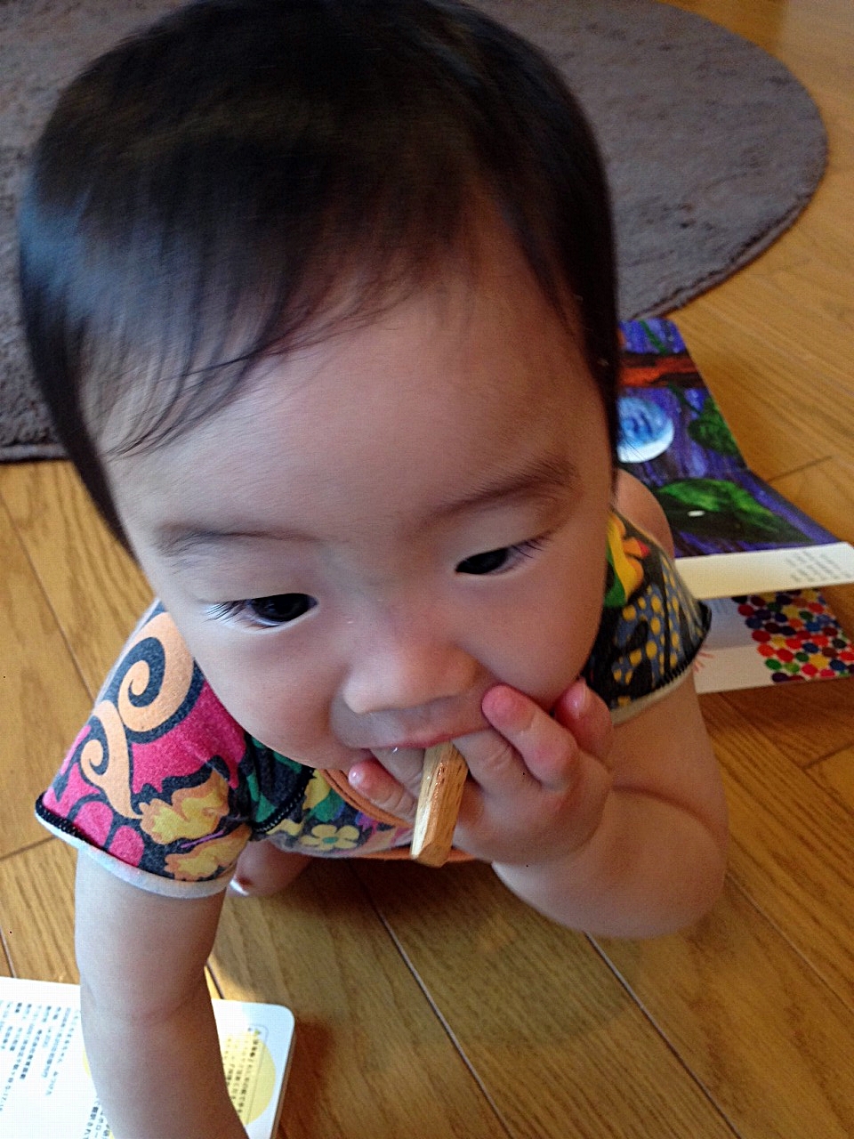 9か月末に歩き始め、一升もちも背負って歩くほど体育会系なのですが、