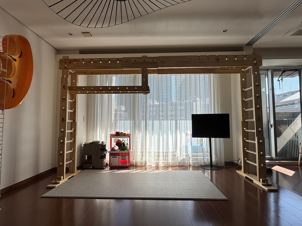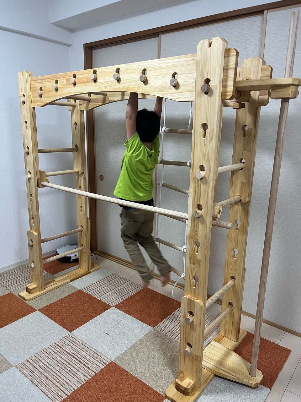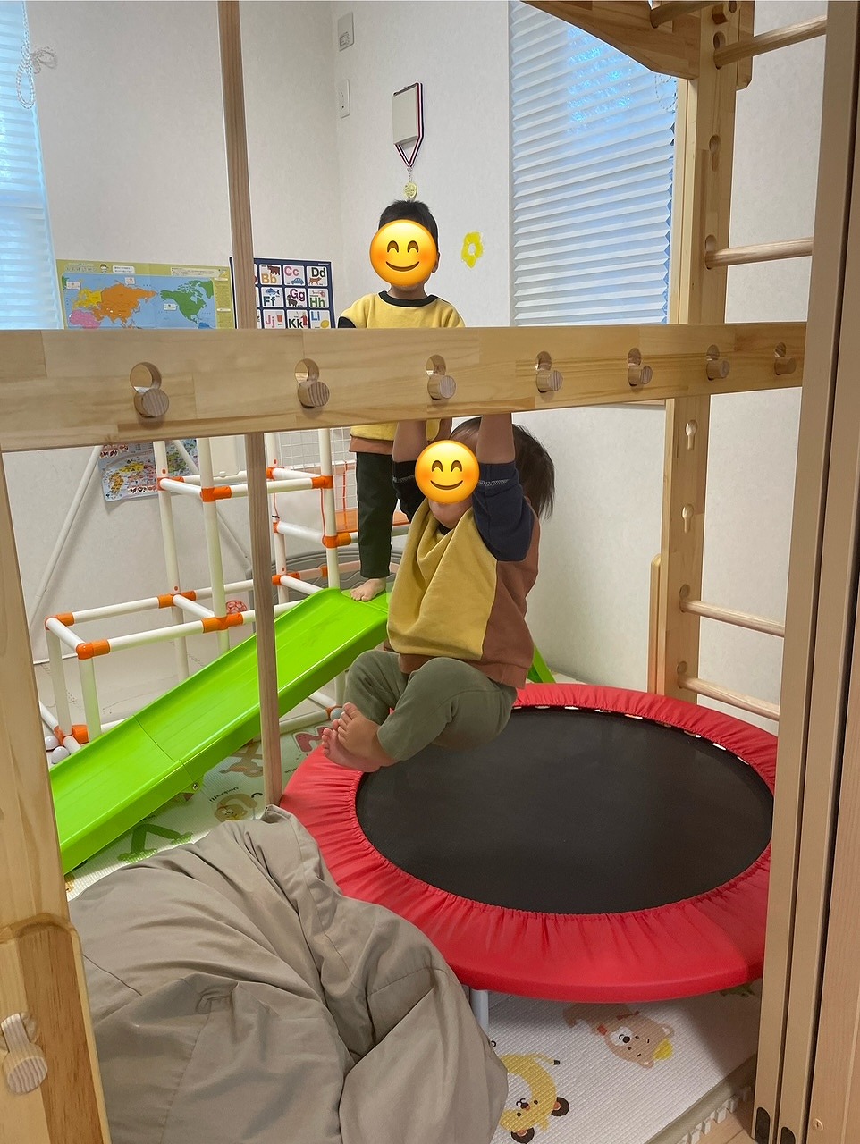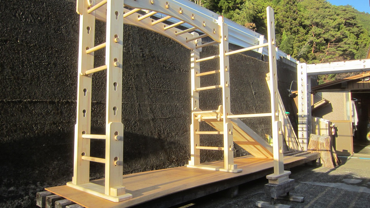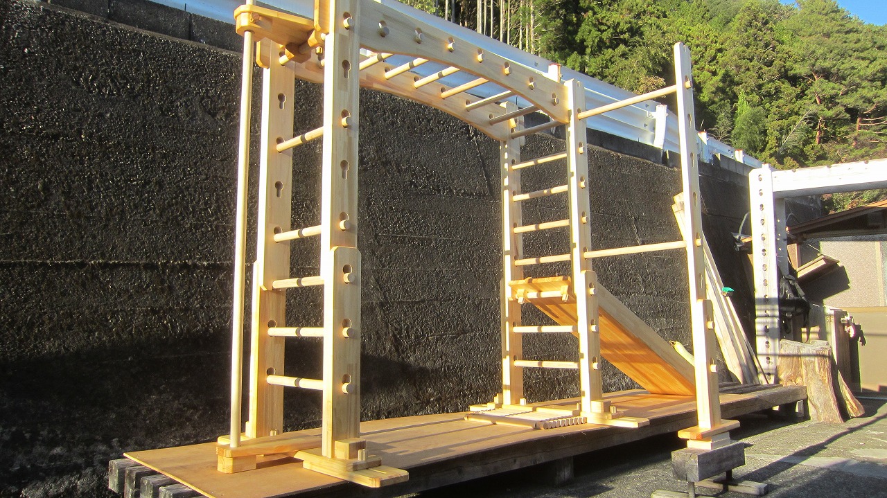 今は登り棒をフロント側に移動して、ブランコを取り付けたりして色々楽しんでおります(o^^o)