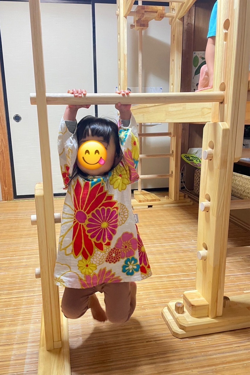 3歳のお姉ちゃんの方は、この鉄棒のおかげで逆上がりができるようになりました!本人もとても嬉しいみたいで何回も披露してくれます♪