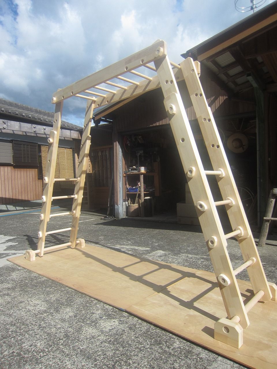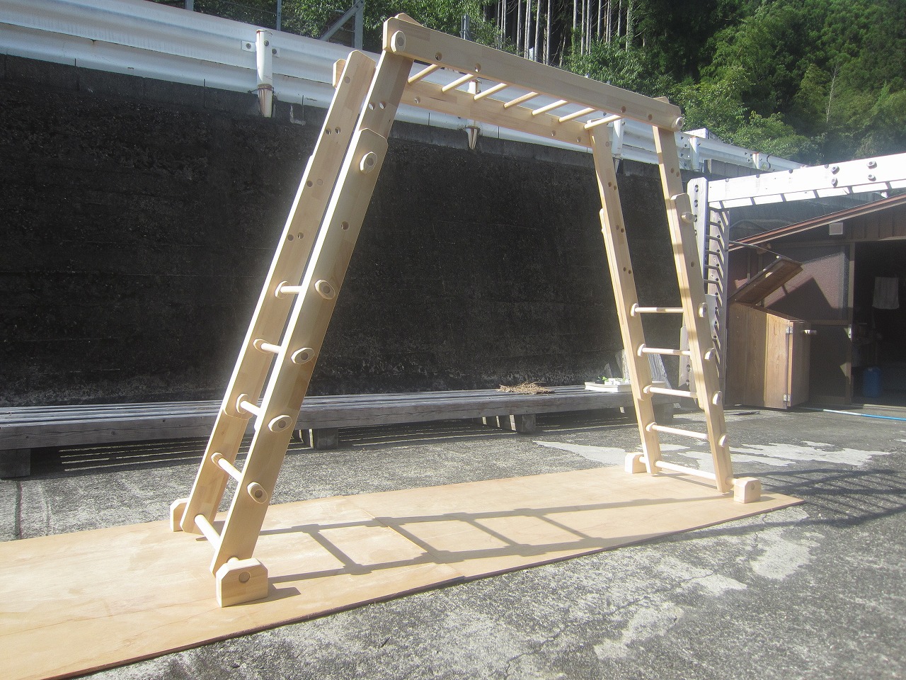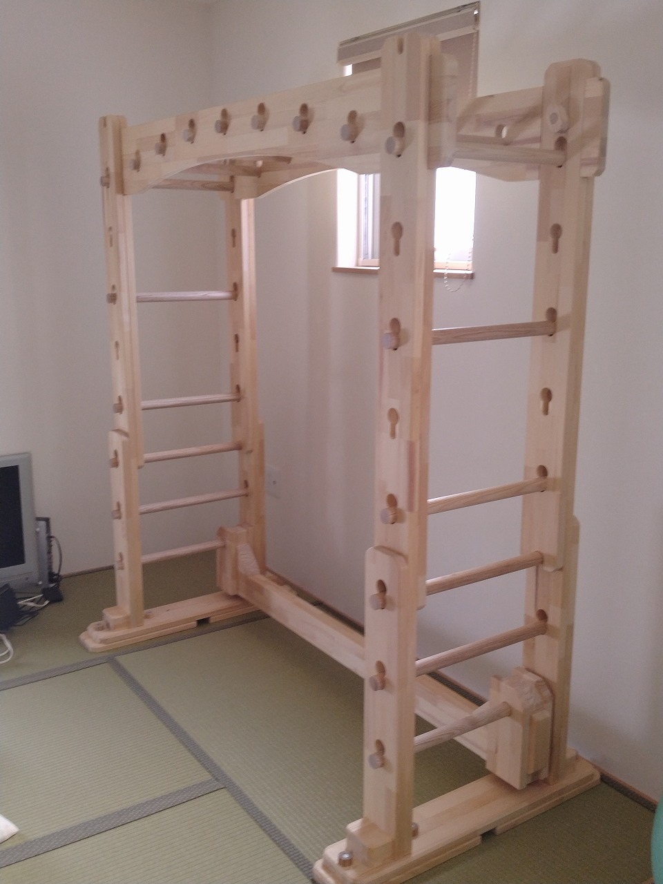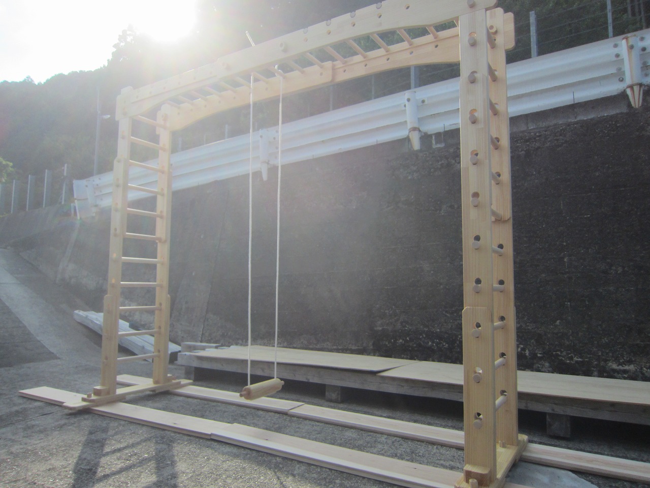 広島はT.k様からのお便りでした。ありがとうございます。先日お送りしたオーダーうんていクラシック生涯仕様です。オプションでは平均台にもなる内蔵型スラックラインを装備します。ご家族でいつまでも使っていただけるとうれしいです。またのお便りをお待ちしております。優しいお気遣いも感謝です。本田