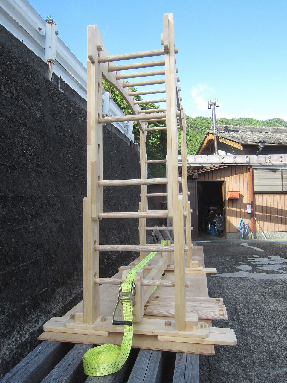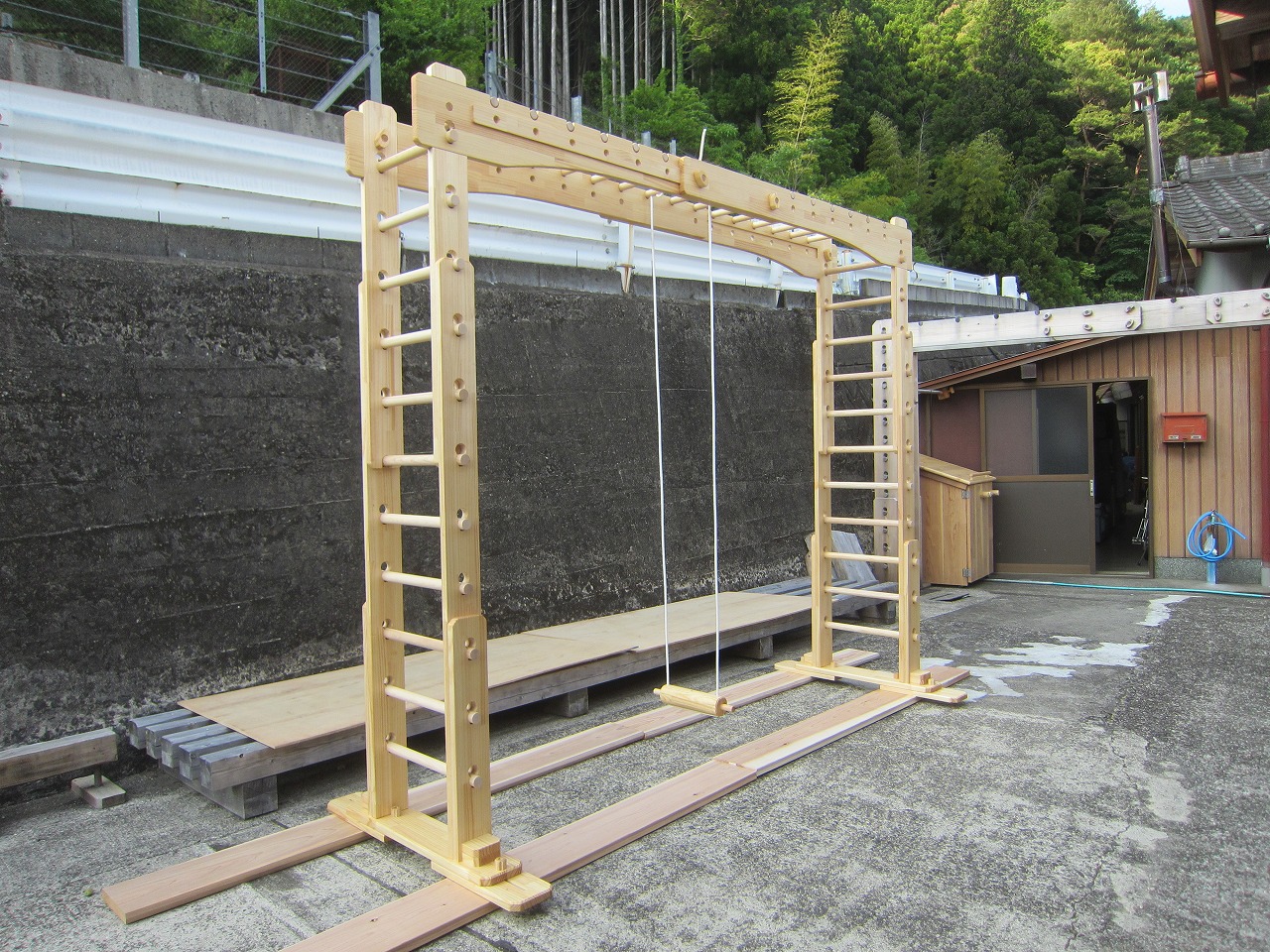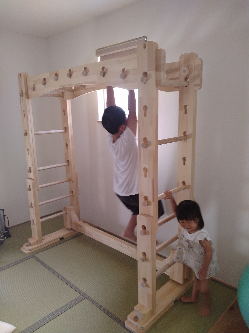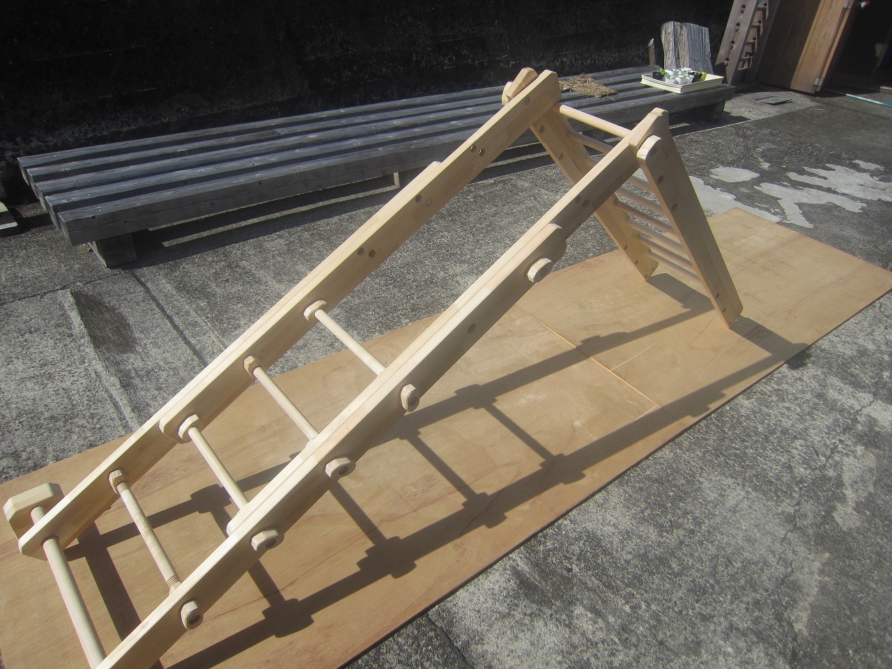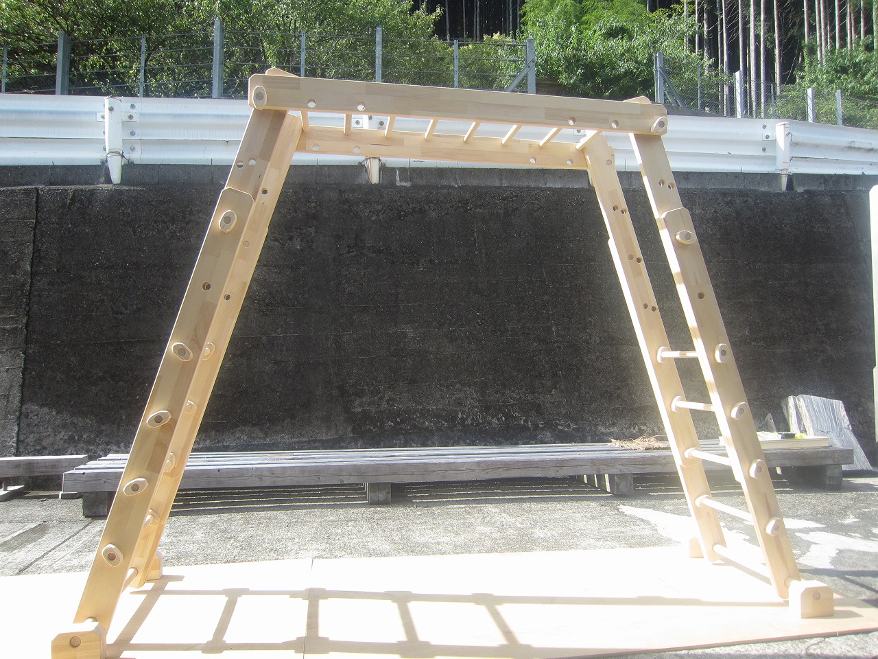 広島はT.k様からのお便りでした。ありがとうございます。先日お送りしたオーダーうんていクラシック生涯仕様です。オプションでは平均台にもなる内蔵型スラックラインを装備します。ご家族でいつまでも使っていただけるとうれしいです。またのお便りをお待ちしております。優しいお気遣いも感謝です。本田