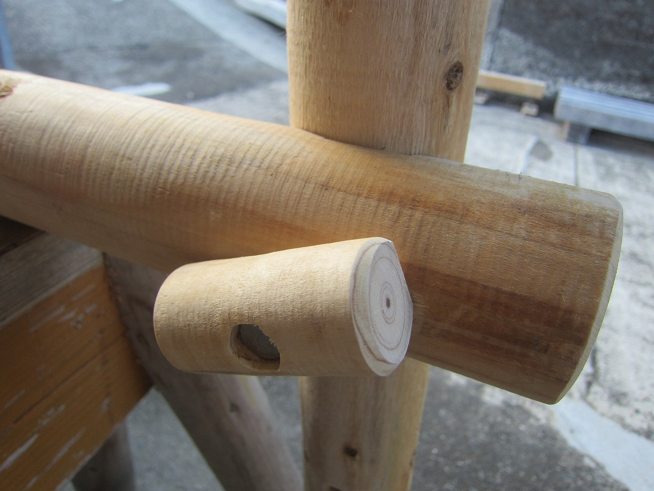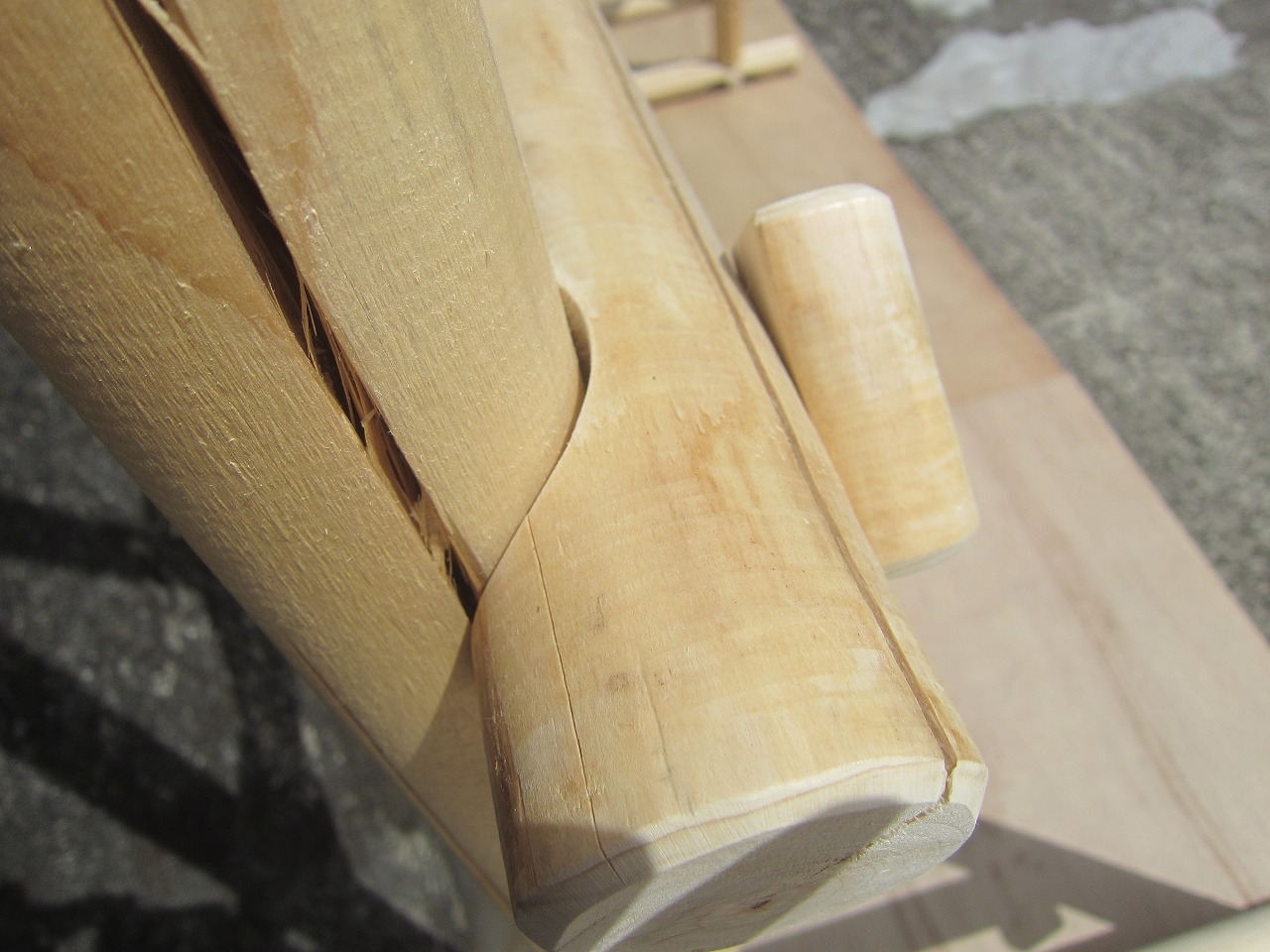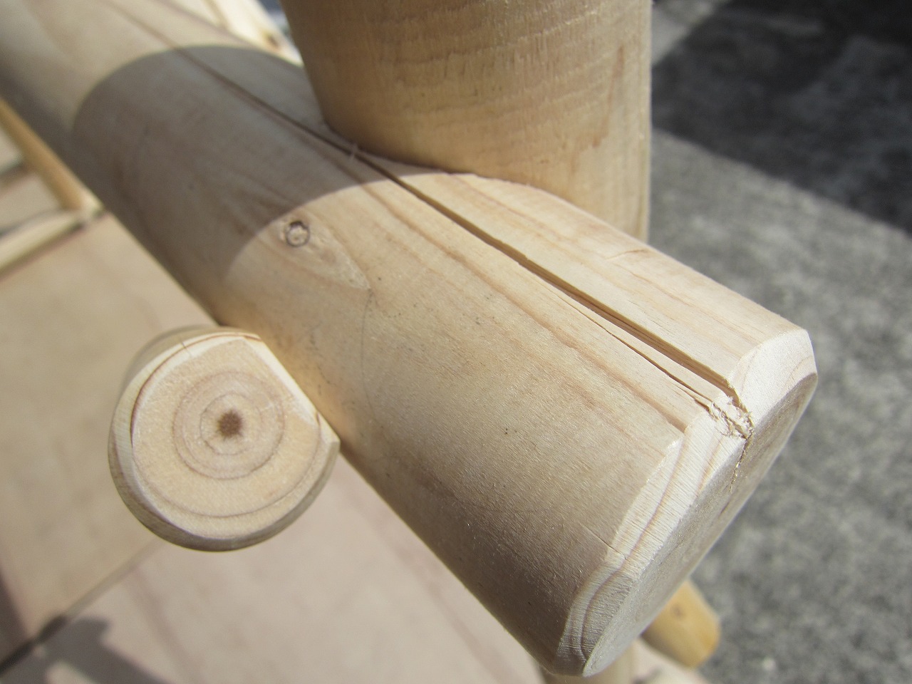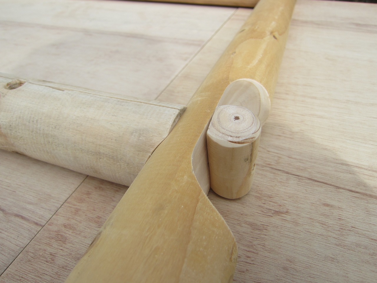 こちらで組んだ時に付いた丸棒を押し込んだ摺り跡(へこみあと)を再利用すると組みやすいです。