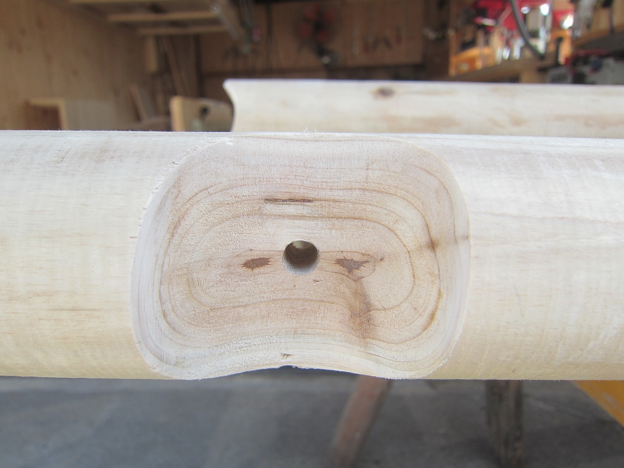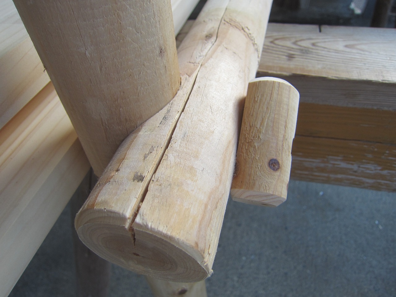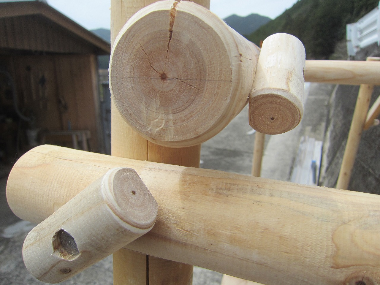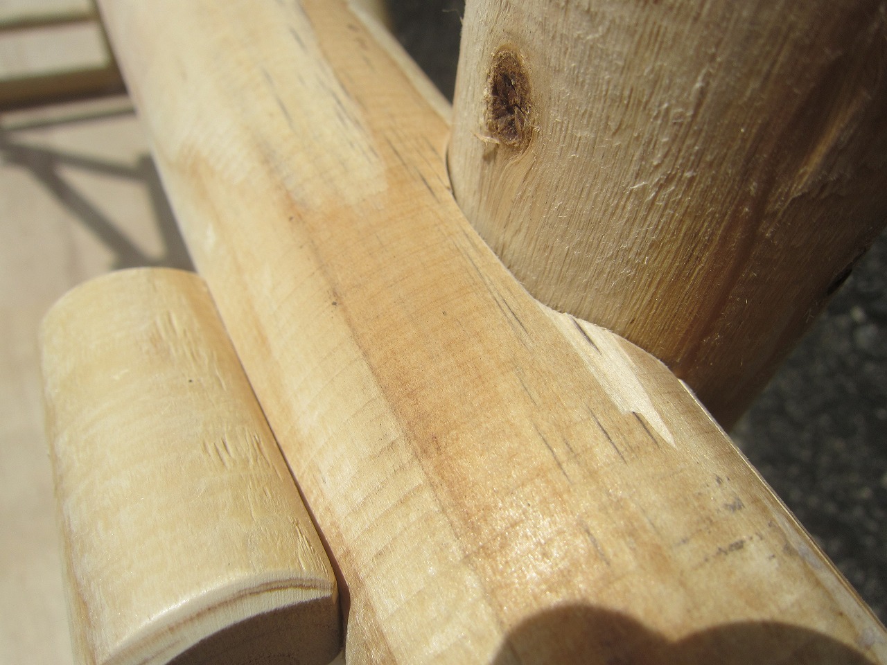 こちらで組んだ時に付いた丸棒を押し込んだ摺り跡(へこみあと)を再利用すると組みやすいです。
