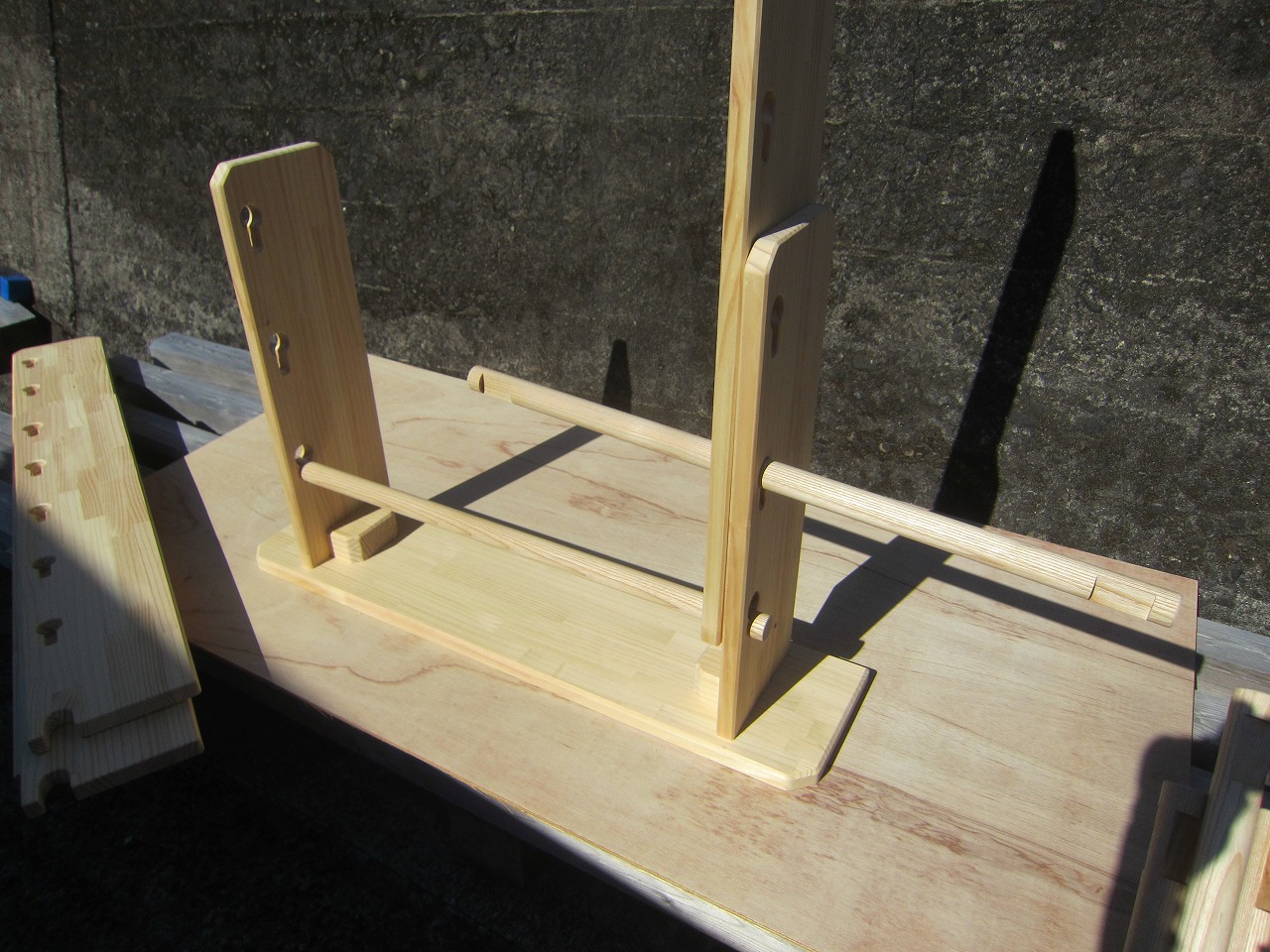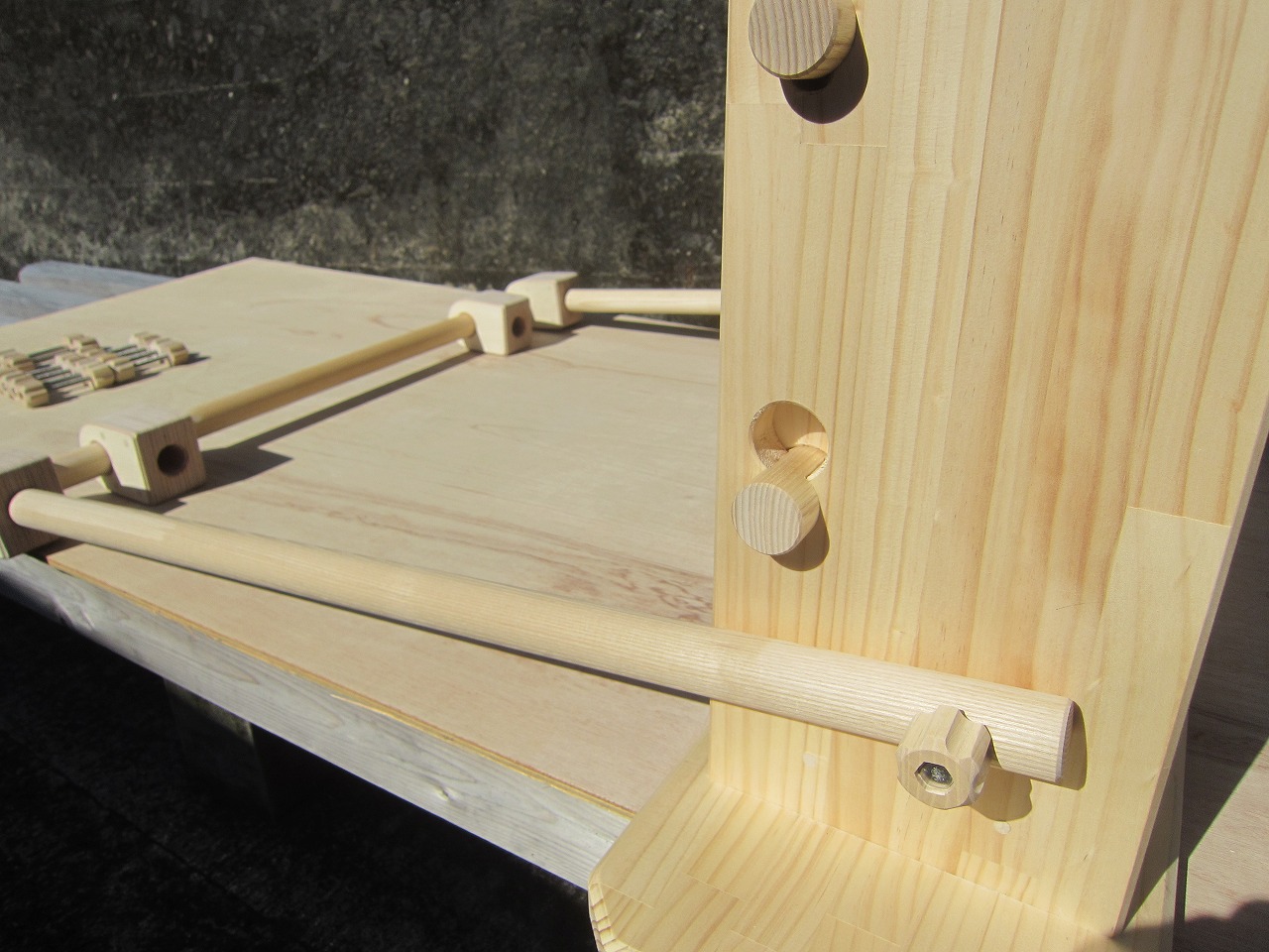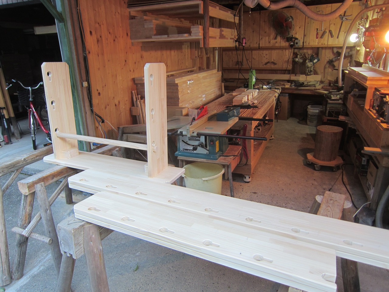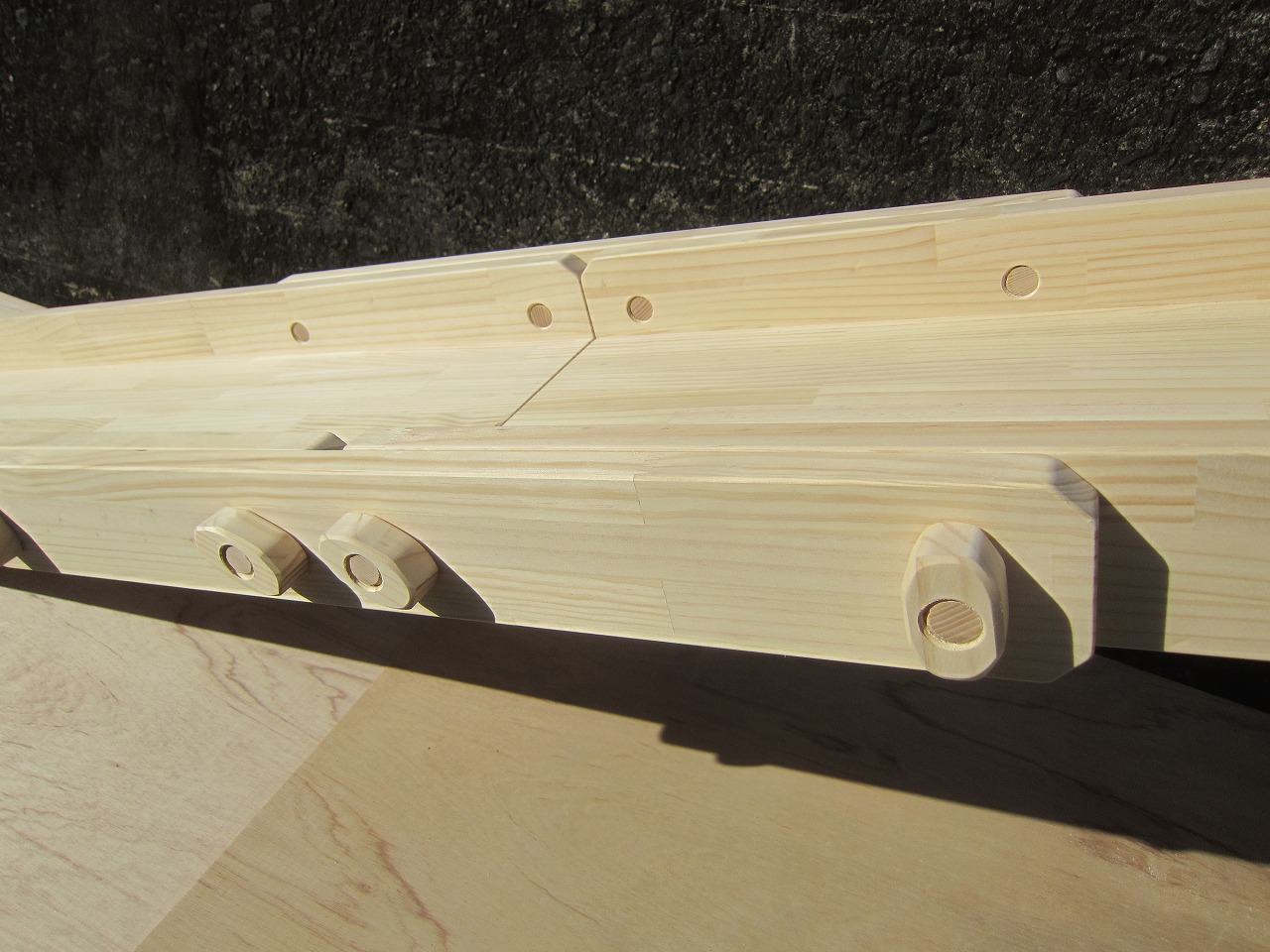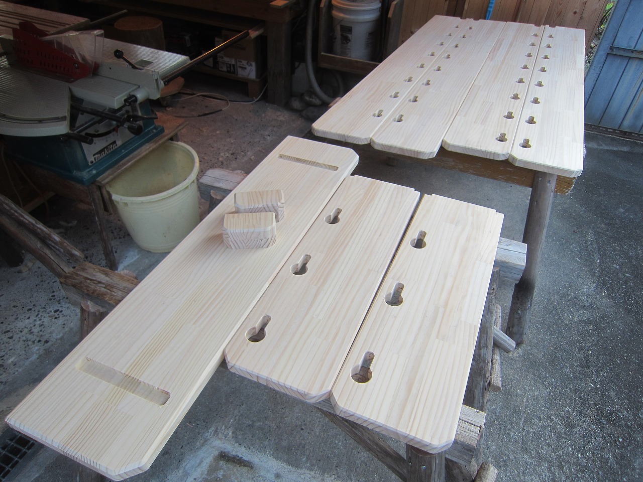 ①まずは、コミ栓を使って側板に踏み板を取り付け、ベースを組み上げます。