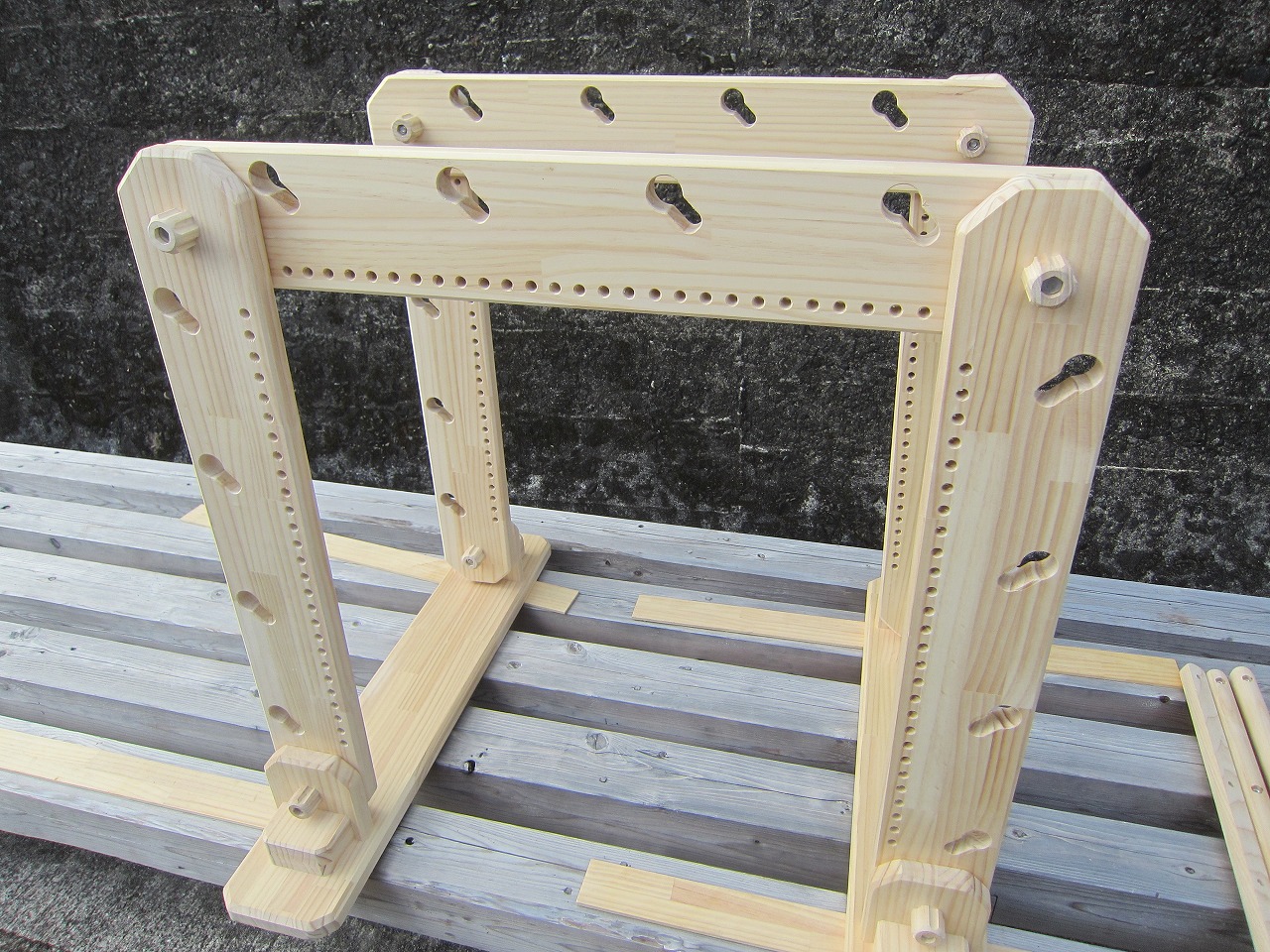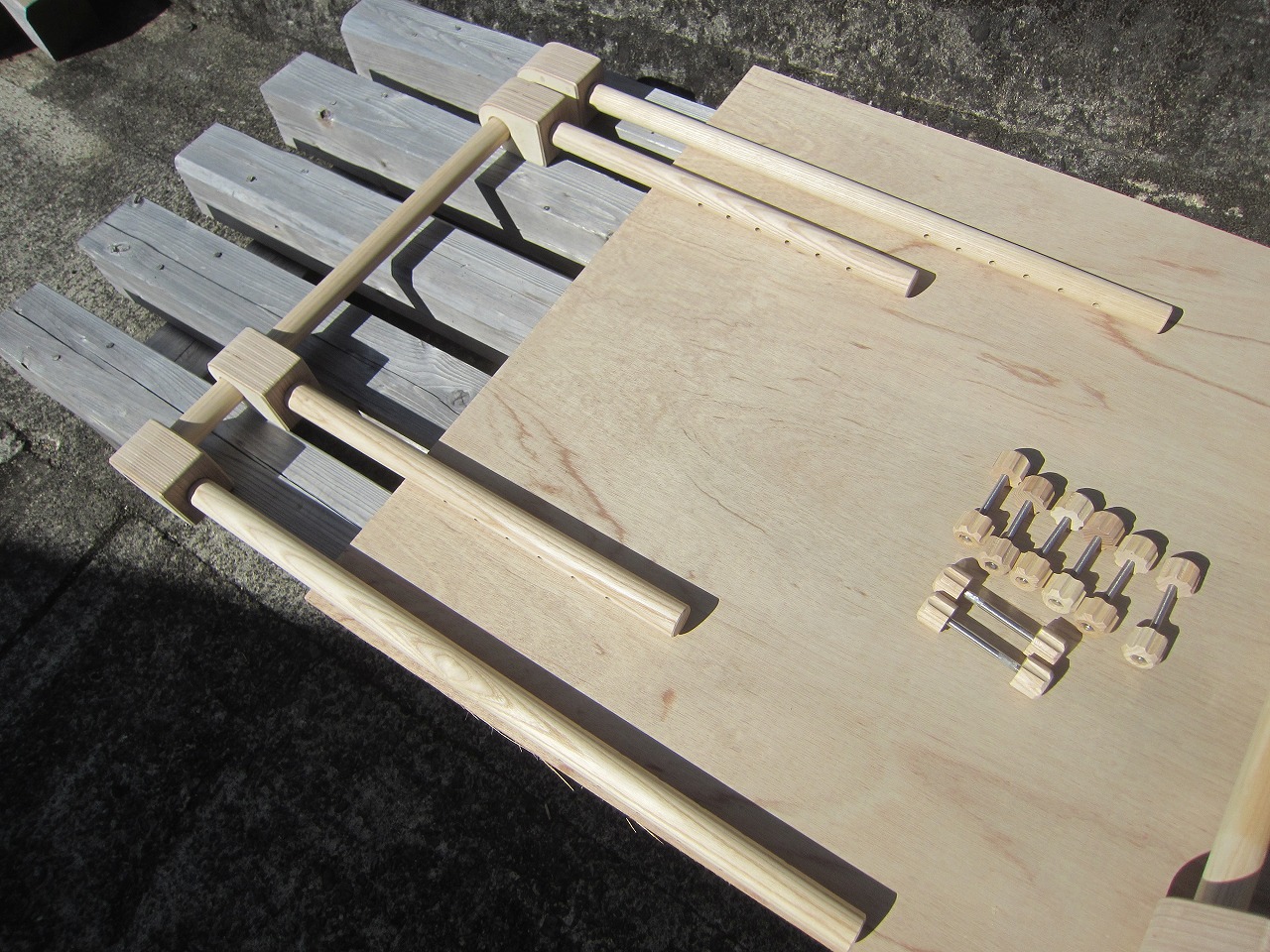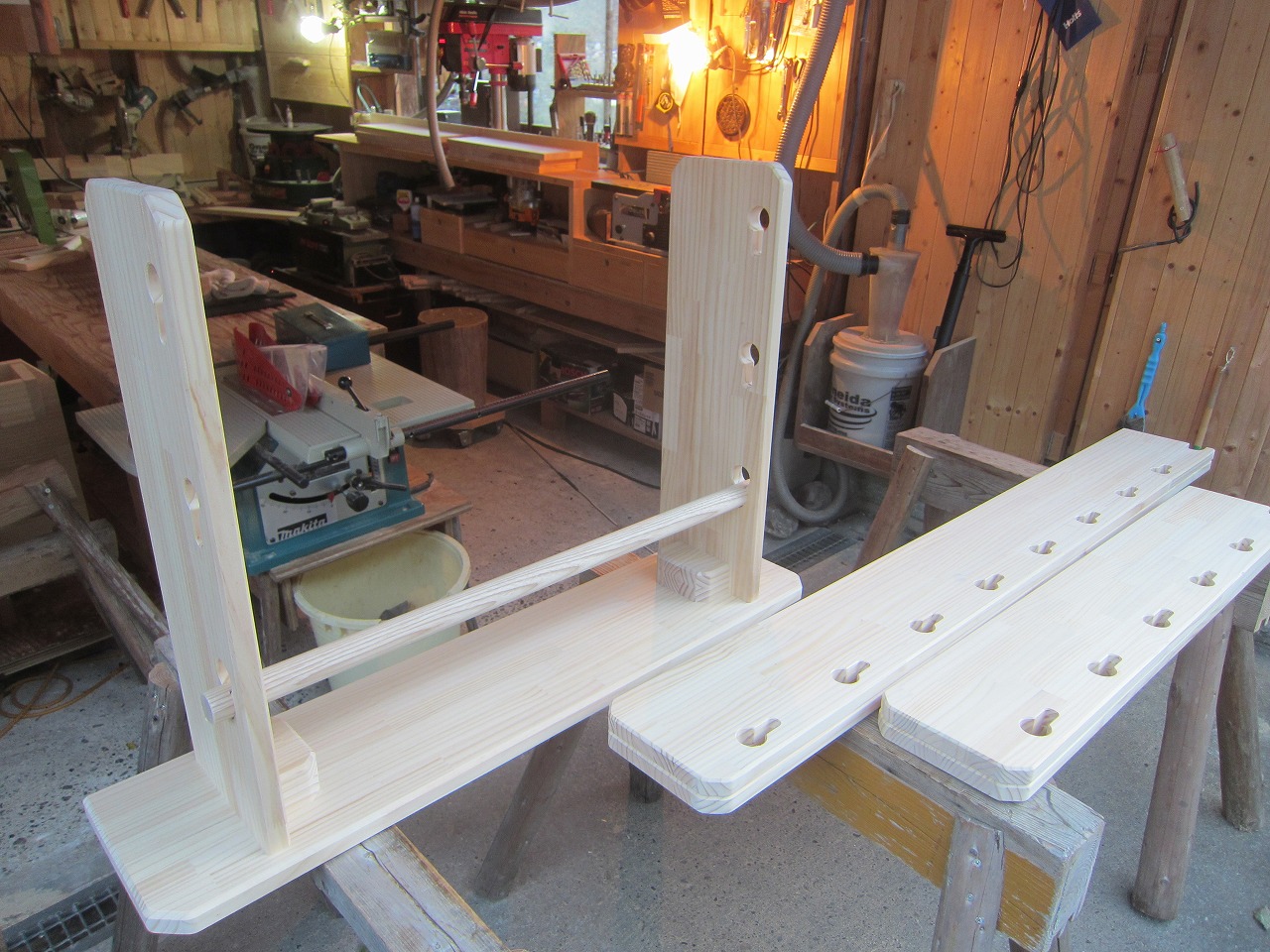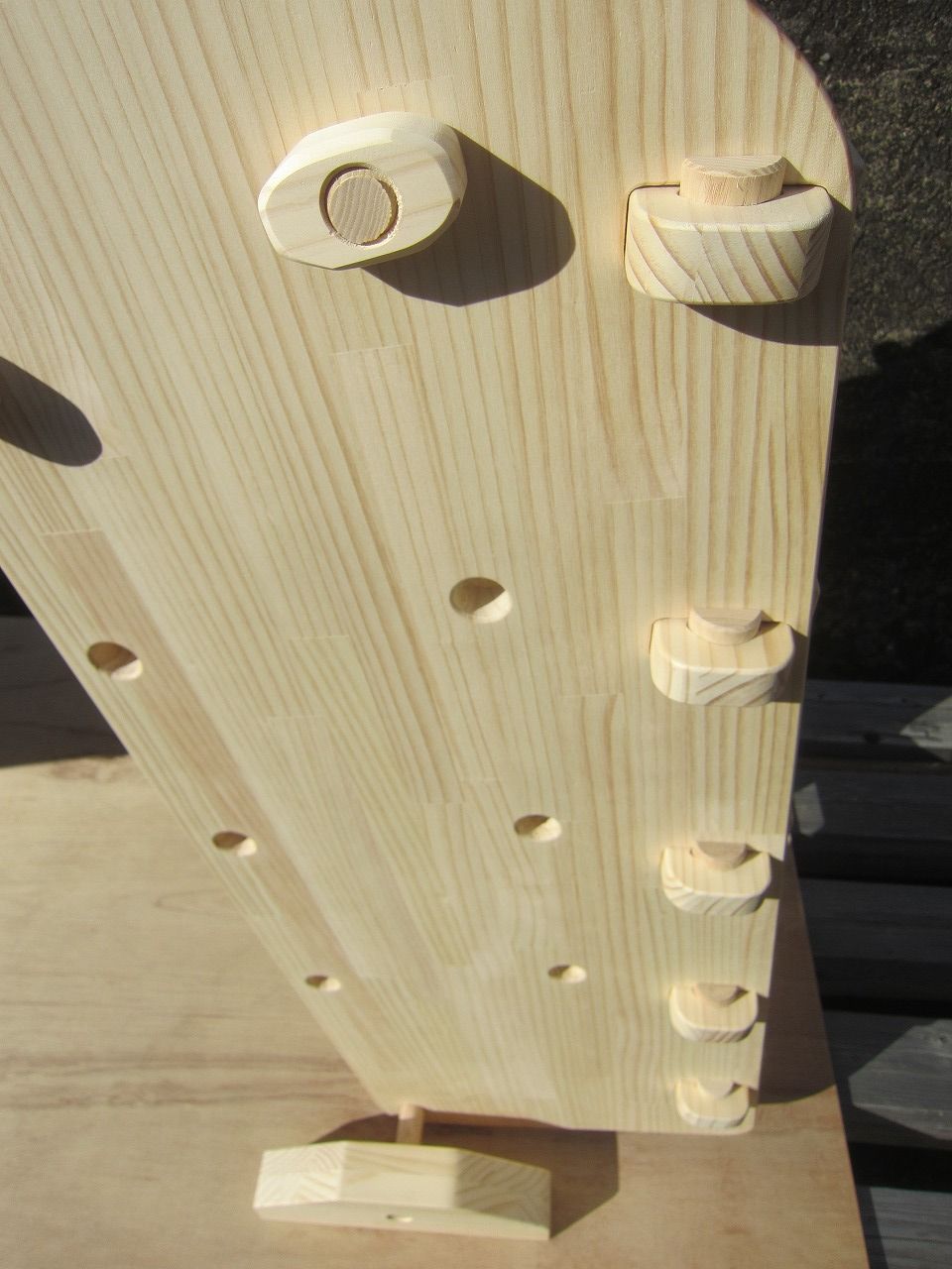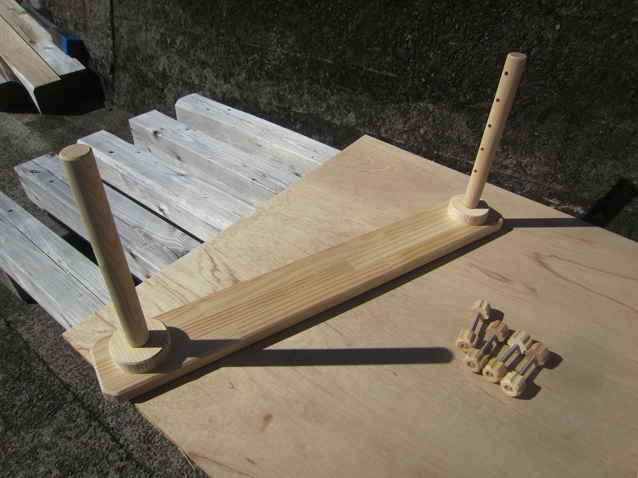 ①まずは、コミ栓を使って側板に踏み板を取り付け、ベースを組み上げます。