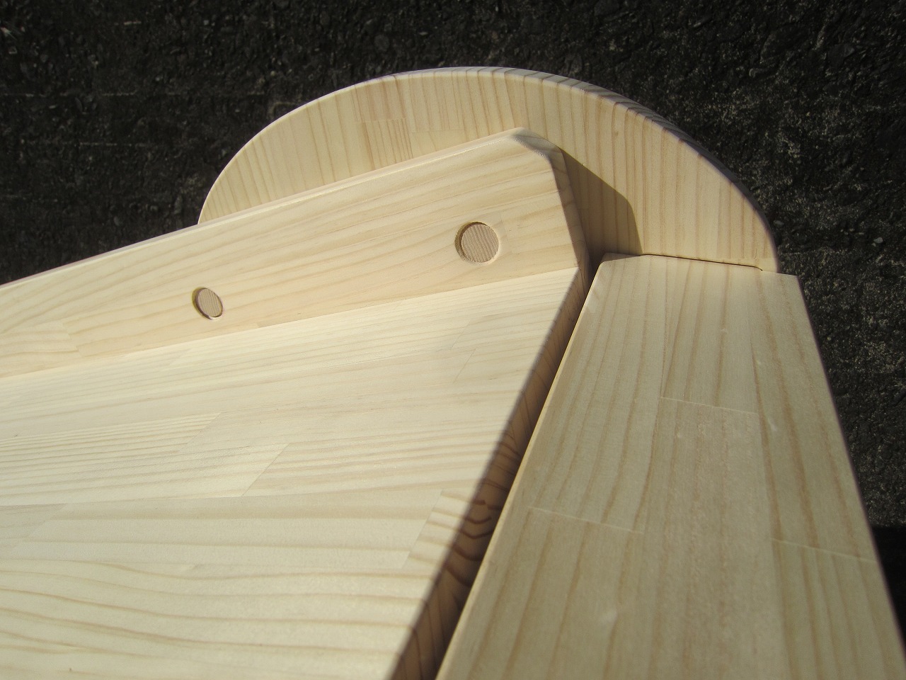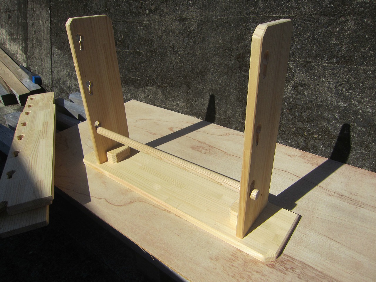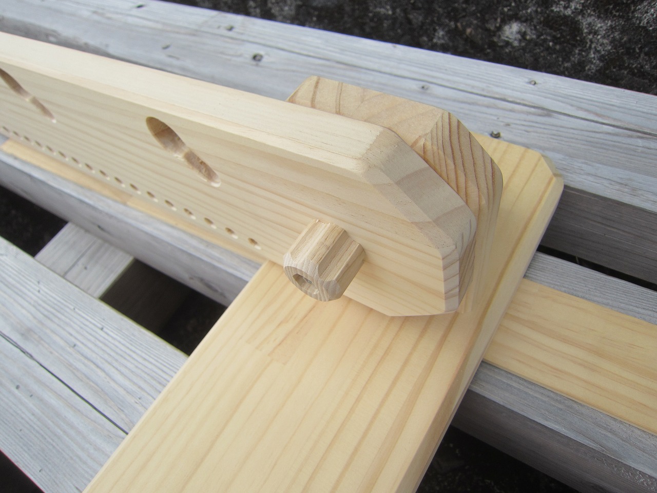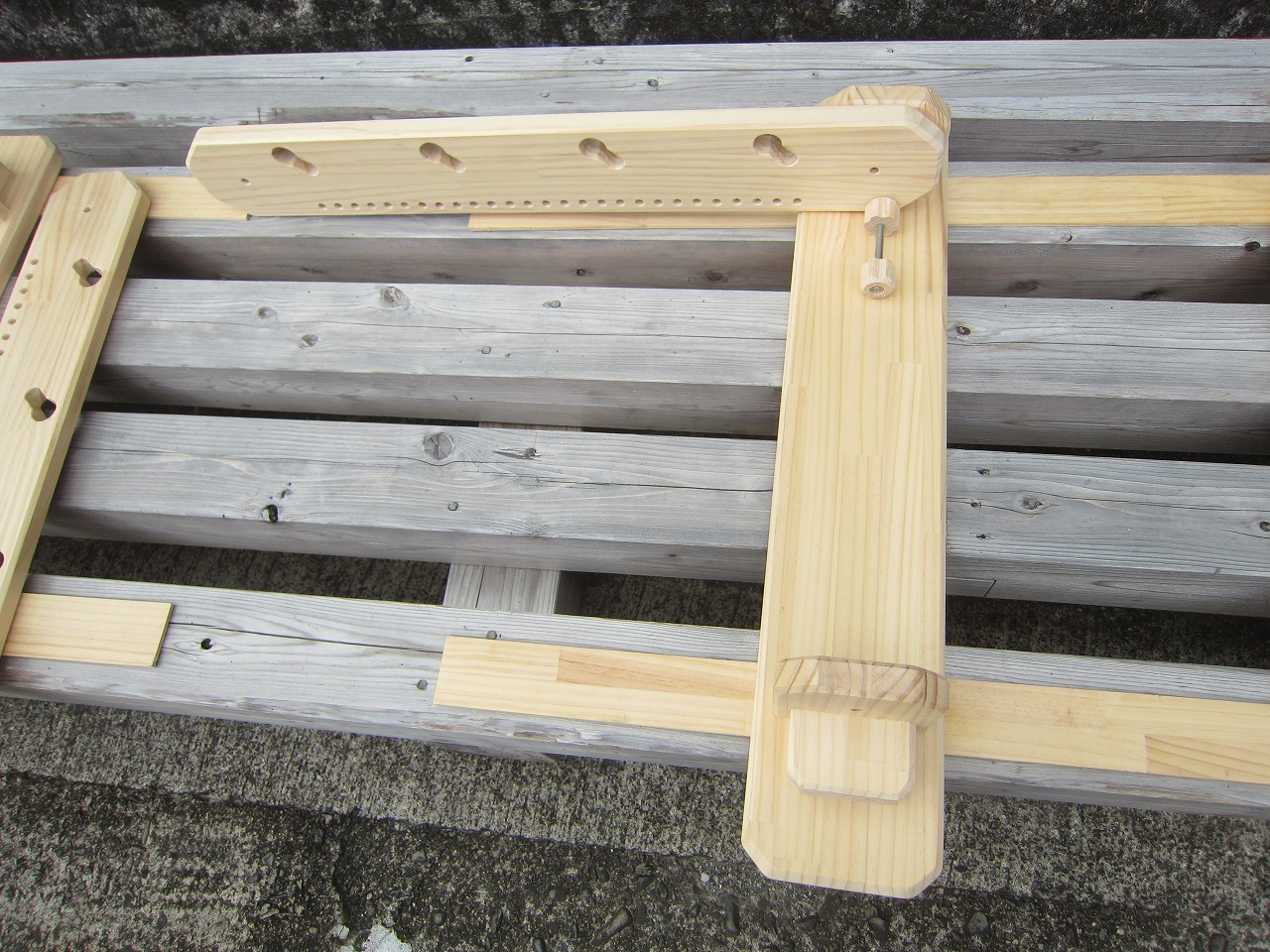①まずは、コミ栓を使って側板に踏み板を取り付け、ベースを組み上げます。