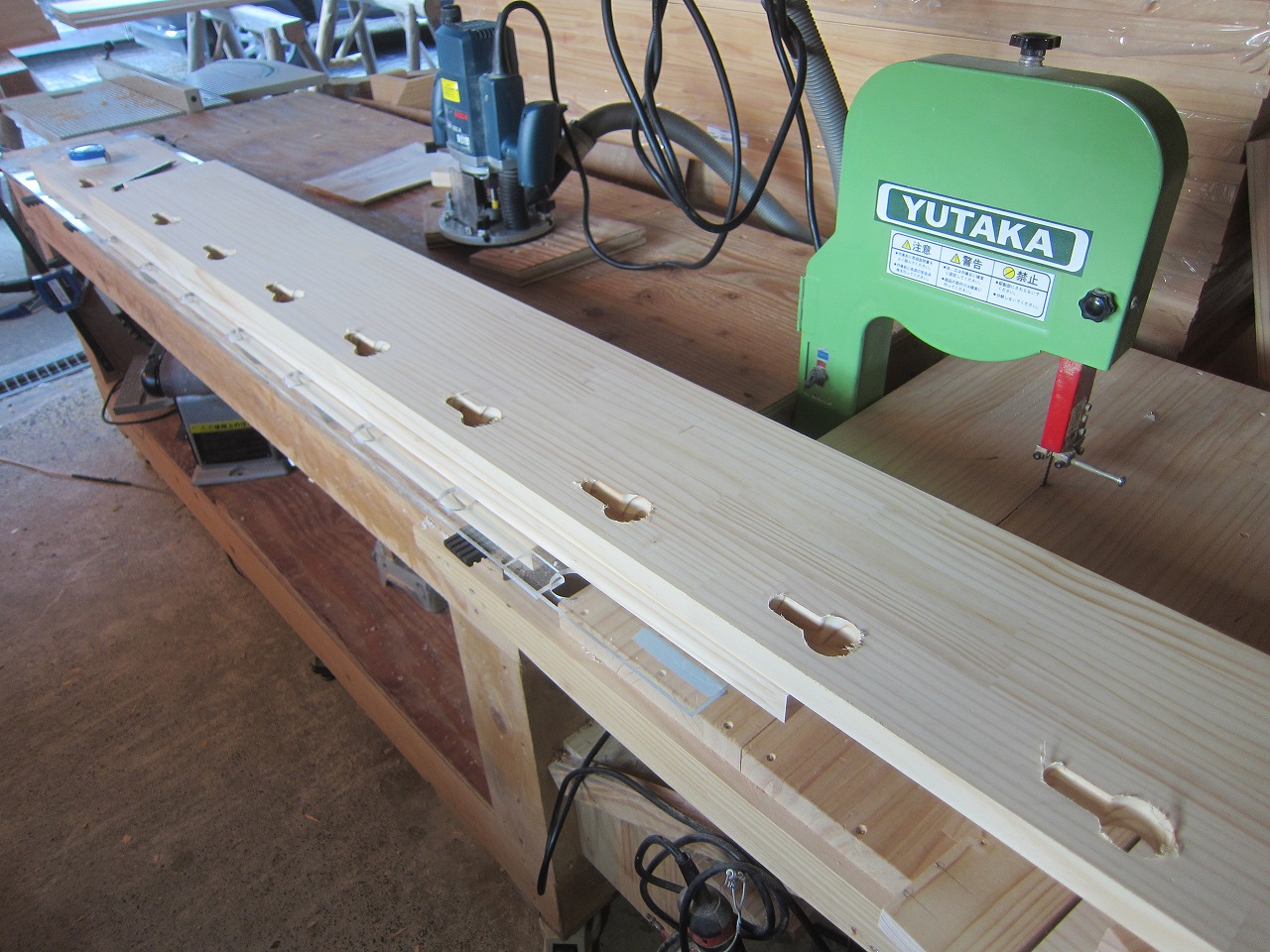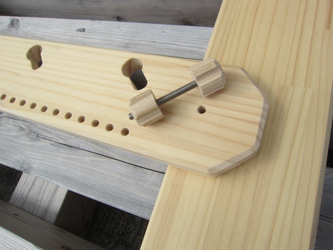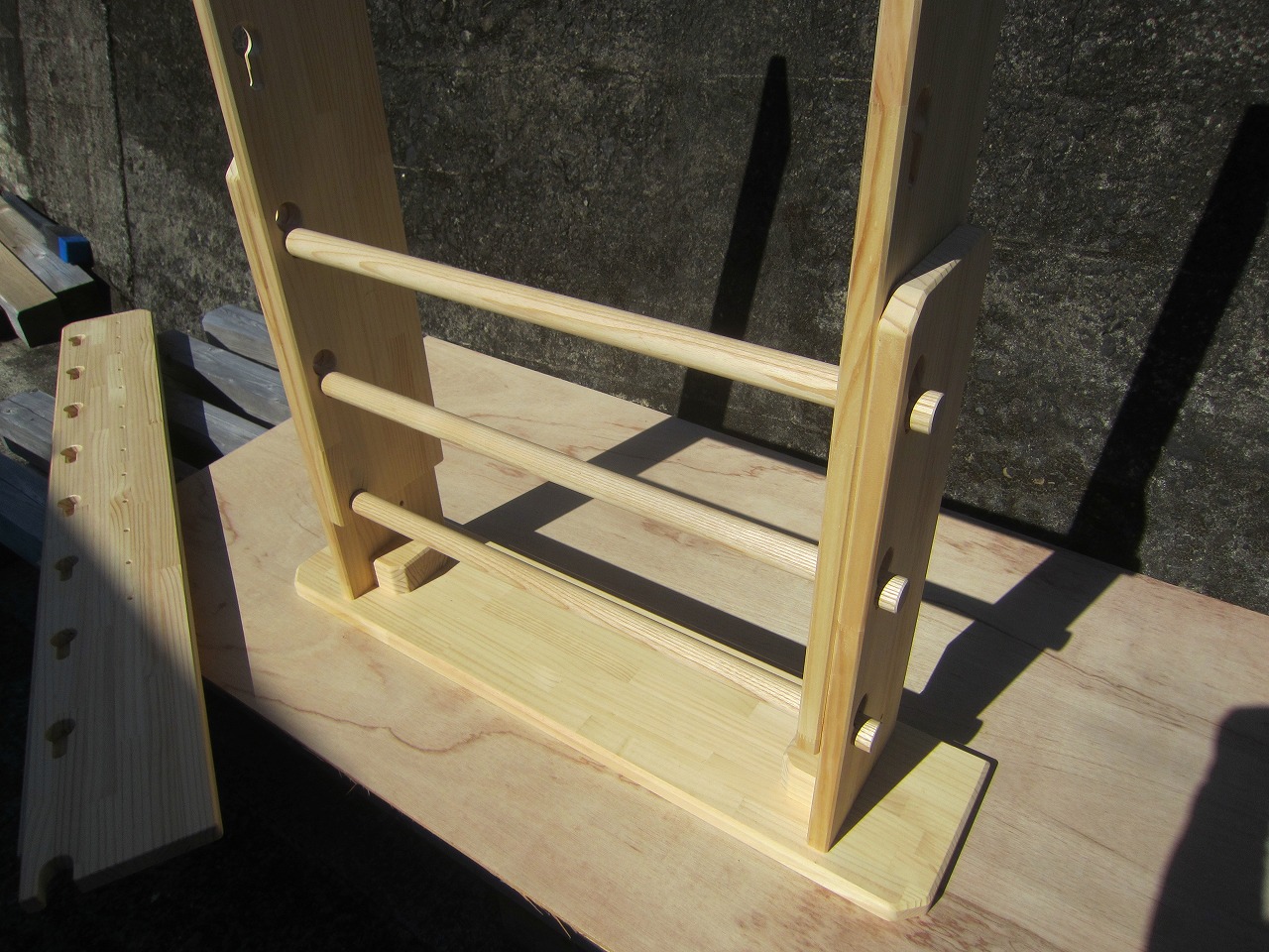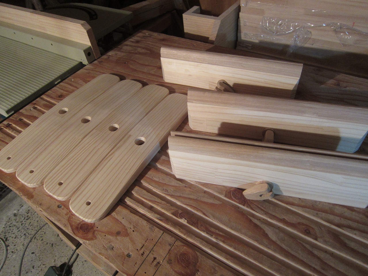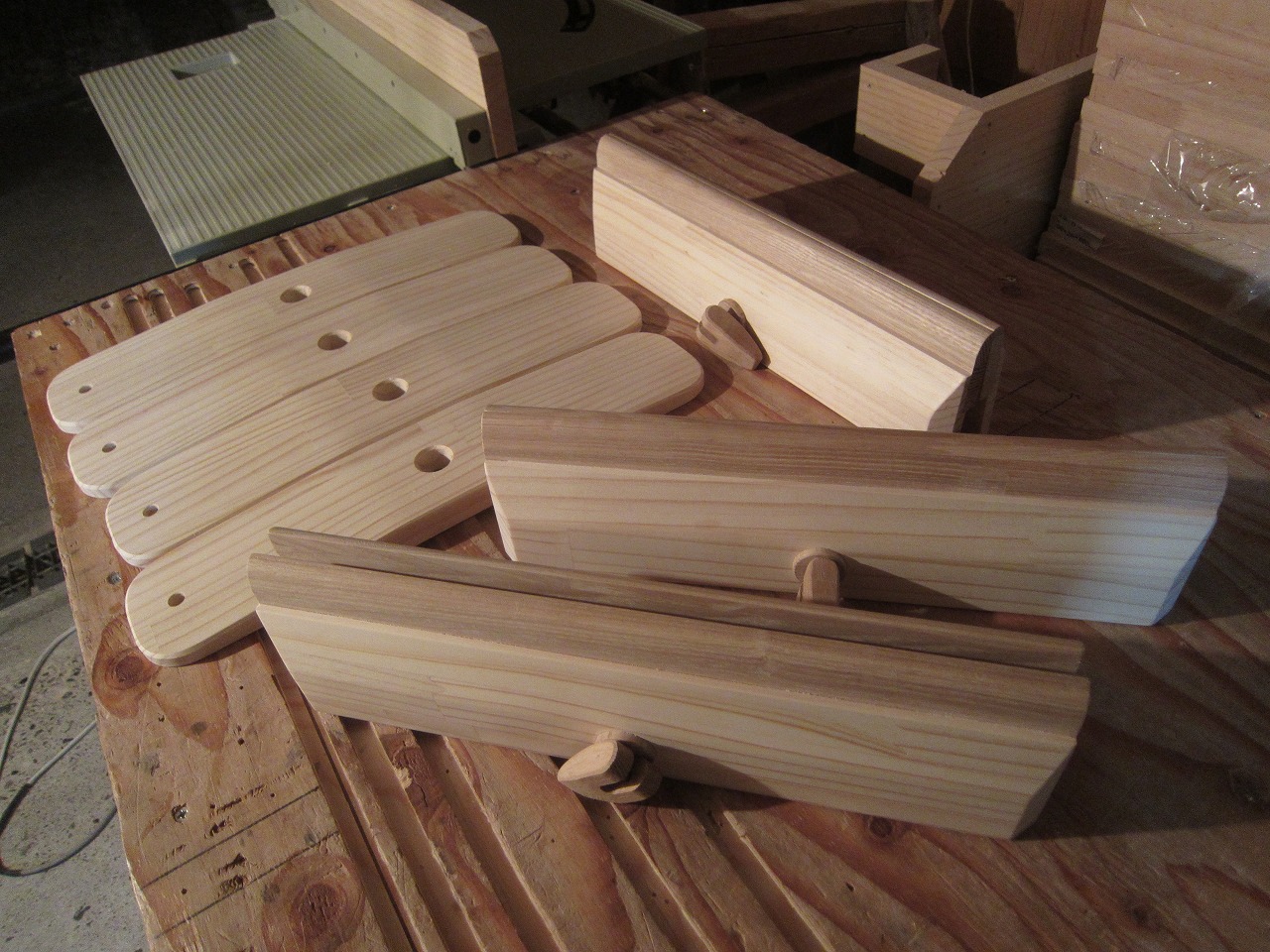 ①まずは、コミ栓を使って側板に踏み板を取り付け、ベースを組み上げます。