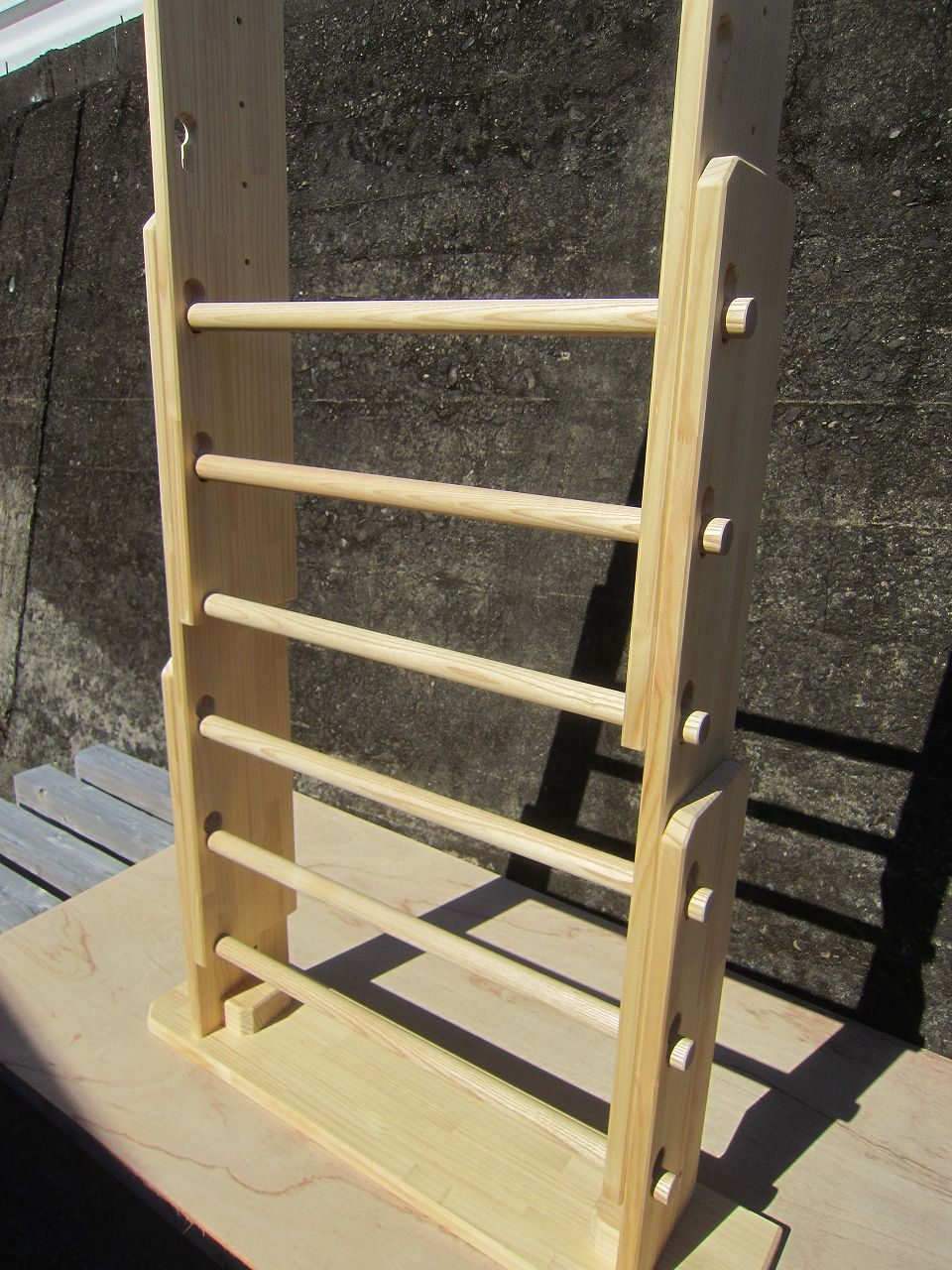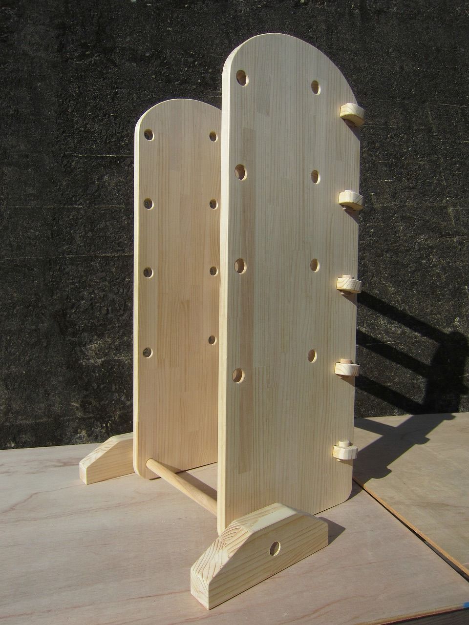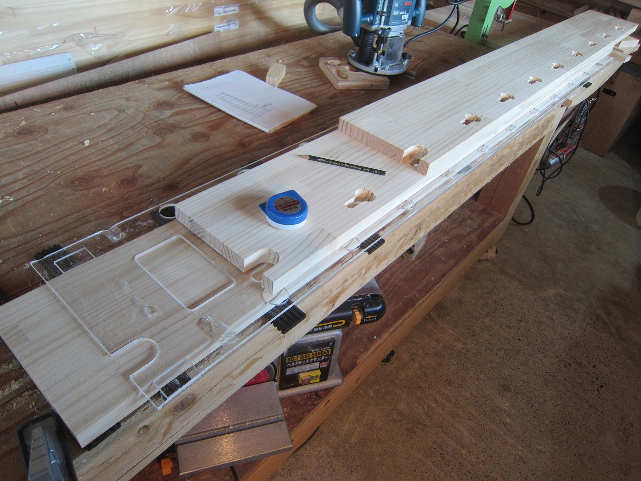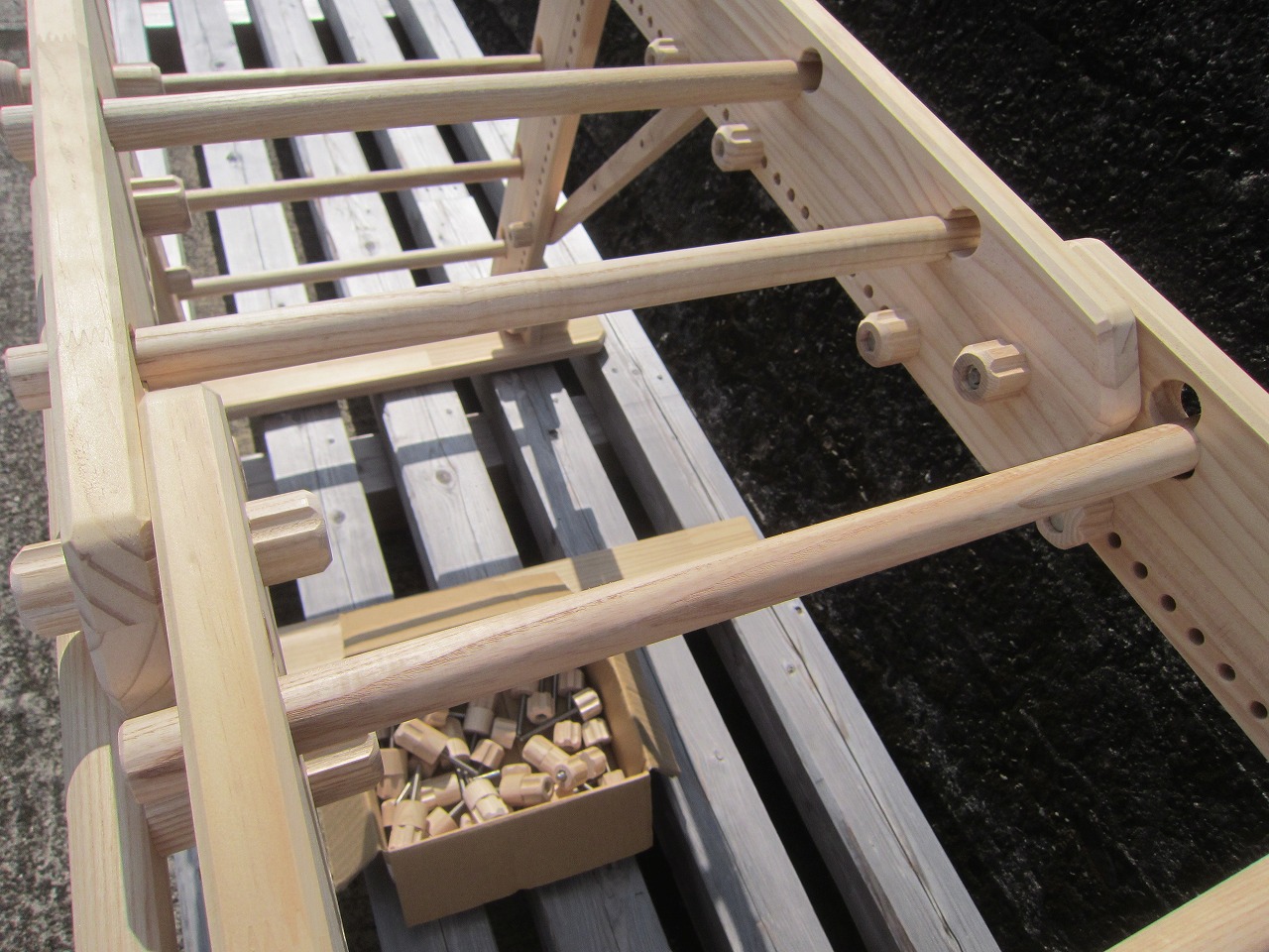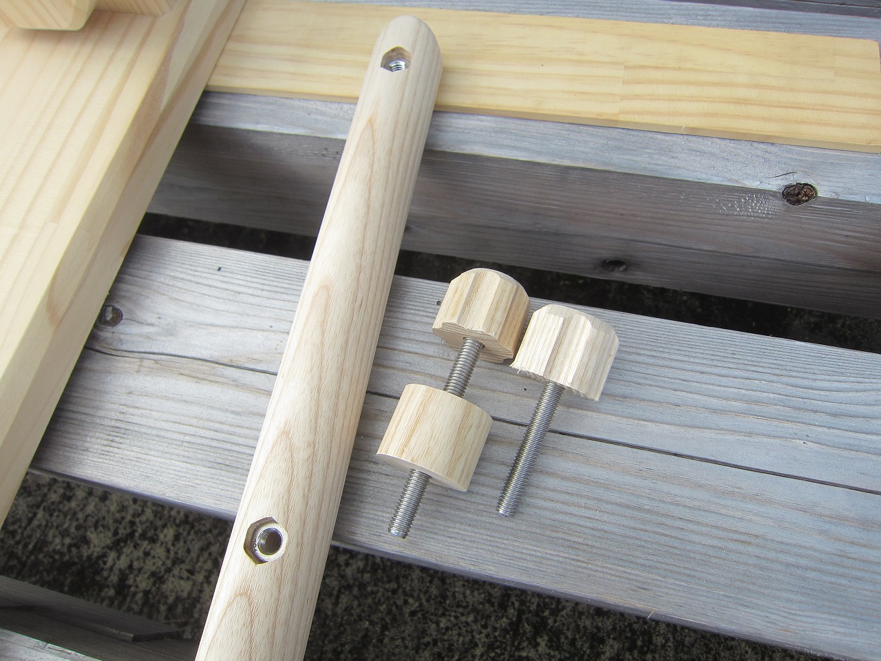①まずは、コミ栓を使って側板に踏み板を取り付け、ベースを組み上げます。