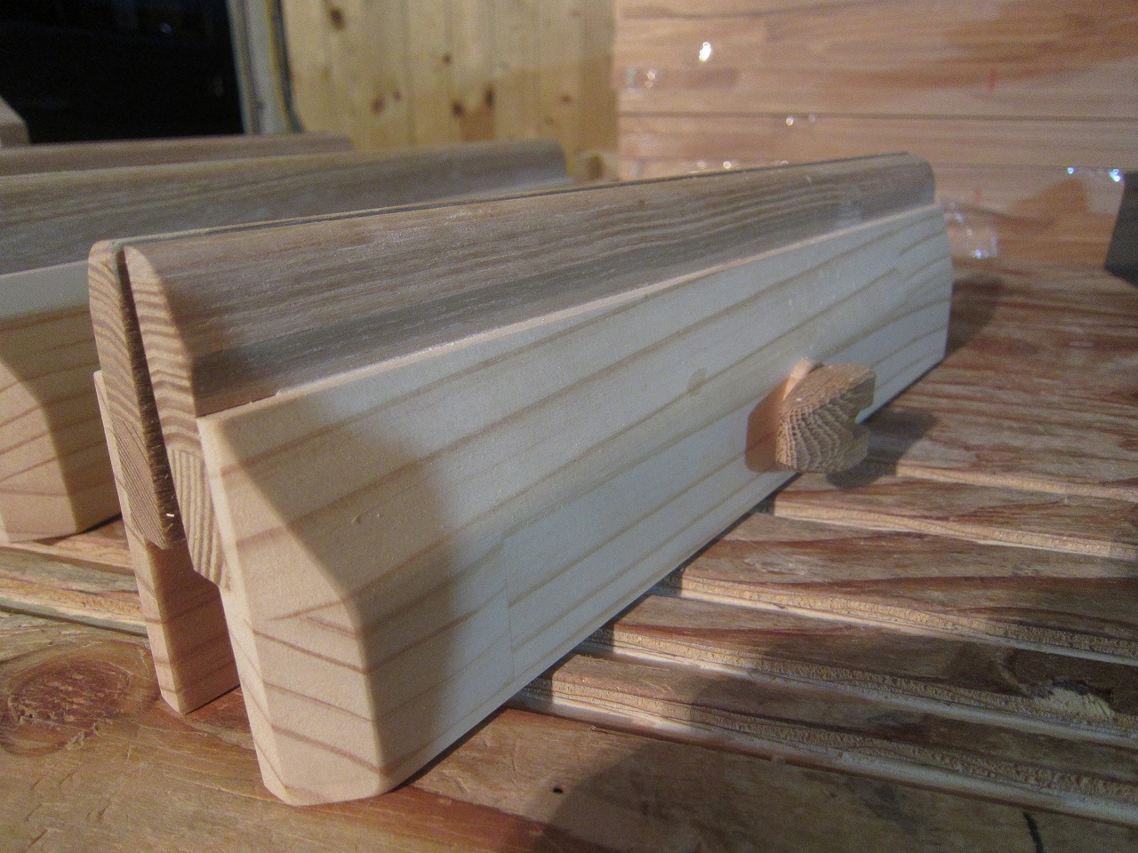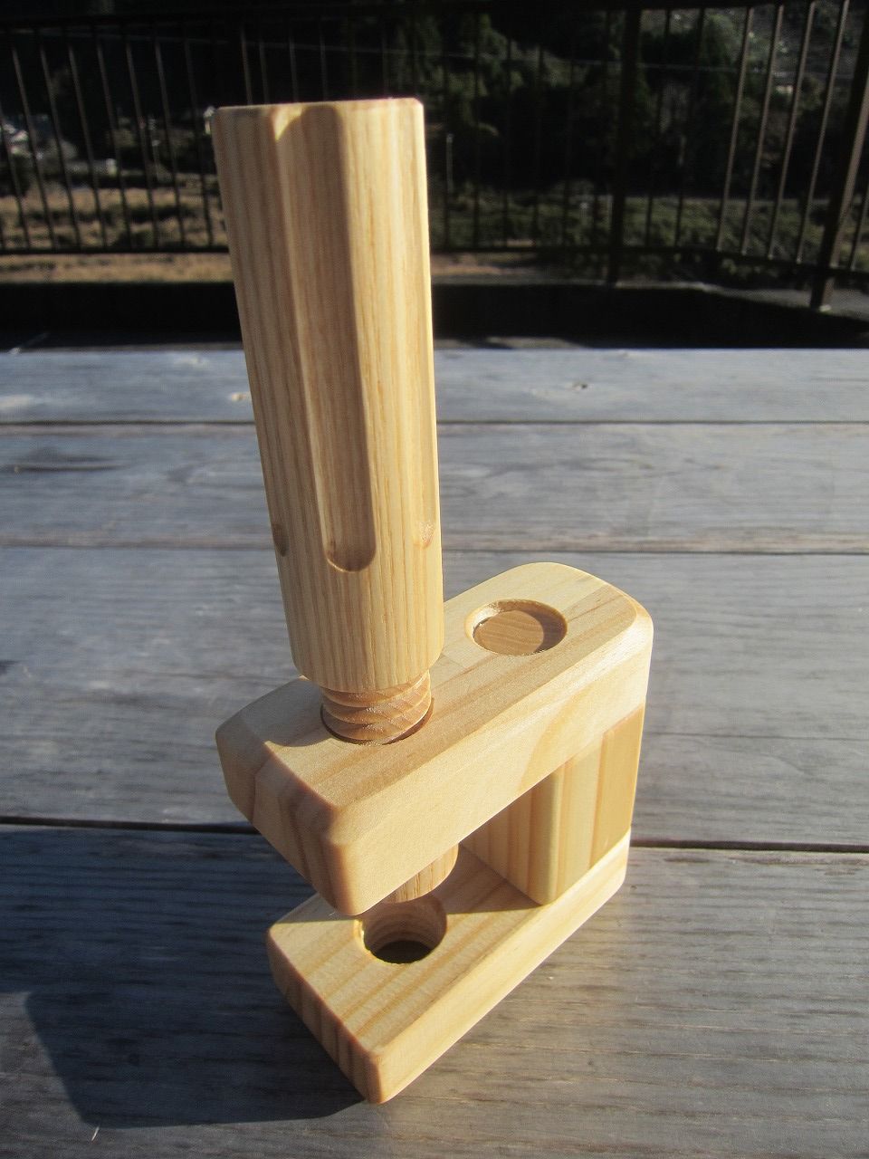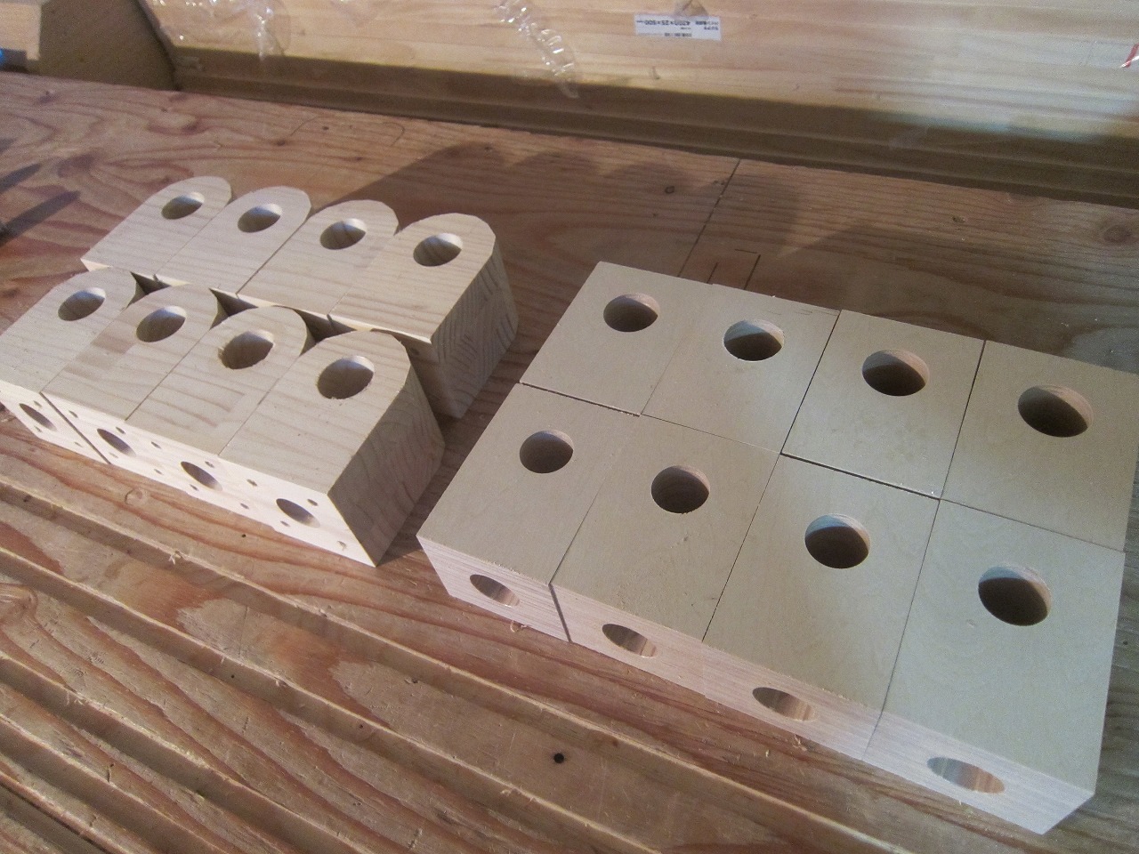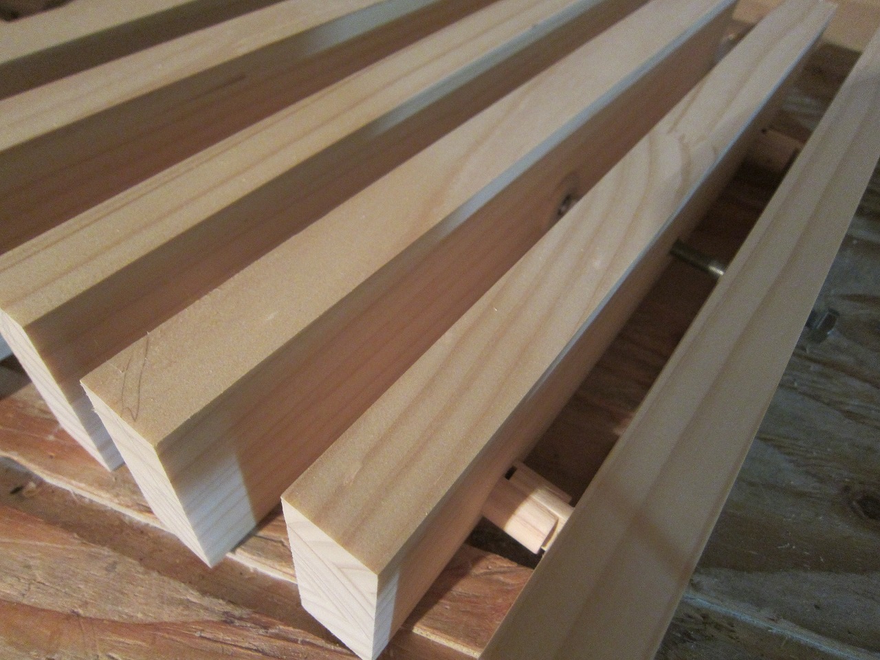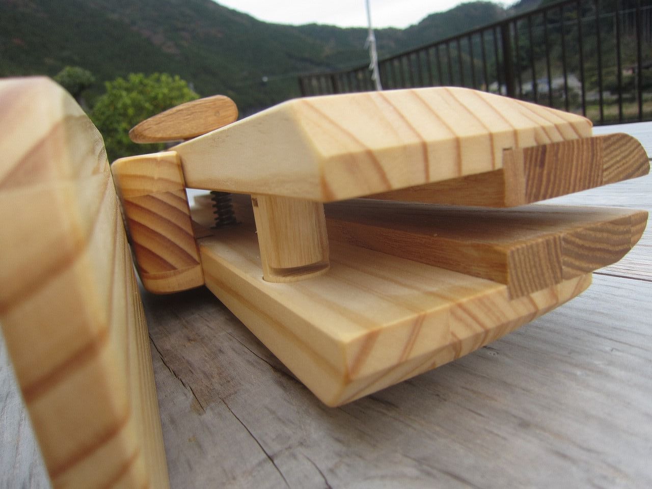 ①まずは、コミ栓を使って側板に踏み板を取り付け、ベースを組み上げます。