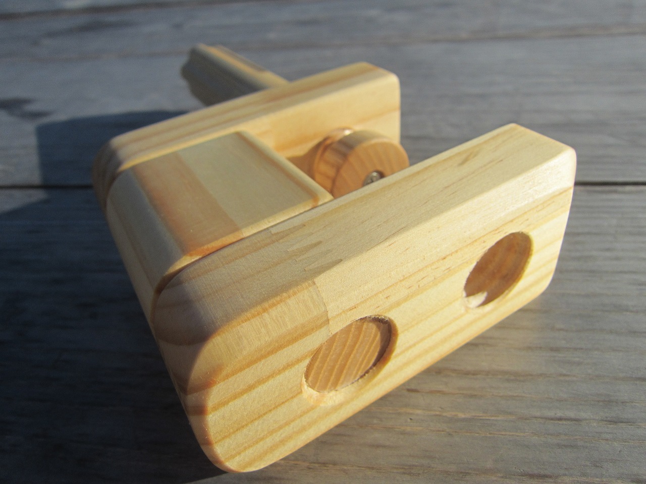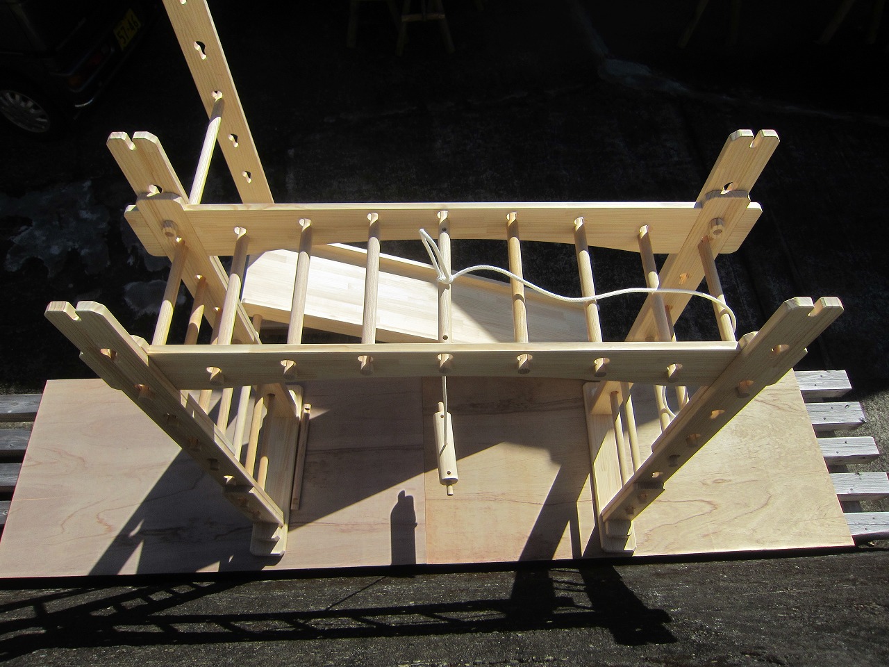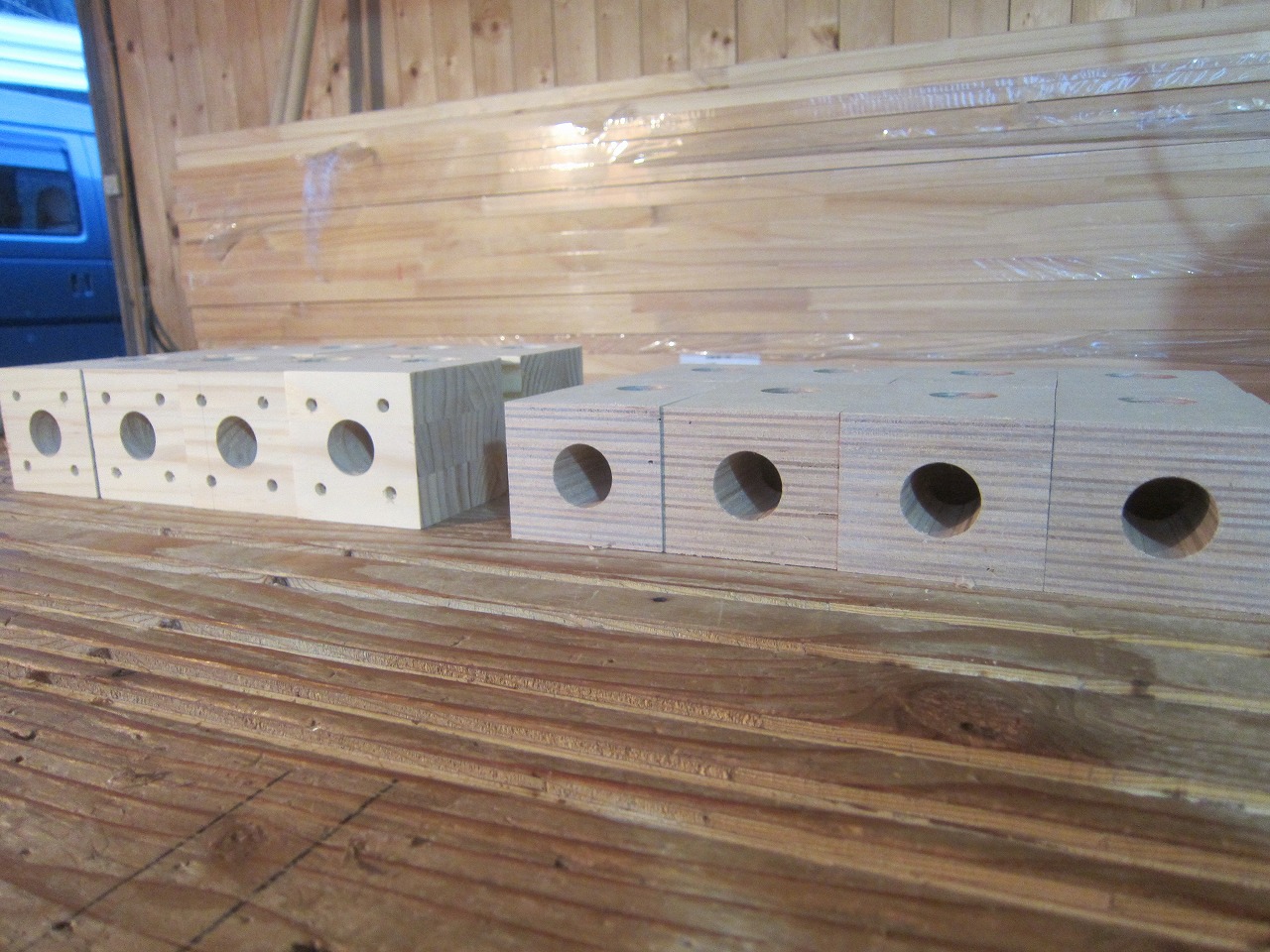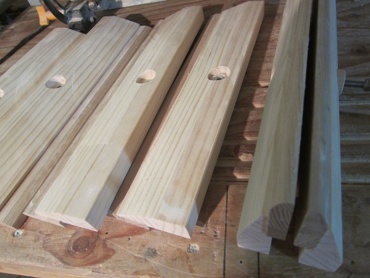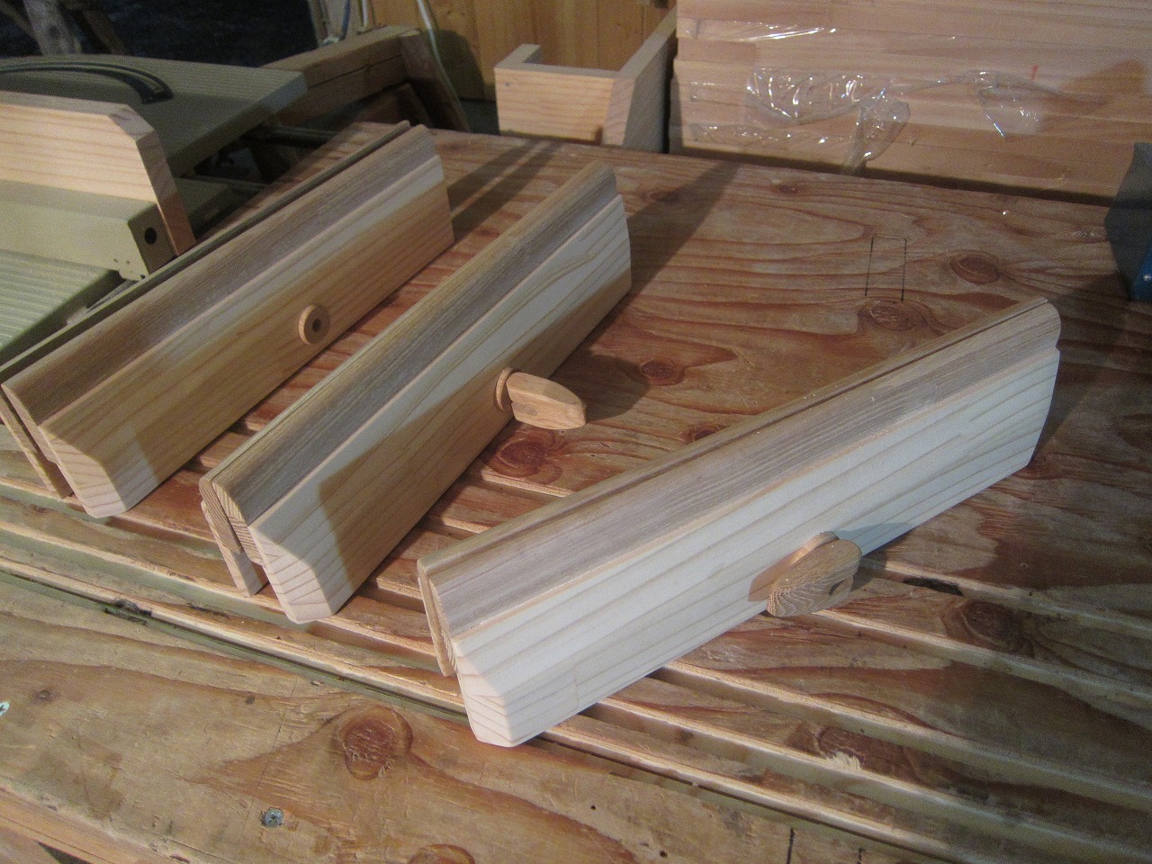 ①まずは、コミ栓を使って側板に踏み板を取り付け、ベースを組み上げます。