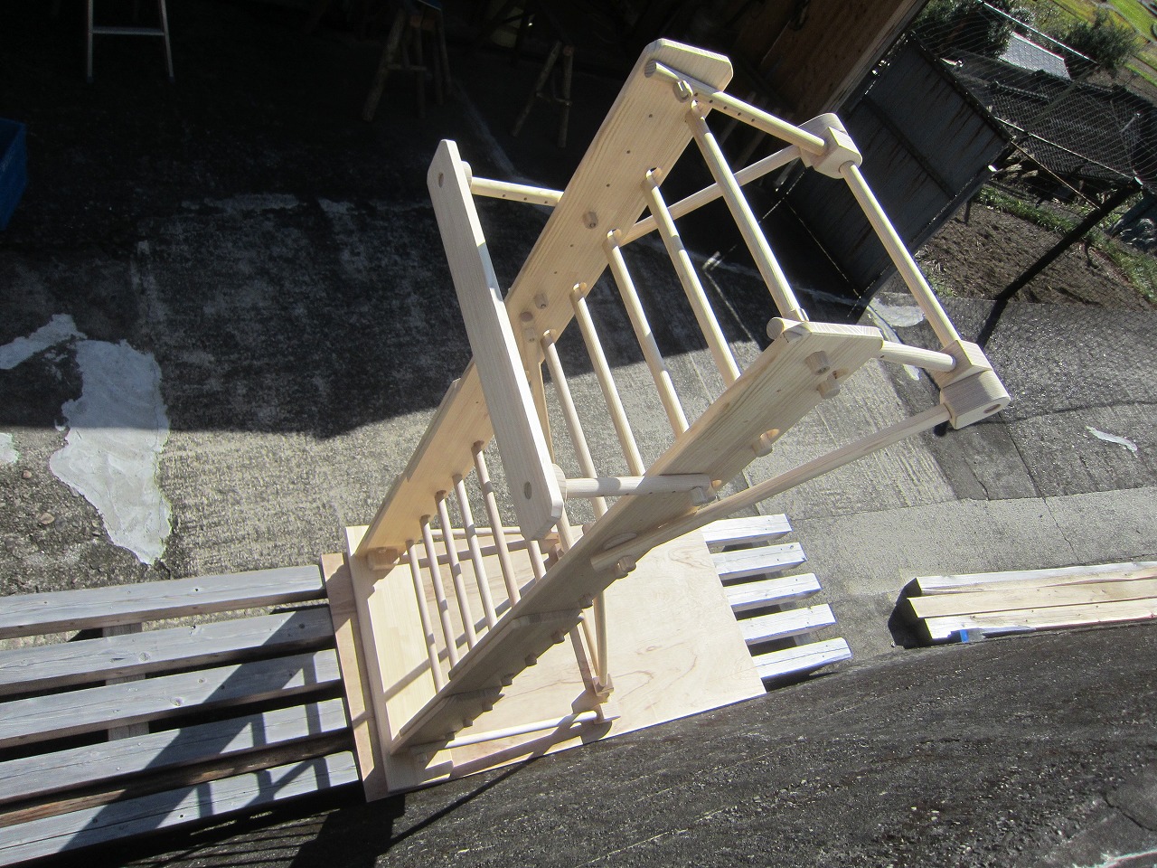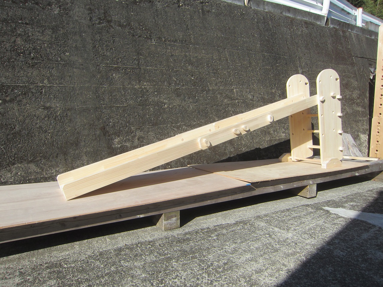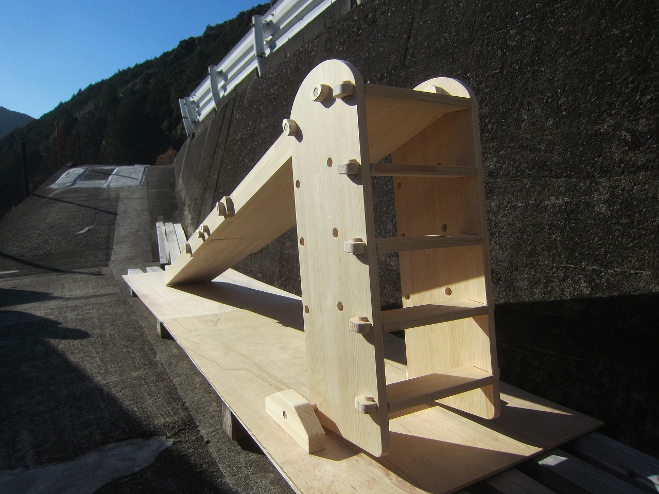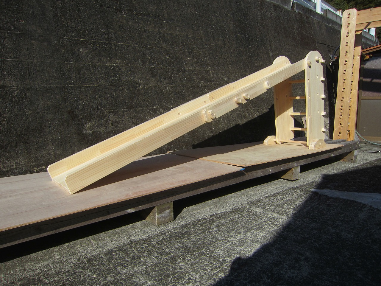 金物など一切使わずに、全長約2800mmのロングすべり台を組み立てて行きます。