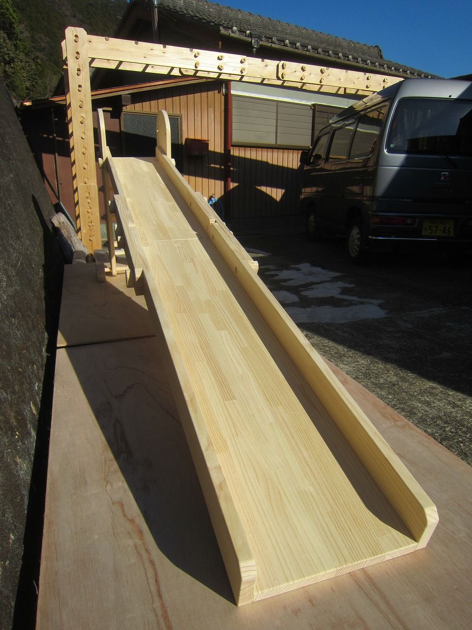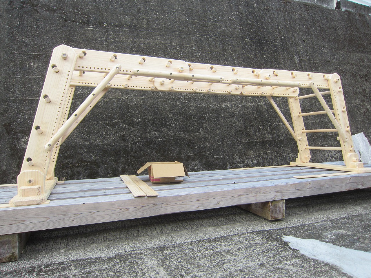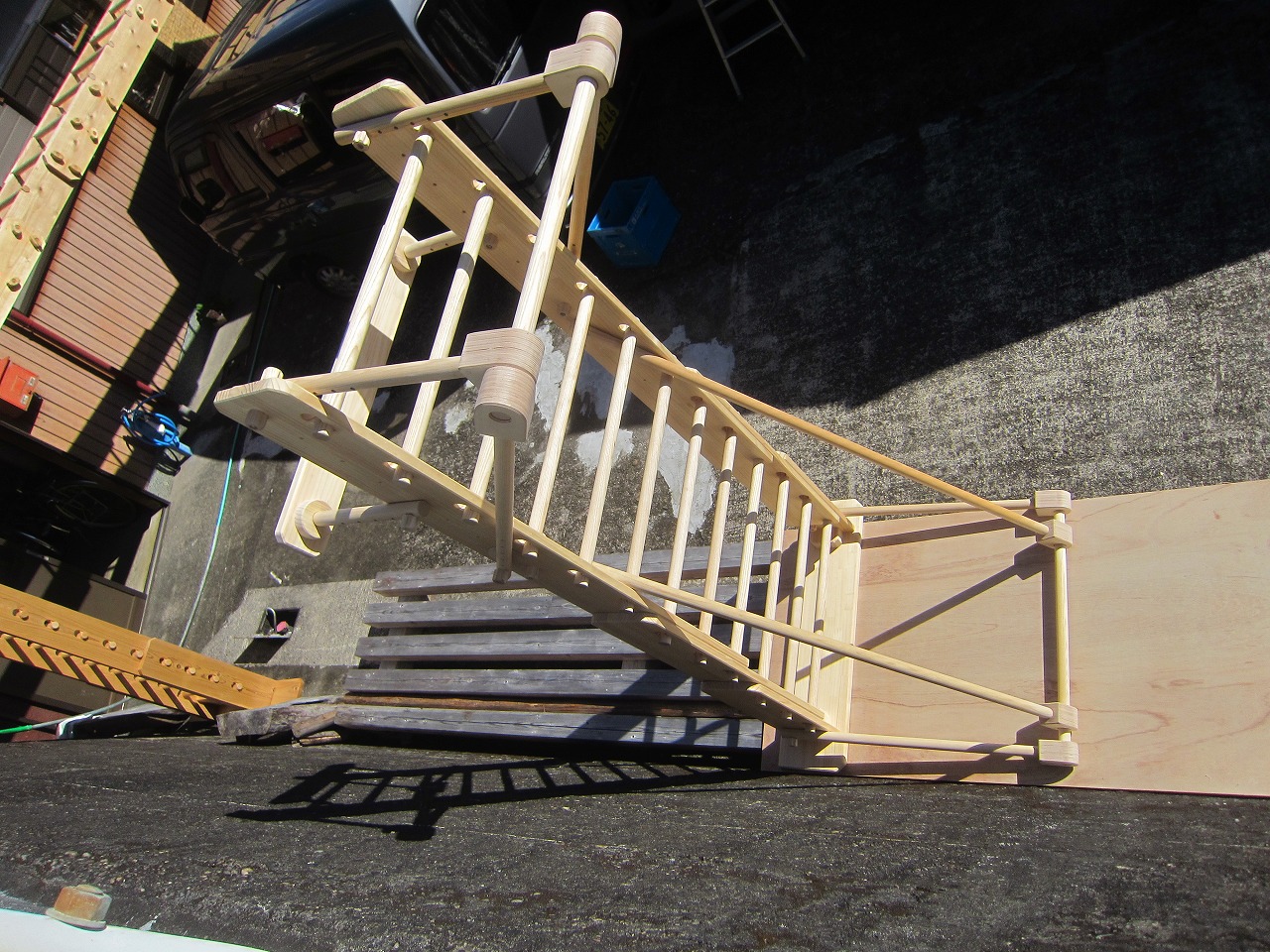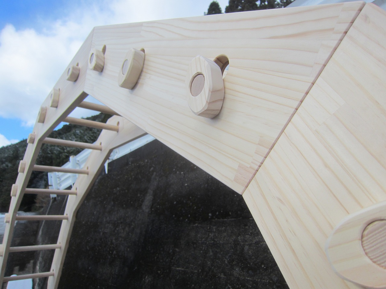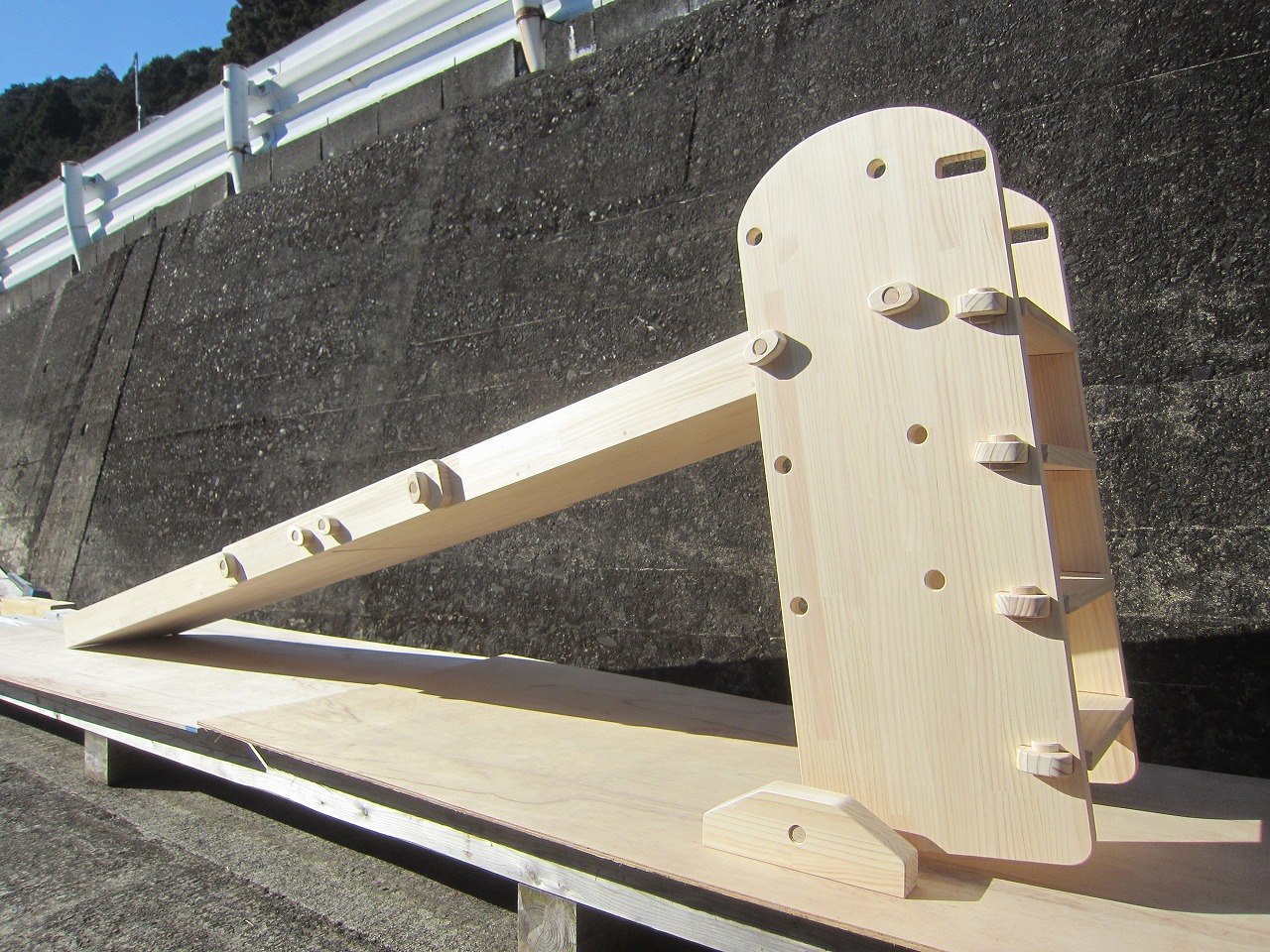 金物など一切使わずに、全長約2800mmのロングすべり台を組み立てて行きます。