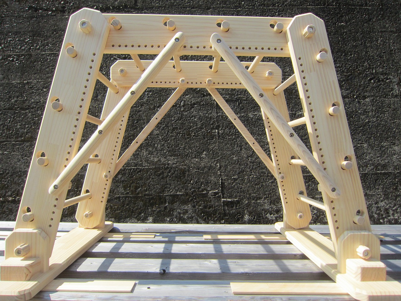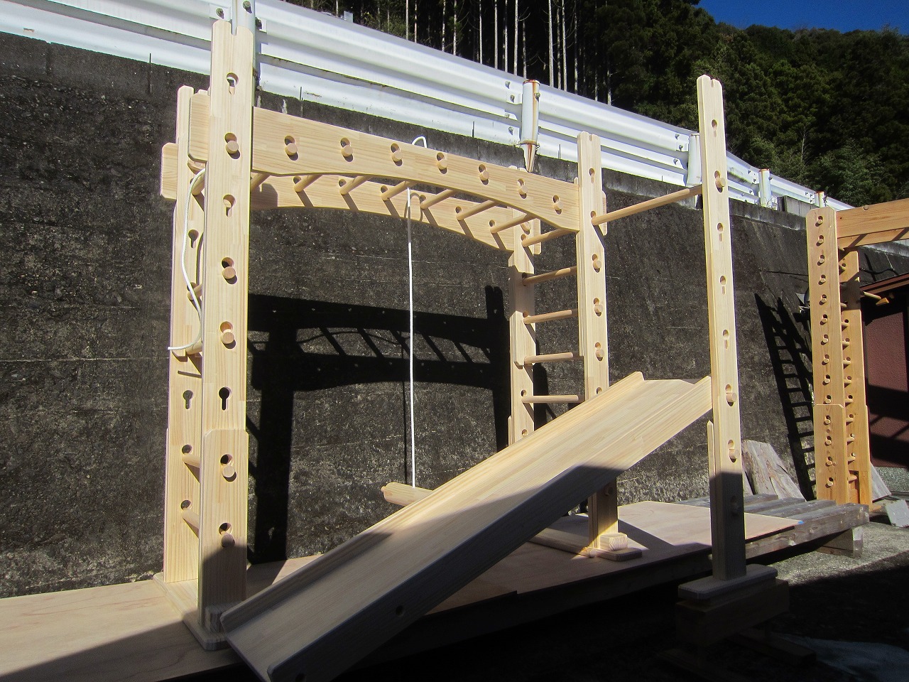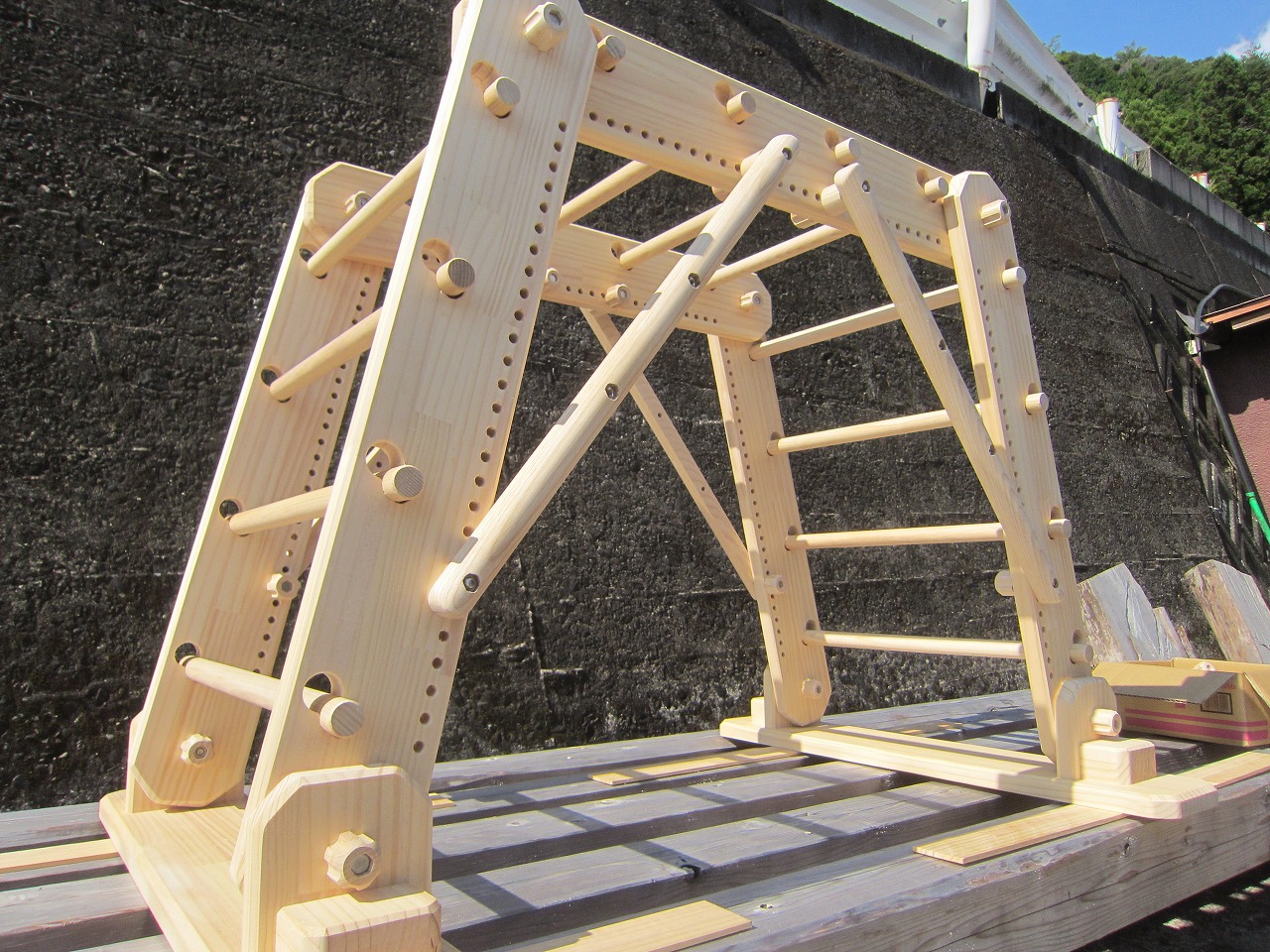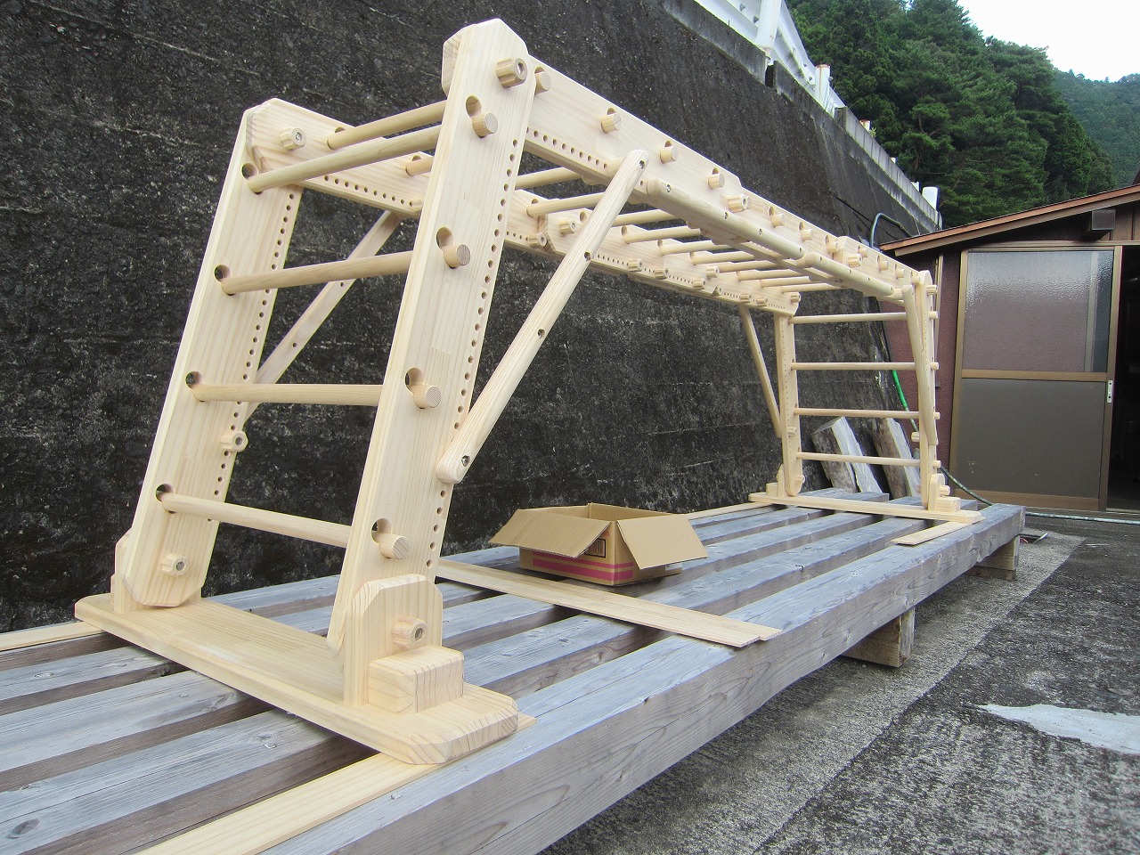 金物など一切使わずに、全長約2800mmのロングすべり台を組み立てて行きます。