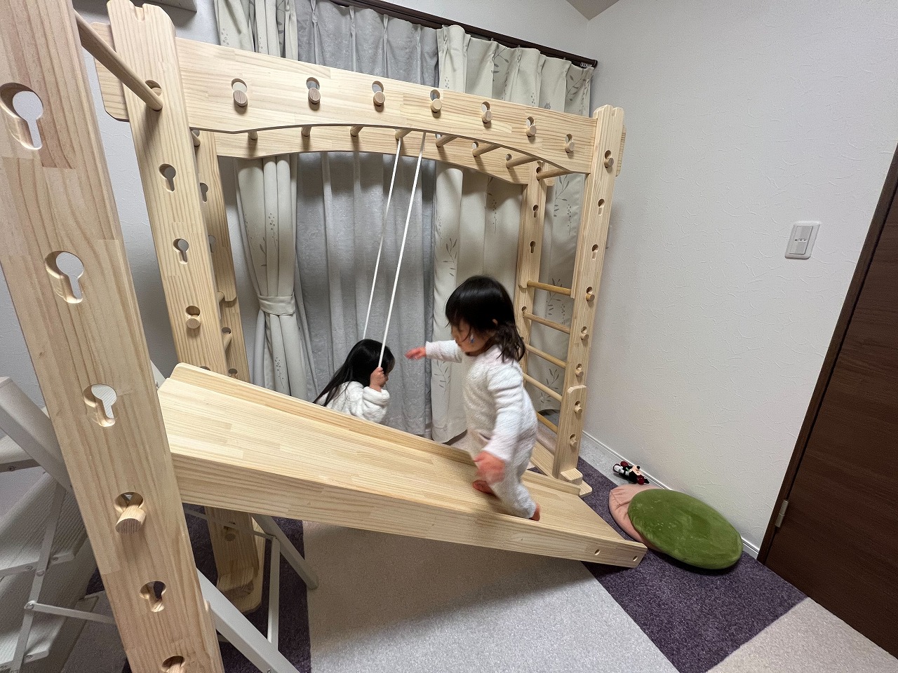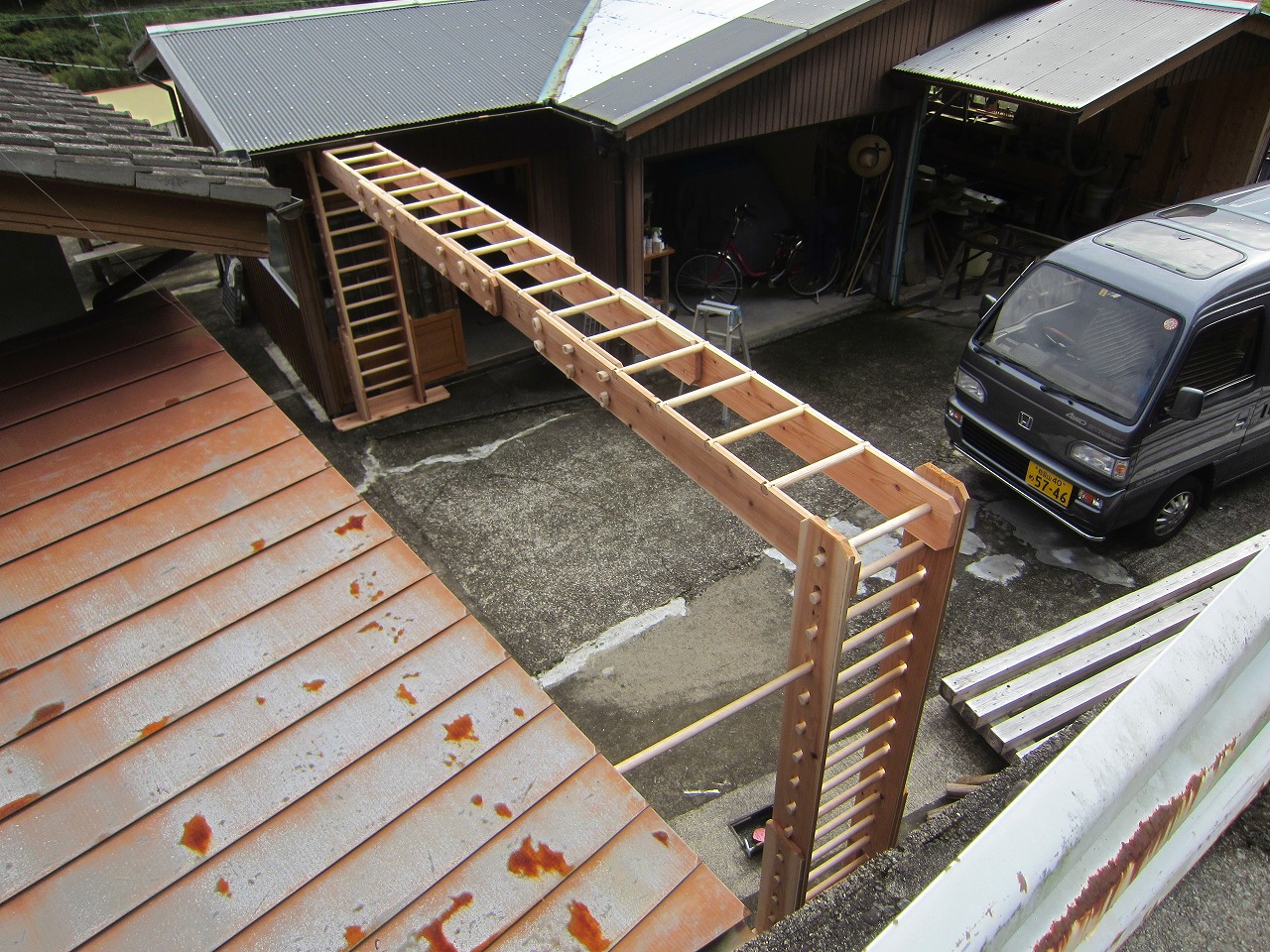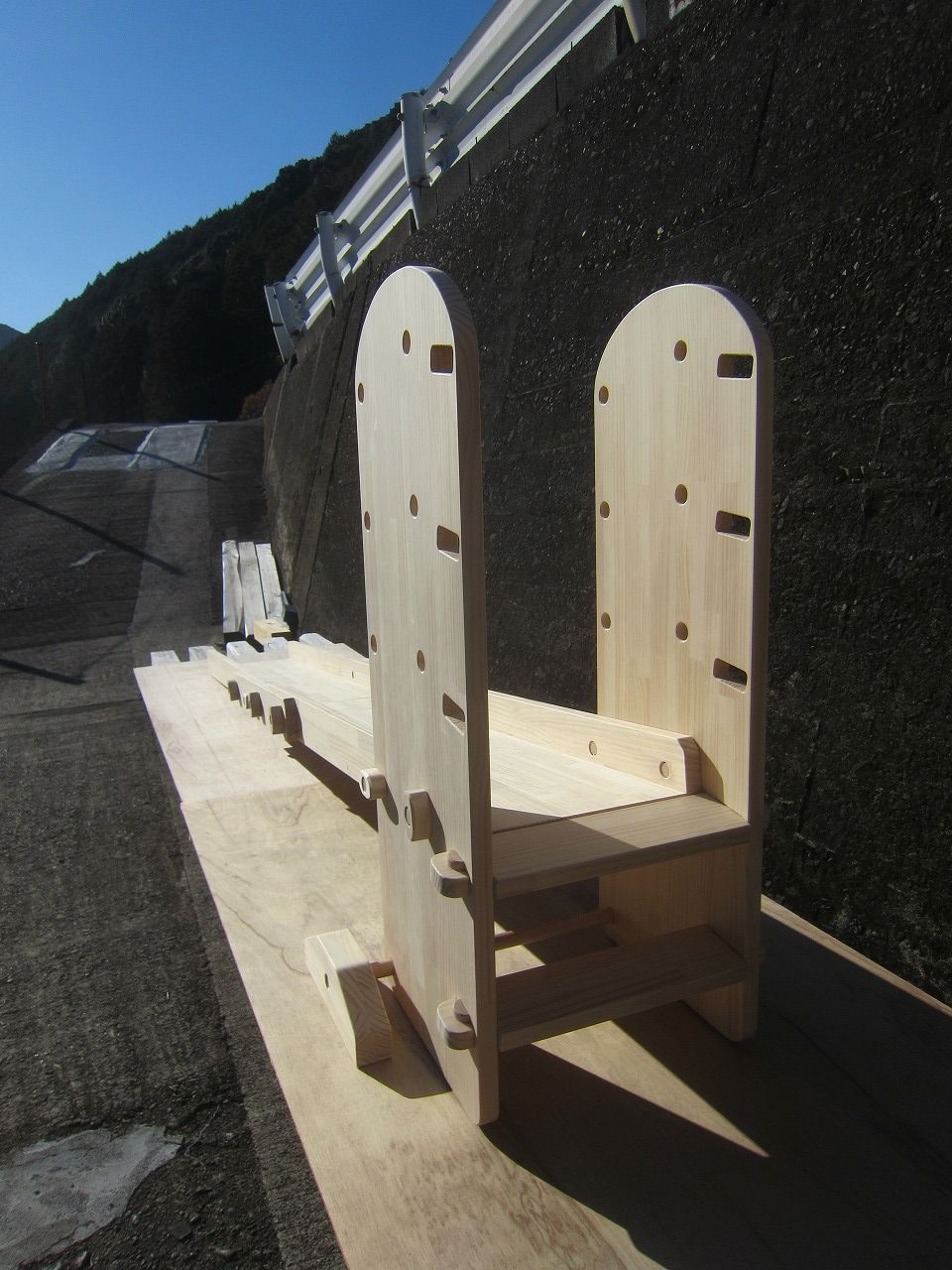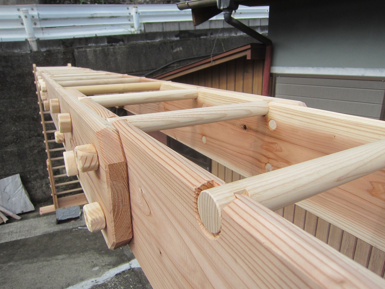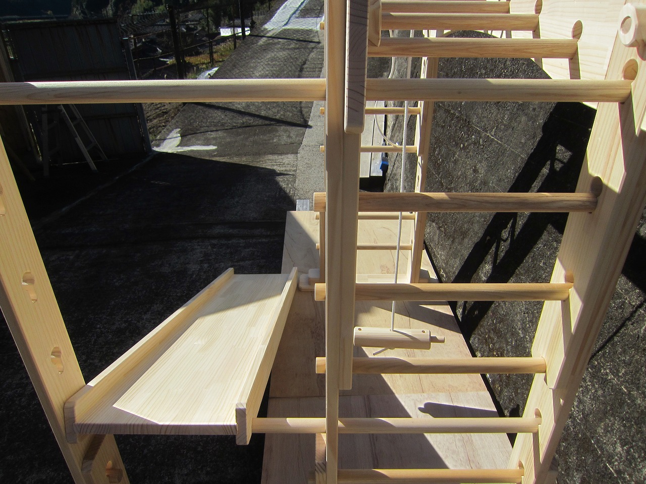 金物など一切使わずに、全長約2800mmのロングすべり台を組み立てて行きます。