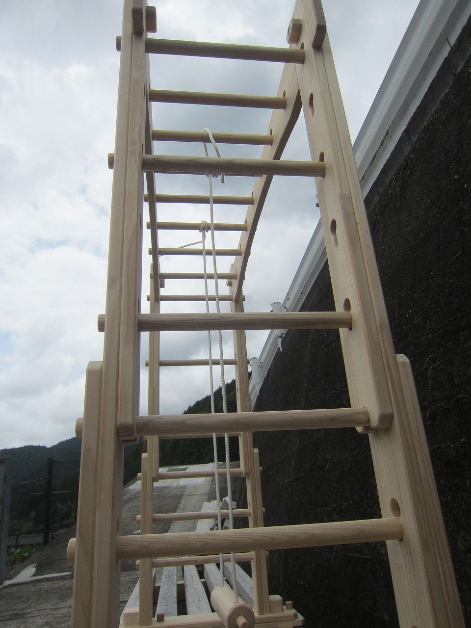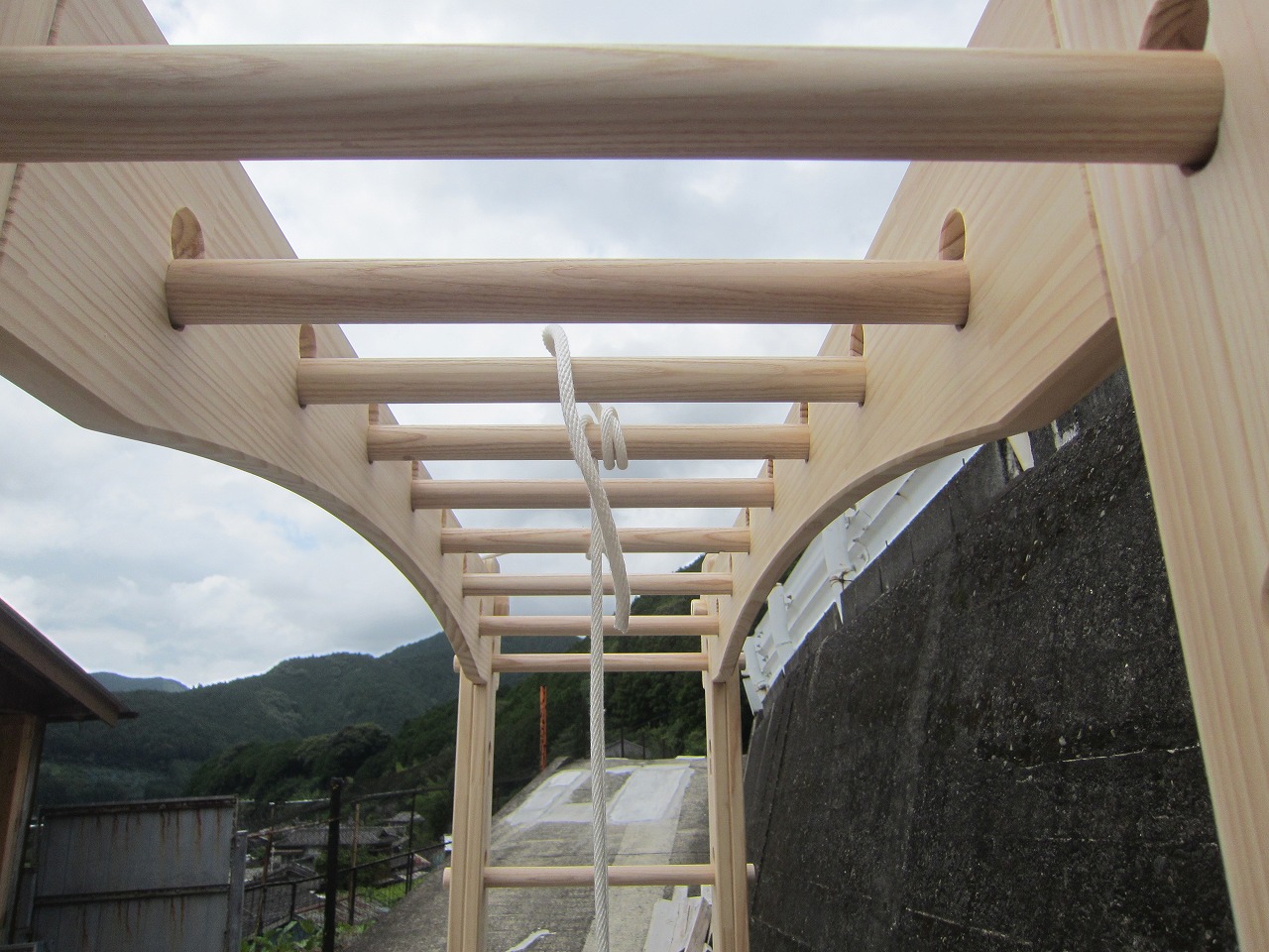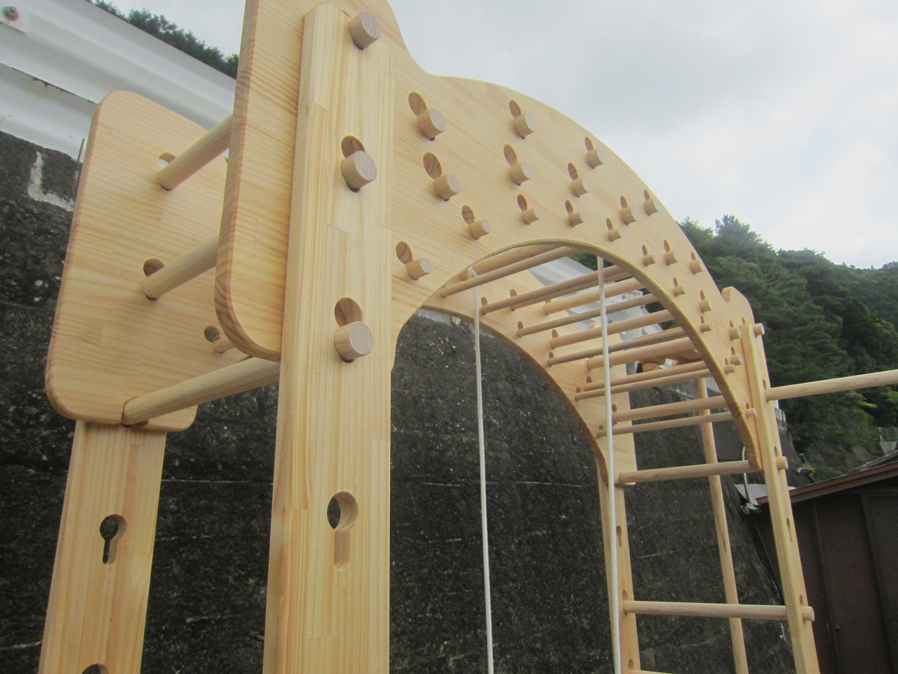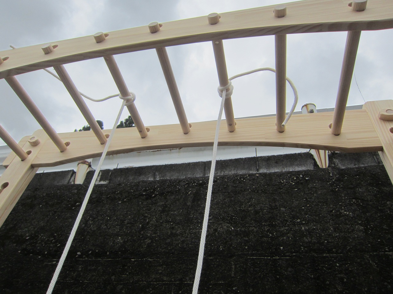 広島のH.Y様からのお便りです。ありがとうございます。今年4月にお送りしたパラレルうんていに、今回、ロープ丸太ブランコを追加購入していただきました。丸棒の組み込み確認が出来ないので少々心配でしたが、問題なく取り付けられたようで安心しました。今回もスムーズで気持ちのよいお取引をありがとうございました。またのお便りを心からお待ちしております。本田