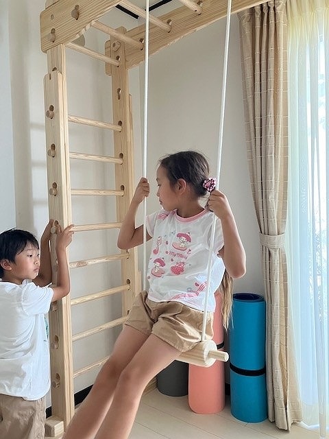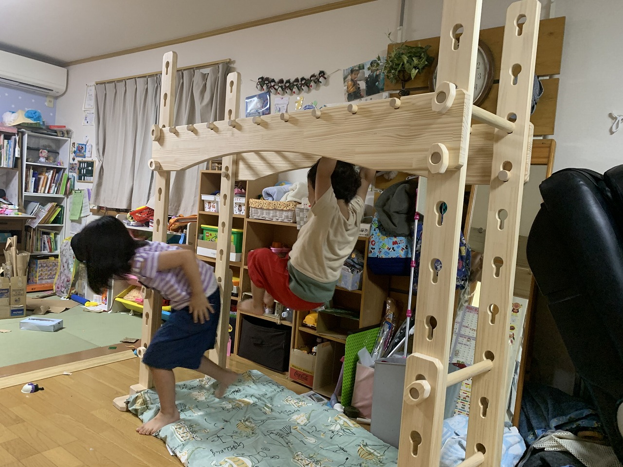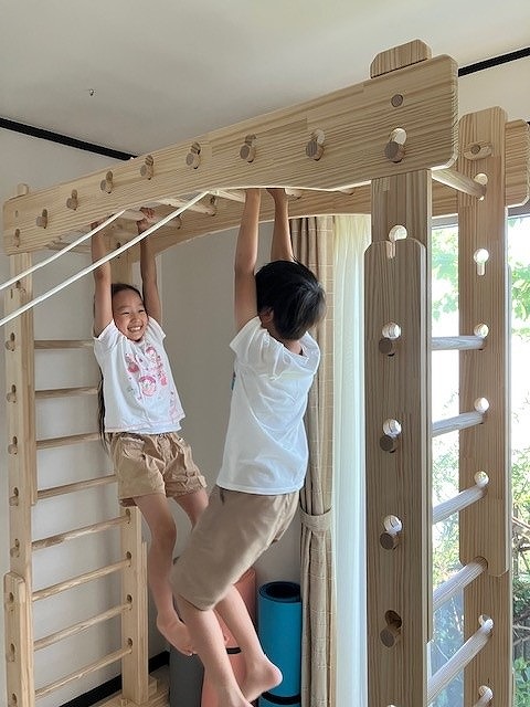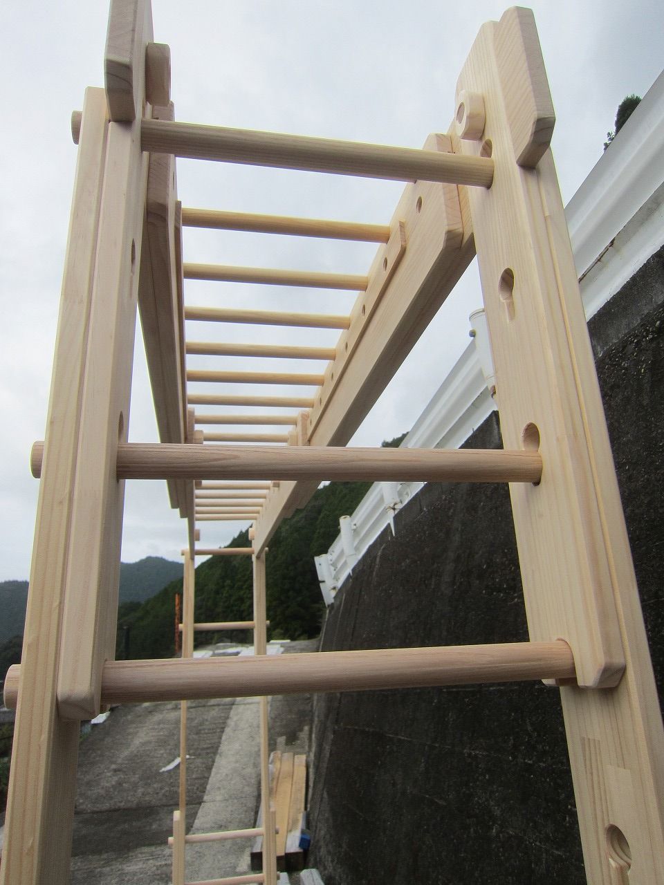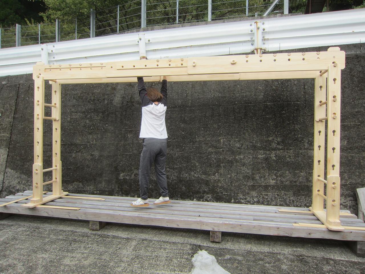 広島のH.Y様からのお便りです。ありがとうございます。今年4月にお送りしたパラレルうんていに、今回、ロープ丸太ブランコを追加購入していただきました。丸棒の組み込み確認が出来ないので少々心配でしたが、問題なく取り付けられたようで安心しました。今回もスムーズで気持ちのよいお取引をありがとうございました。またのお便りを心からお待ちしております。本田