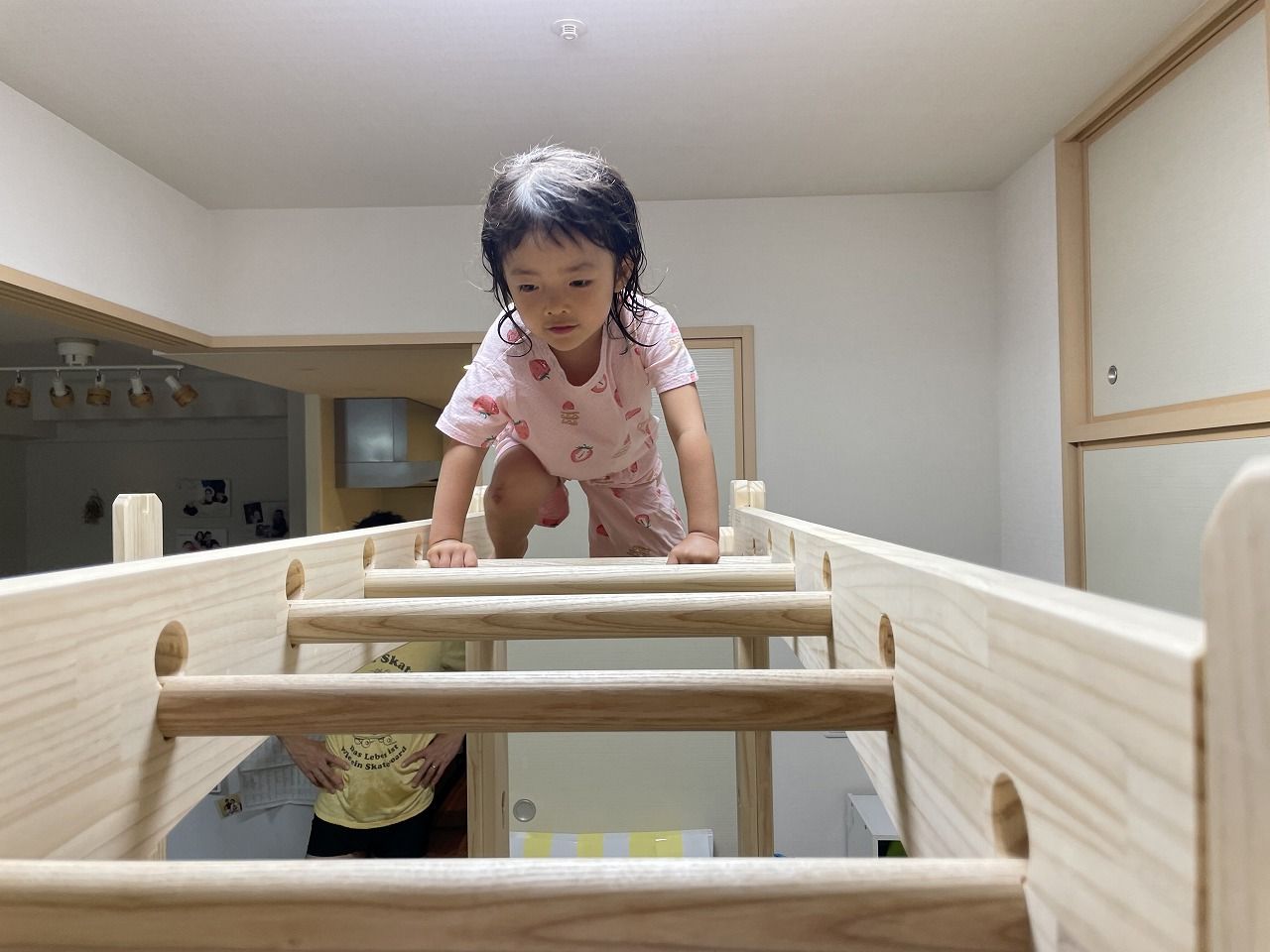 ロープラダーは色々な付け方をして現在はハンモックのような形で楽しんでいます。